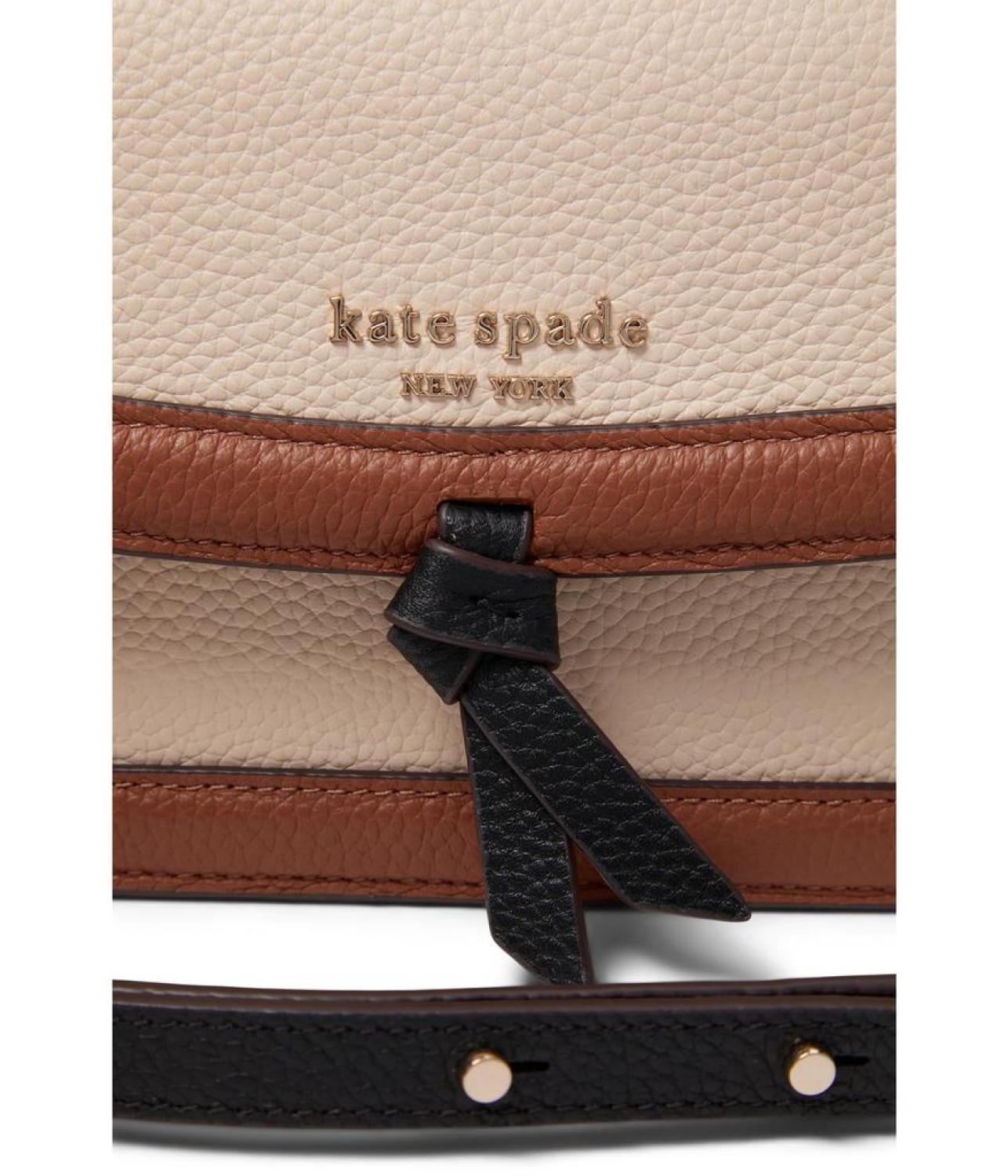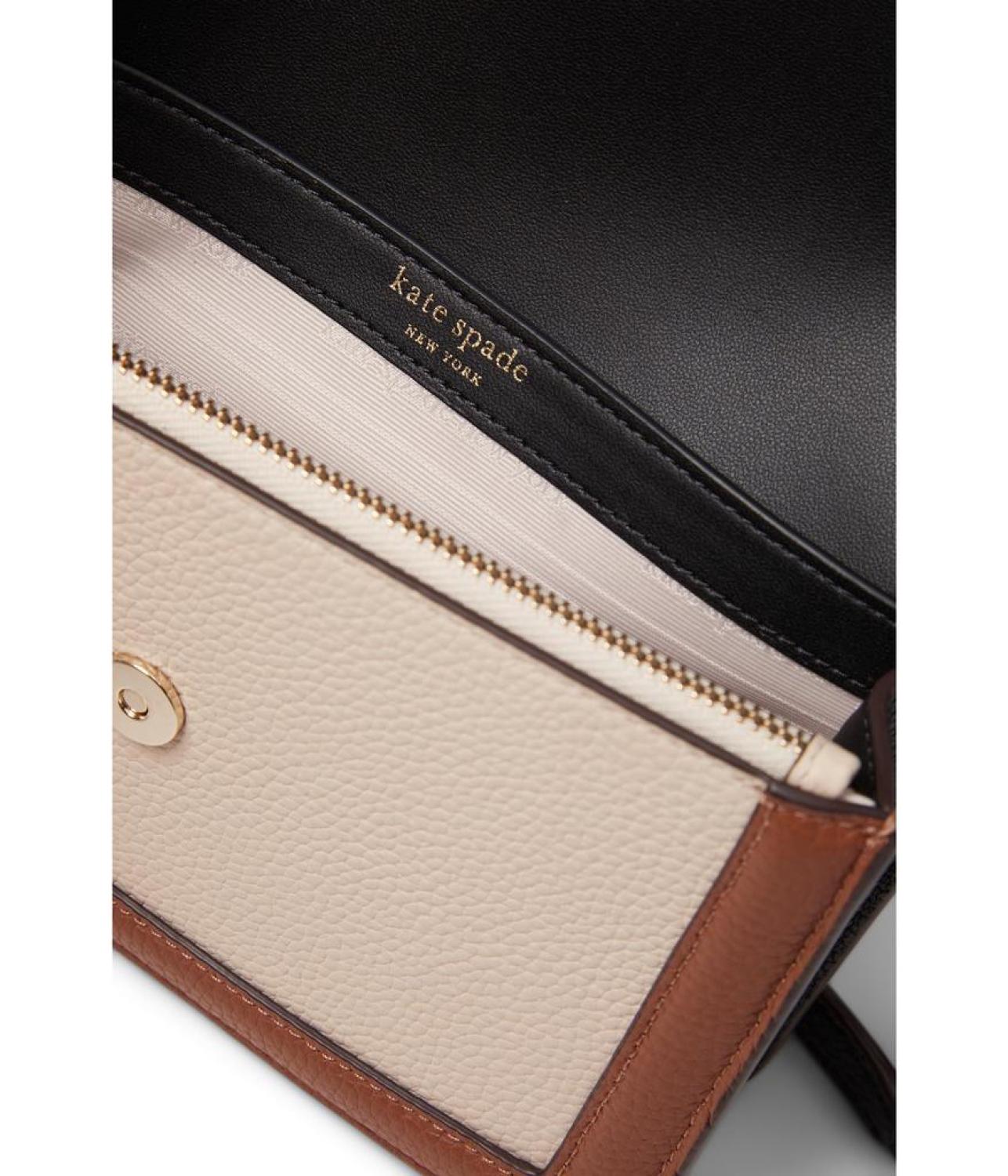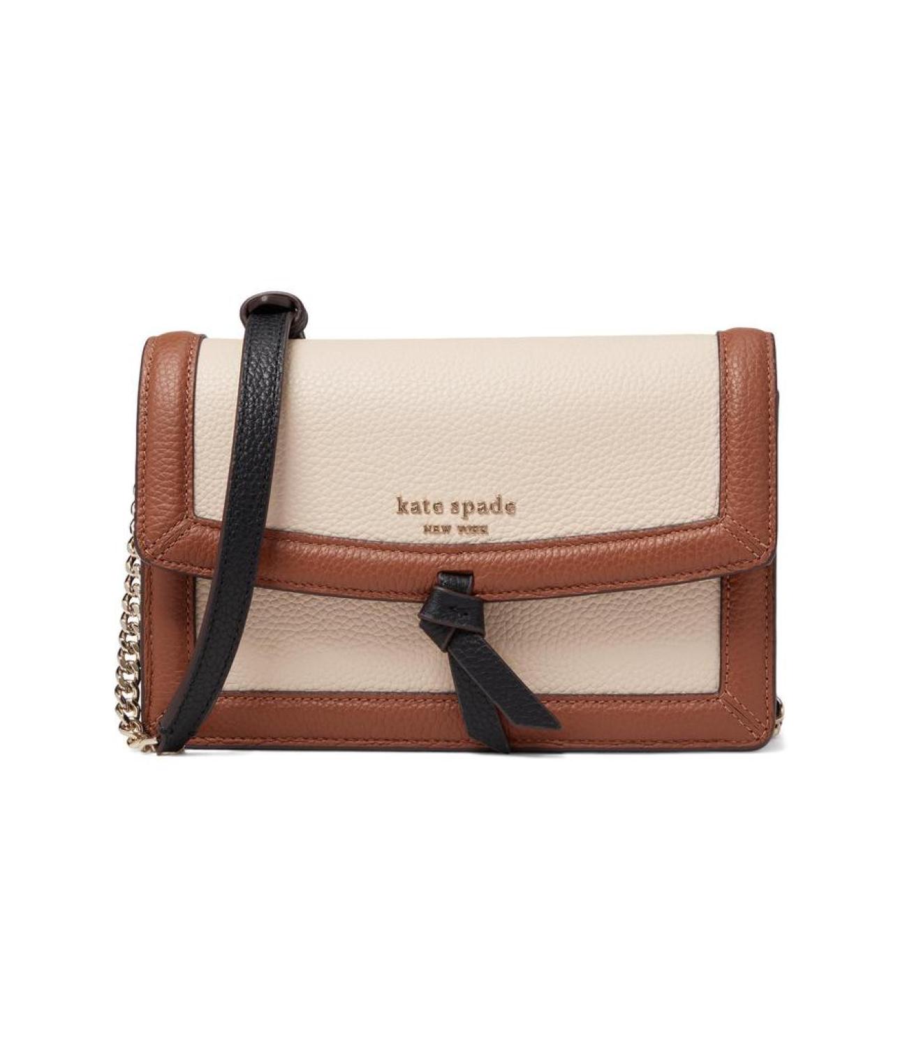 A classic silhouette designed for everyday use, the Kate Spade New York® Knott Color-Blocked Pebbled Leather Flap Crossbody will keep your look streamlined while helping you stay organized. The leather bag features a magnetic snap closure with a flap and a chain-linked crossbody strap. The interior has a zippered pocket, a slip pocket, and six card slots, and the exterior has a slip pocket on the back. Brand detailing on the front. Color-block design. Textile lining. Imported. Measurements: Bottom Width: 8 in Depth: 2 in Height: 4 1/2 in Strap Length: 50 in Strap Drop: 22 in Weight: 10.5 oz