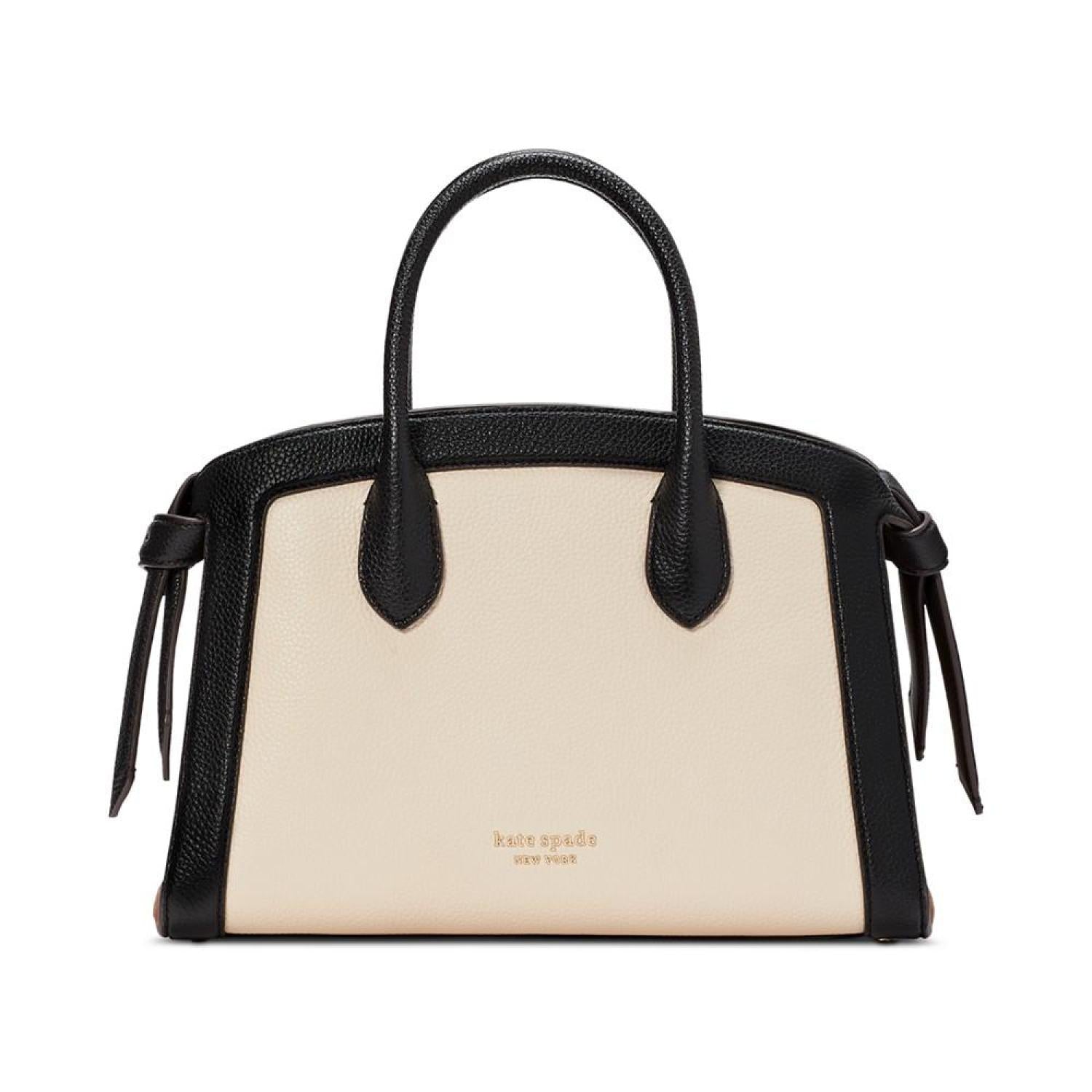 • Meet the newest member of the Knott family by kate spade new york. Designed with practicality in mind, this color-blocked satchel features a detachable crossbody strap and a zip-top closure for easy storage and, of course, the signature cinched knotted sides. It's the satchel that ties it all together.