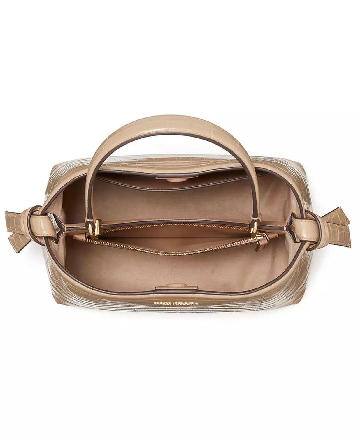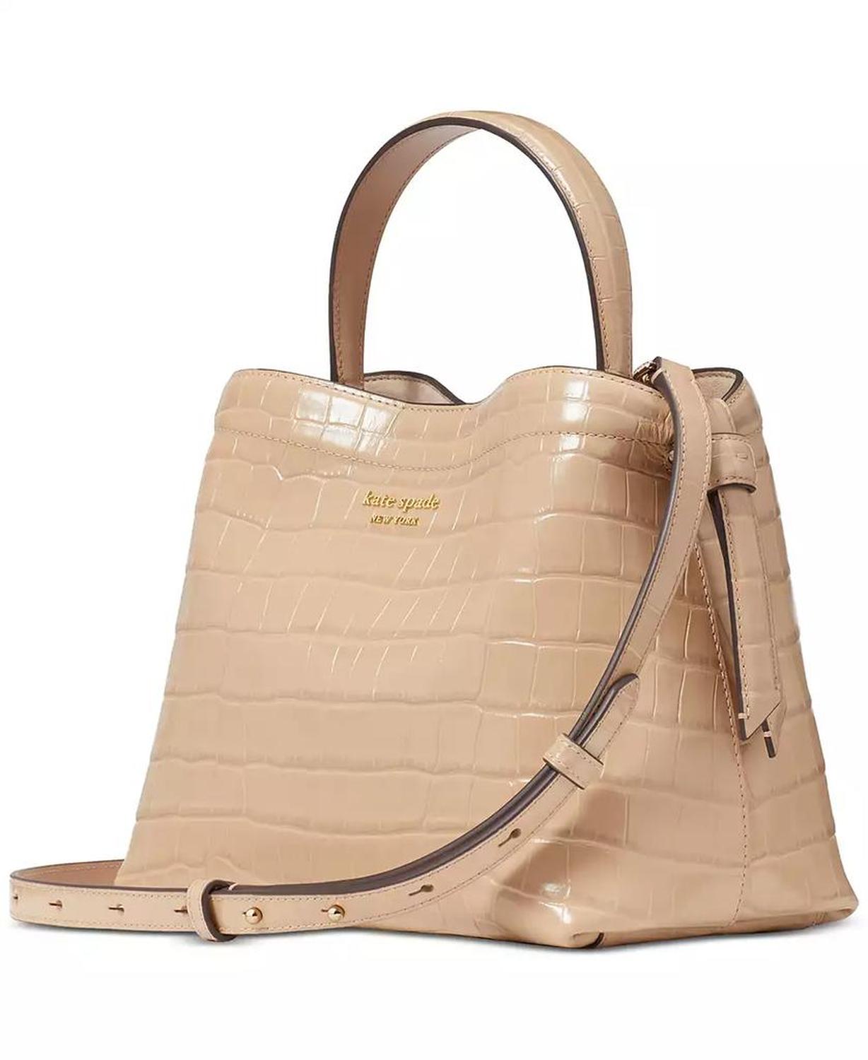 • Designed with practicality in mind, this croc-embossed satchel by kate spade new york features a removable crossbody strap and a zip-top closure for easy storage.