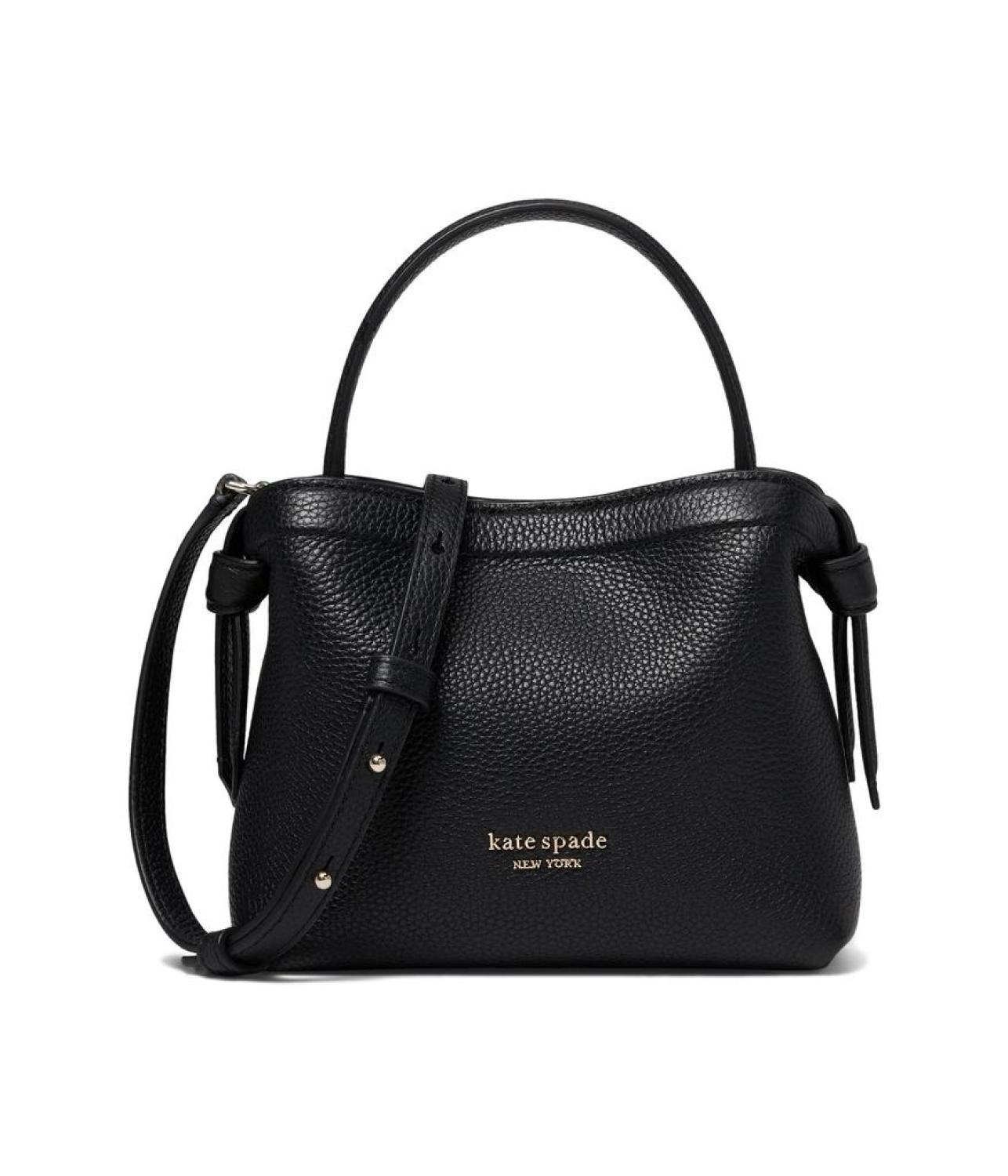 Amp up your everyday look by accessorizing with the Kate Spade New York® Knott Pebbled Leather Mini Crossbody Tote. The stylish tote bag has a should-carry adjustable and detachable strap for crossbody carry and a hand-carry handle. It comes with a dust-bag that makes it a suitable pick for your everyday routine. The bag features magnetic closure with one internal open compartment and one credit card slot.