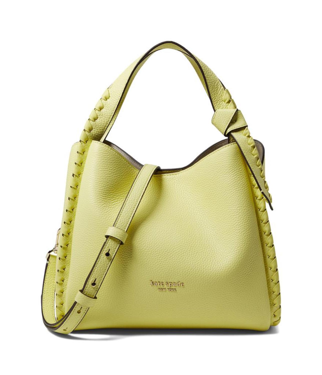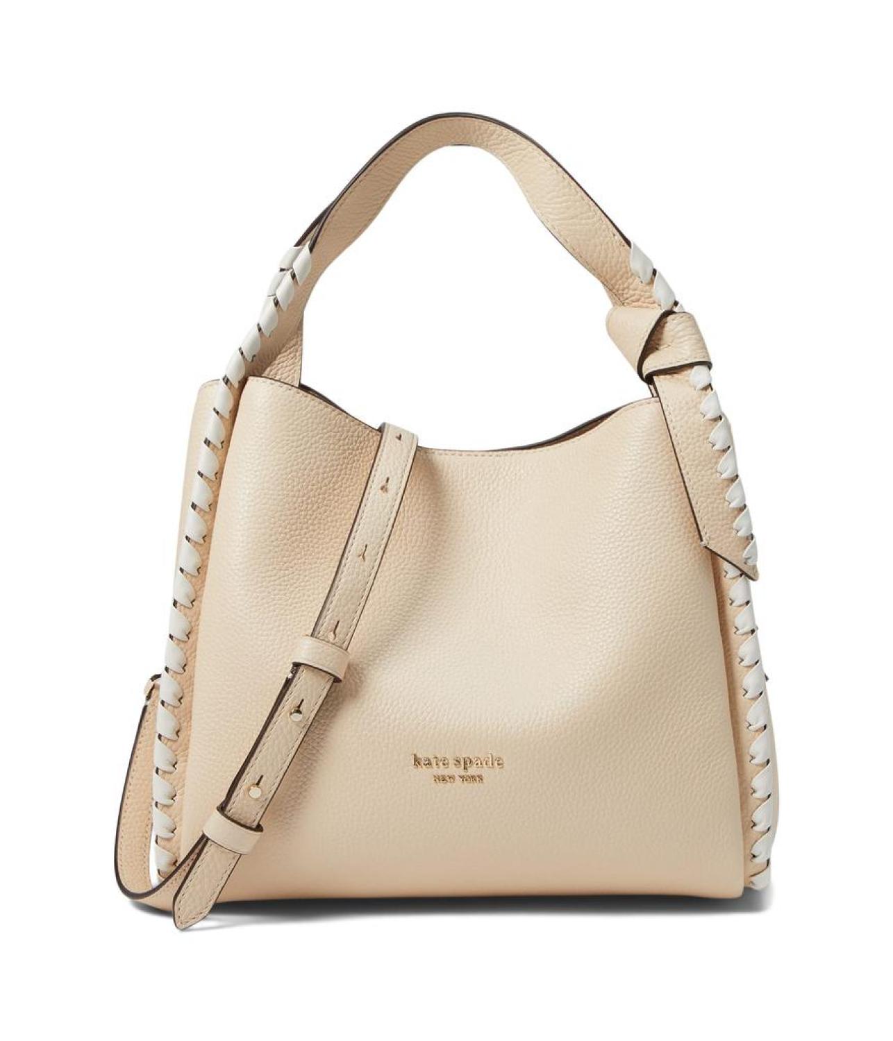 Add value to your aesthetic look carrying the Kate Spade New York® Knott Whipstitched Pebbled Leather Medium Crossbody Tote. Leather upper. Dual top handles. One detachable and adjustable crossbody strap. Magnetic snap closure. One zippered interior pocket. Four interior slip pockets. Iconic detailing on the edges on the front and the back. Brand detailing on the front. Dust bag included. Leather lining. Imported. Please note, the hardware color and interior lining may differ from the color shown in the photo. Measurements: Bottom Width: 10 in Depth: 6 in Height: 9 in Strap Length: 48 in Strap Drop: 22 in Handle Length: 12 in Handle Drop: 5 in Weight: 1 lb 8.25 oz