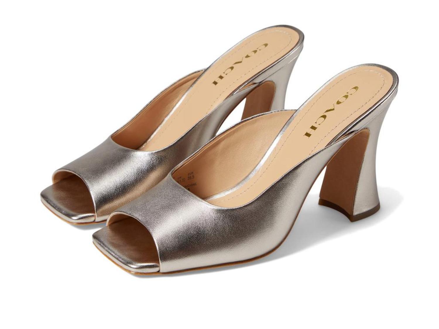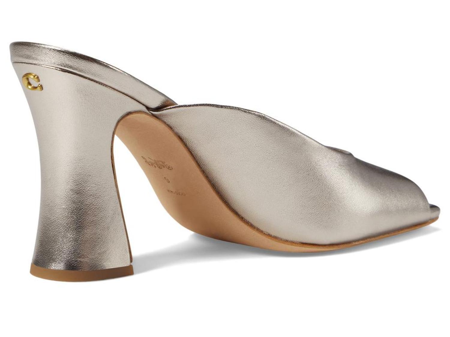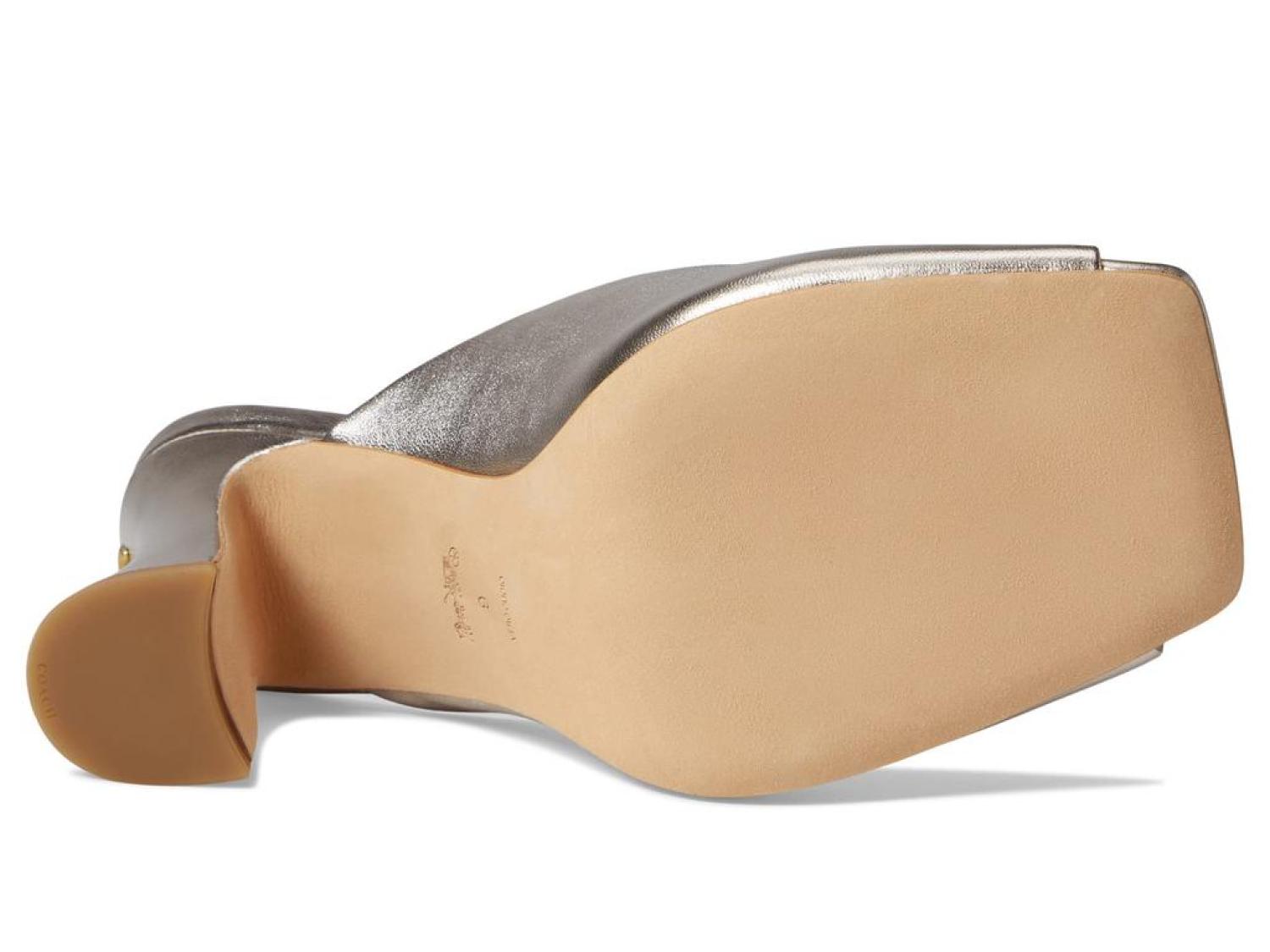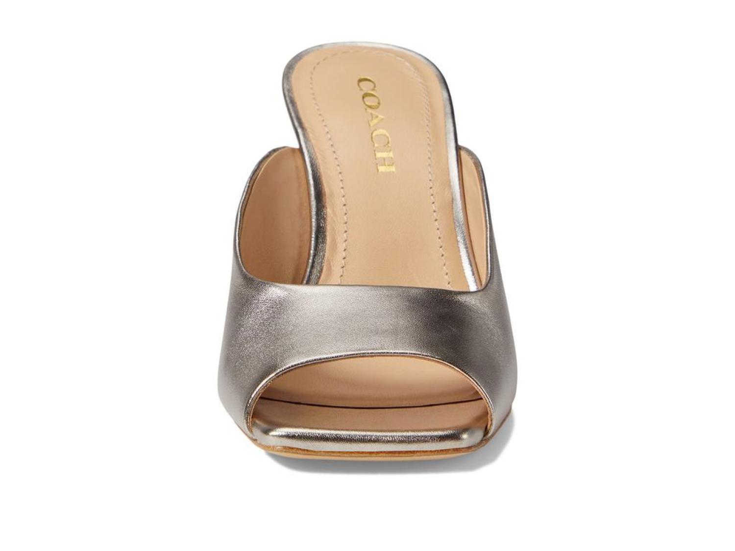 Shine your feet in the chic and elegantly sculpted COACH® Laurence Metallic Leather Sandal.