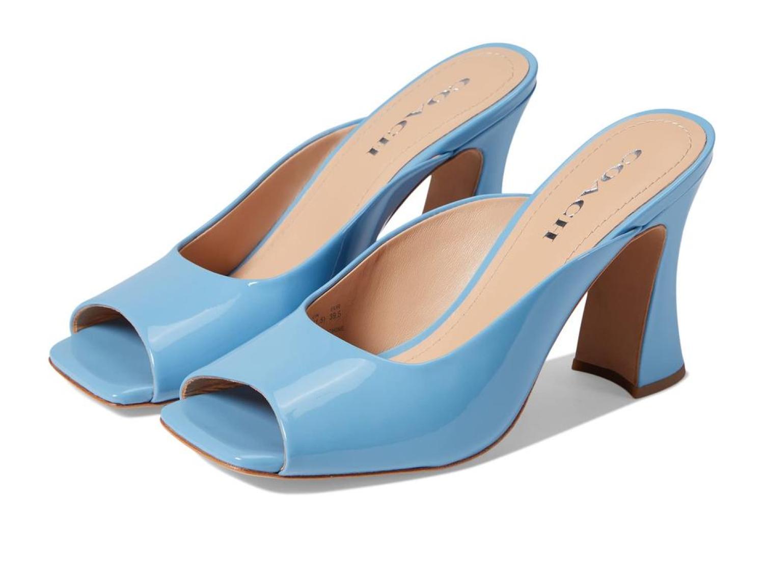 Please Note: COACH™ items cannot be shipped to military addresses (APO or FPO) and addresses in Hawaii, the Virgin Islands, Guam or any other locations outside of the continental US. The COACH® Laurence Patent Leather Sandals is designed to fit in your feet with maximum ease and offer a classy edge style. Leather upper. Leather lining and cushioned insole. Easy slip-on style. Block heel. Open square toe. Leather outsole. Imported. Product measurements were taken using size 9, width B - Medium. Please note that measurements may vary by size. Measurements: Heel Height: 4 in Weight: 7.25 oz-