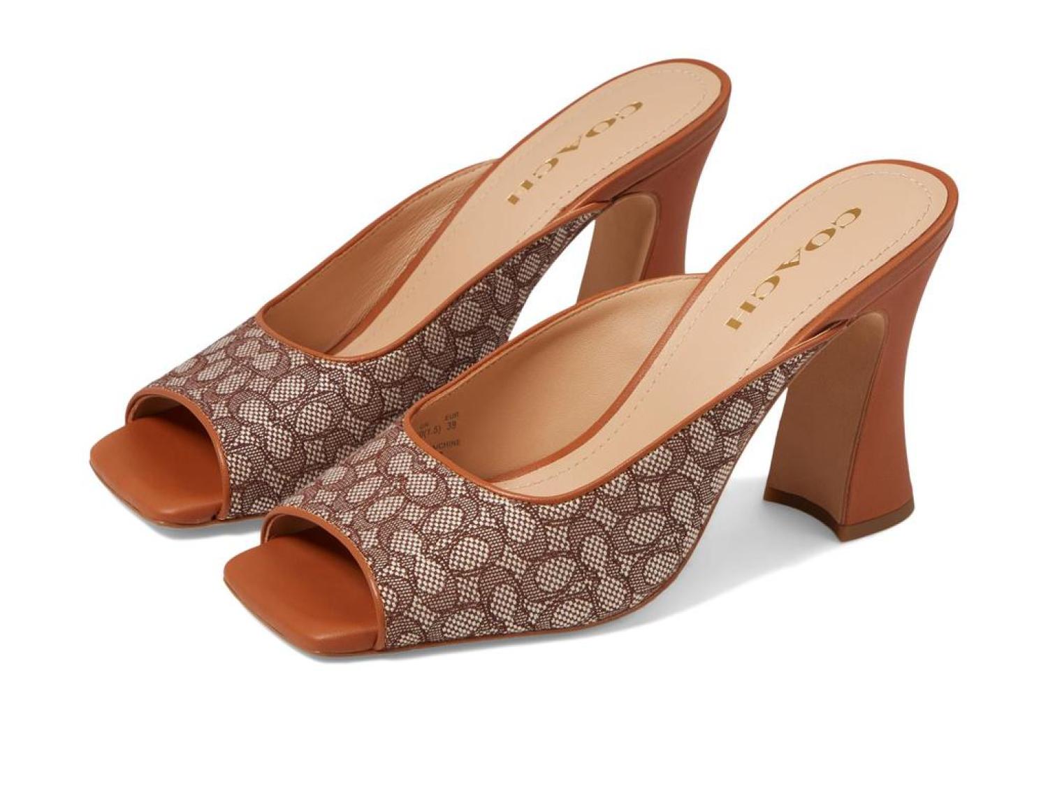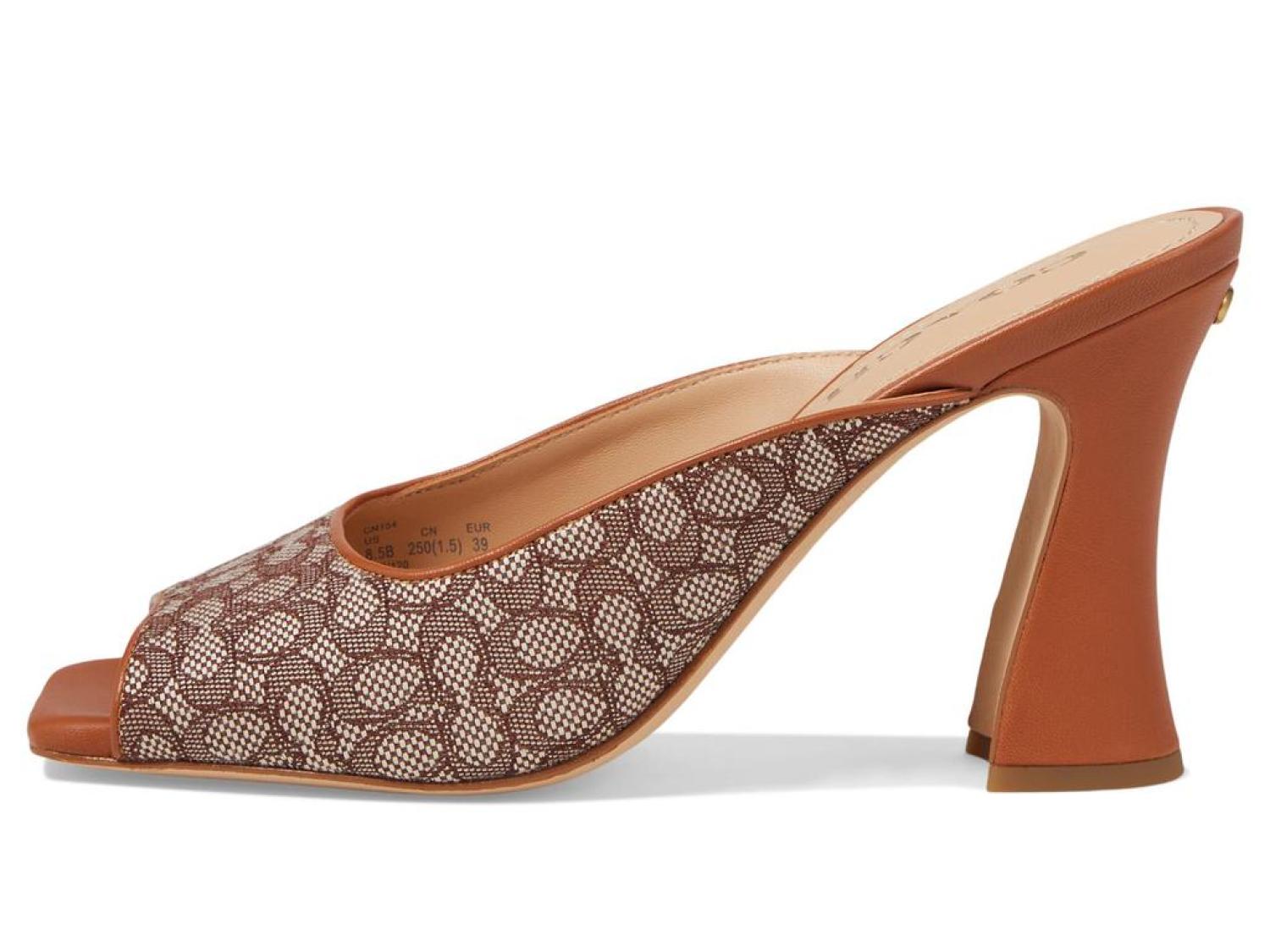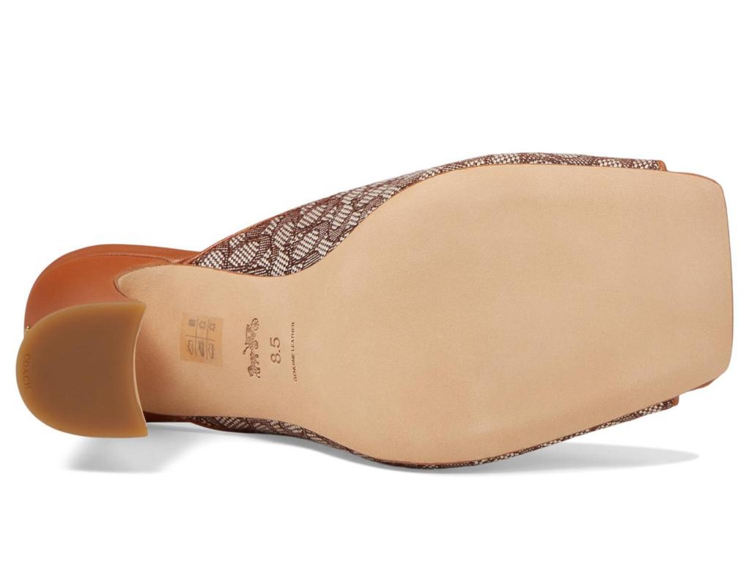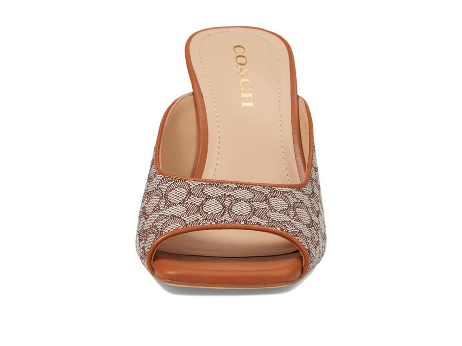 Elevate your look with the COACH® Laurence Sandal, a perfect blend of modern design and heritage style. These sandals feature a sculpted heel adorned with a polished Signature accent, adding a touch of heritage charm to your ensemble. The open square toe silhouette provides a contemporary and airy feel, allowing your feet to breathe comfortably while making a fashion statement.