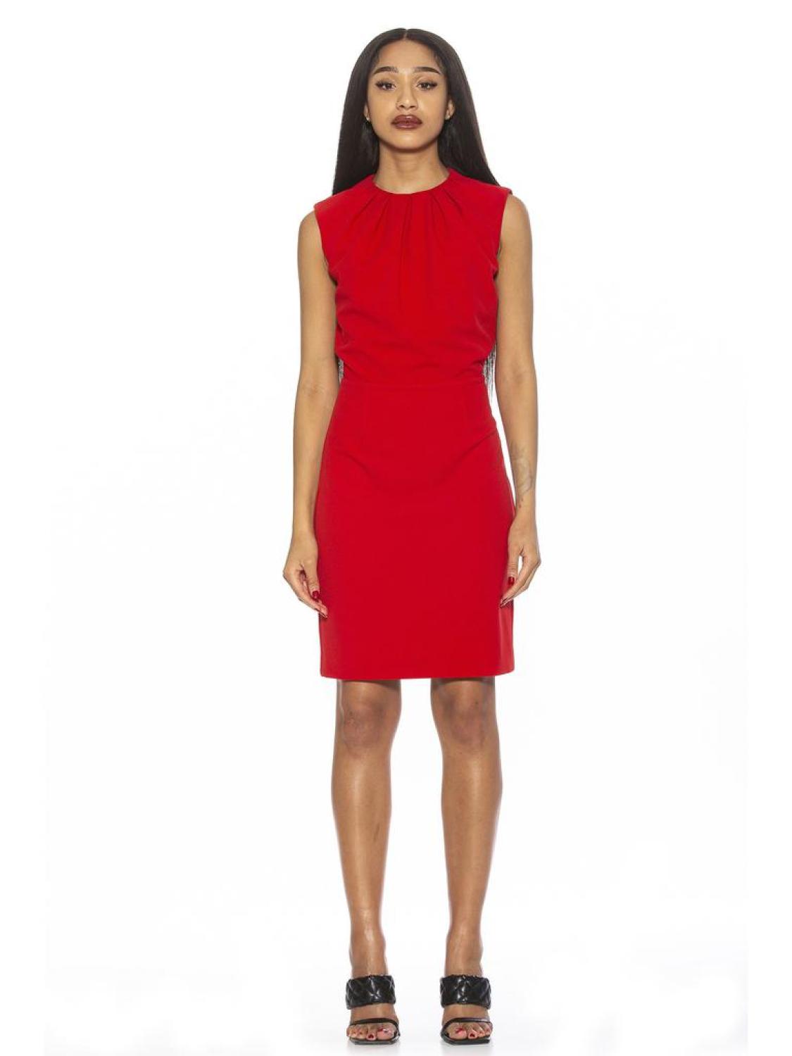 Workkk Wear. The Layla is a sleeveless, mini dress with a ruched neckline, and an?�invisable ?�zipper.PRODUCT FEATURES Crewneck?� Sleeveless?� Form Fitting?� Cocktail Dress 95% Polyester, 5% Spandex Lining - 100% Polyester Machine Wash Imported Style D3995