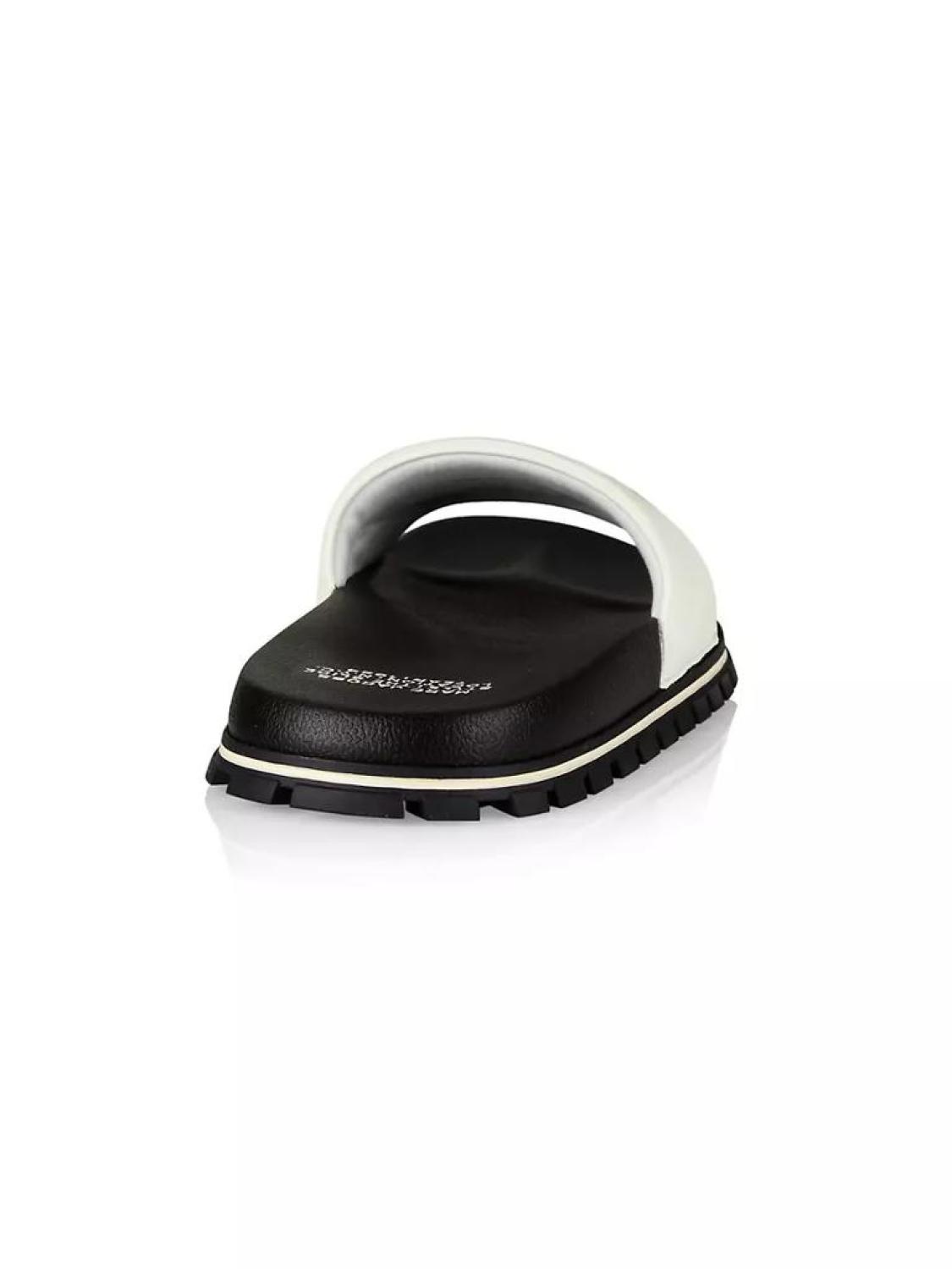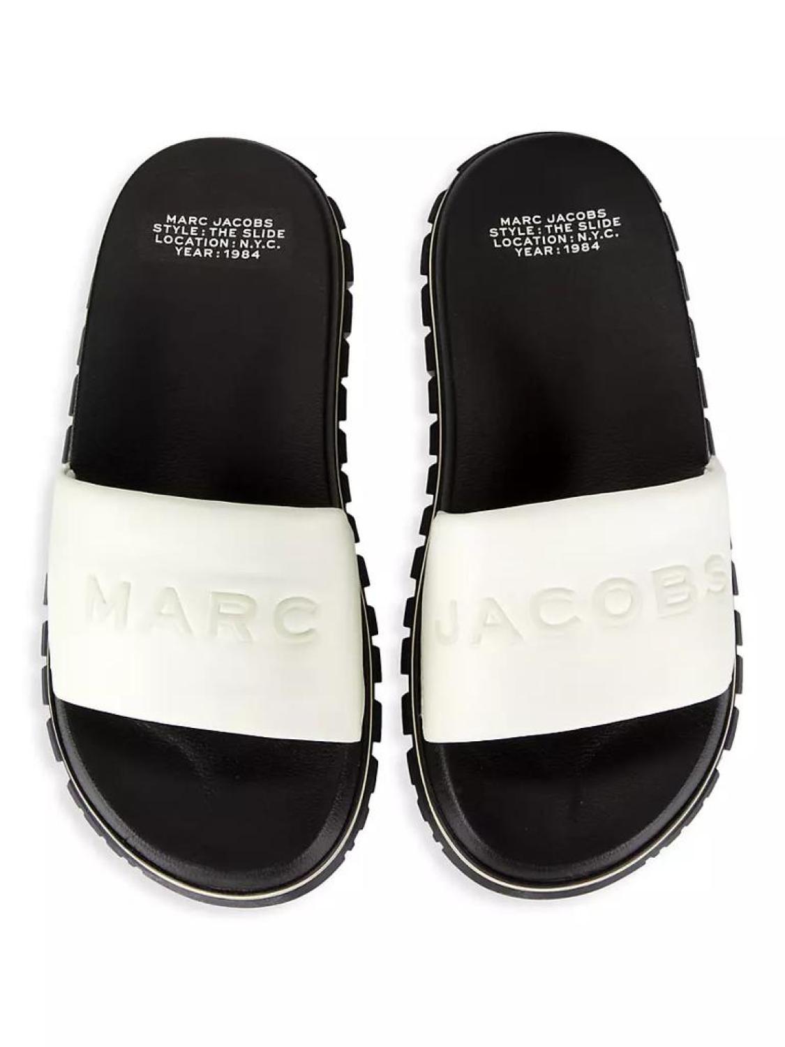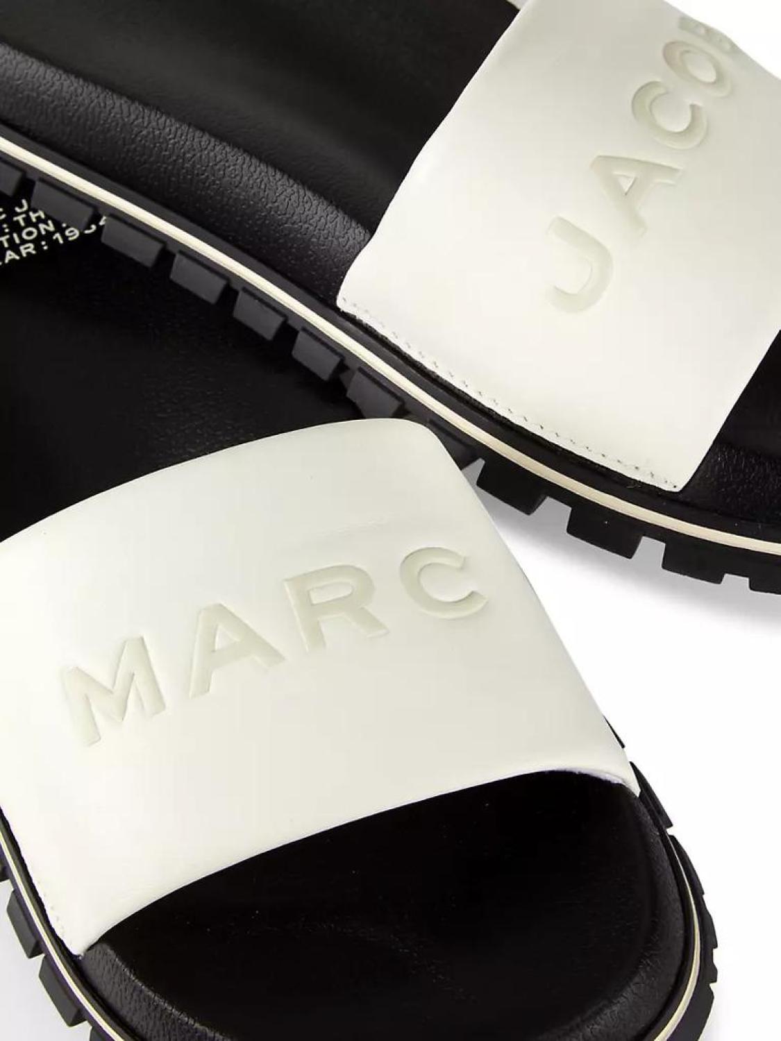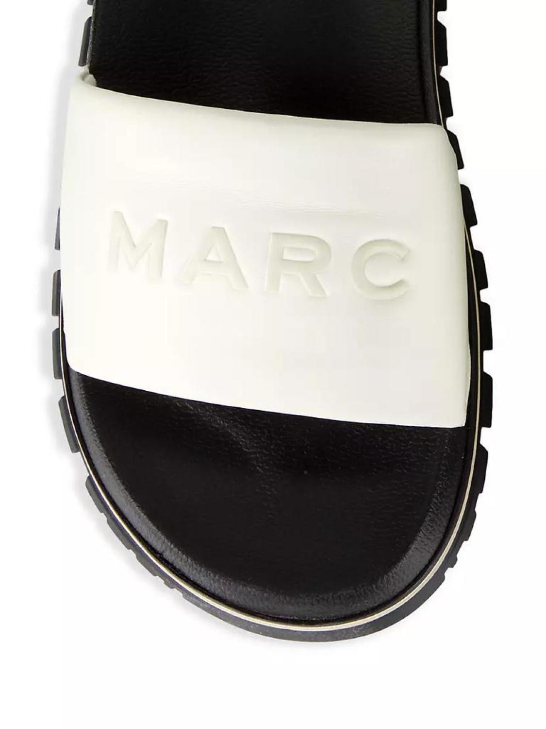 Marc Jacobs' flatform slides feature a logo-embossed leather upper and a chunky lugged sole. Leather upper Open toe Slips on EVA insole Rubber sole Imported SIZE Platform height, 1.25" (30mm) Marc Jacobs' flatform slides feature a logo-embossed leather upper and a chunky lugged sole.Leather upperOpen toeSlips onEVA insoleRubber soleImportedSIZEPlatform height, 1.25" (30mm)