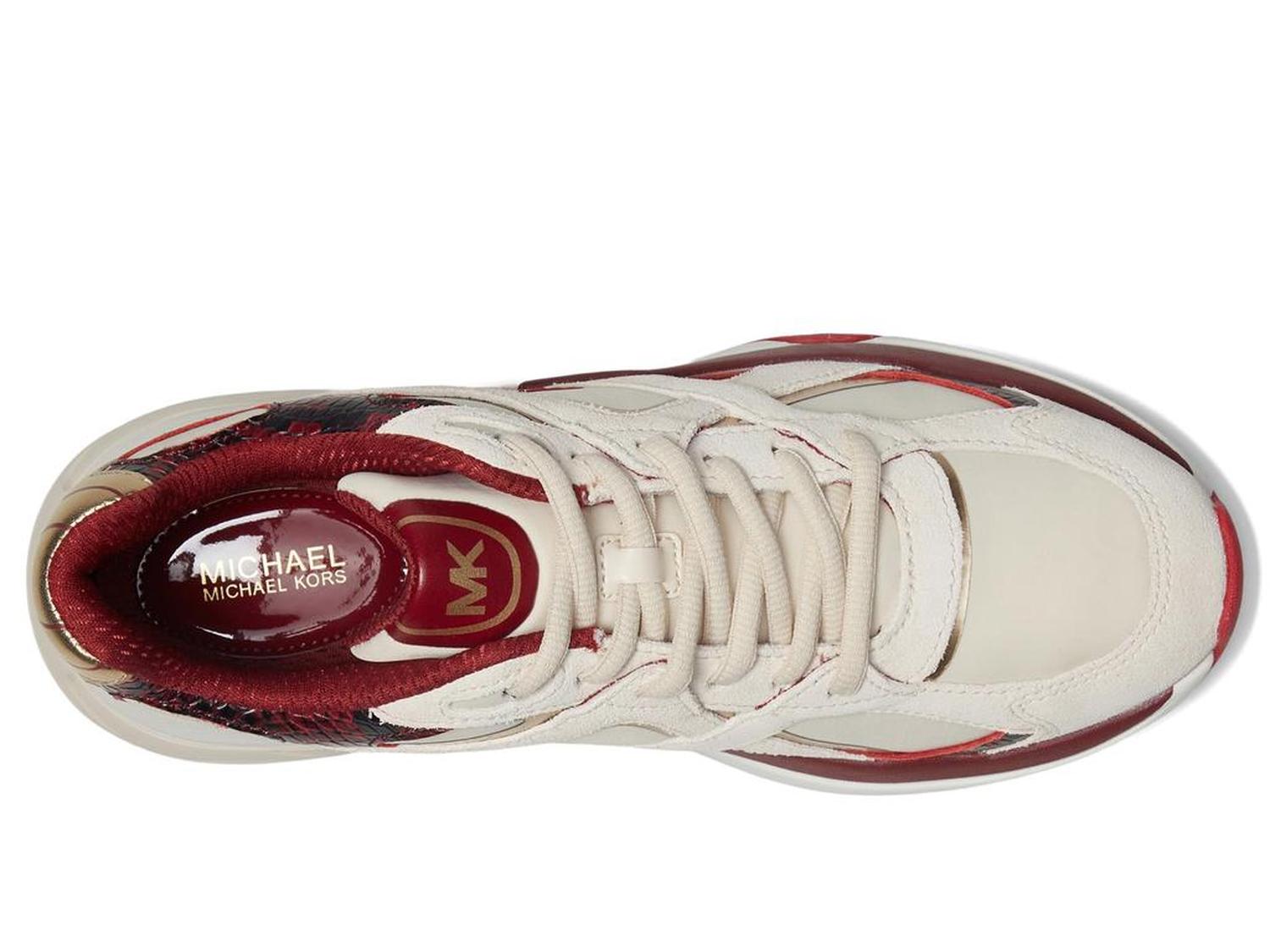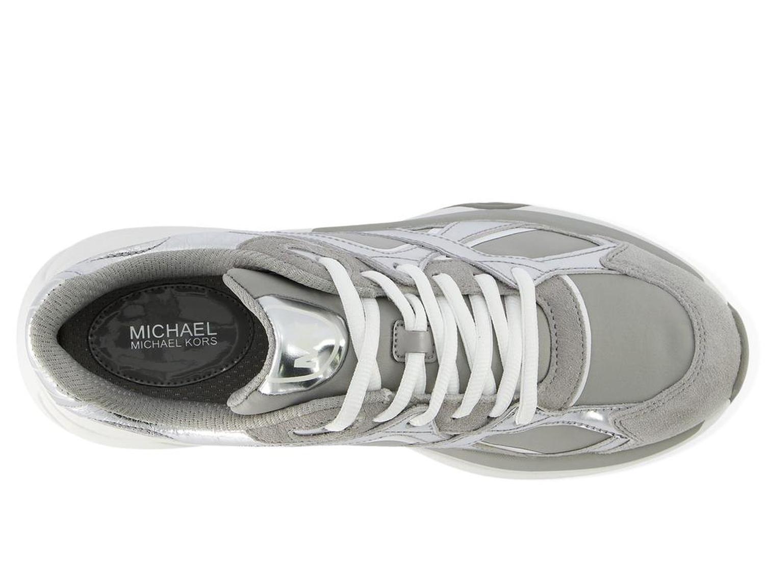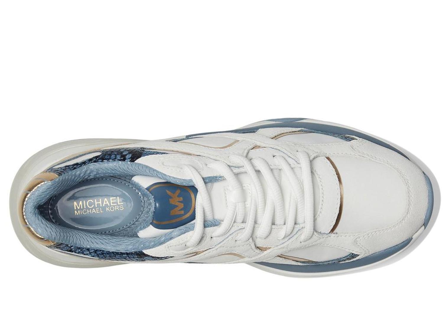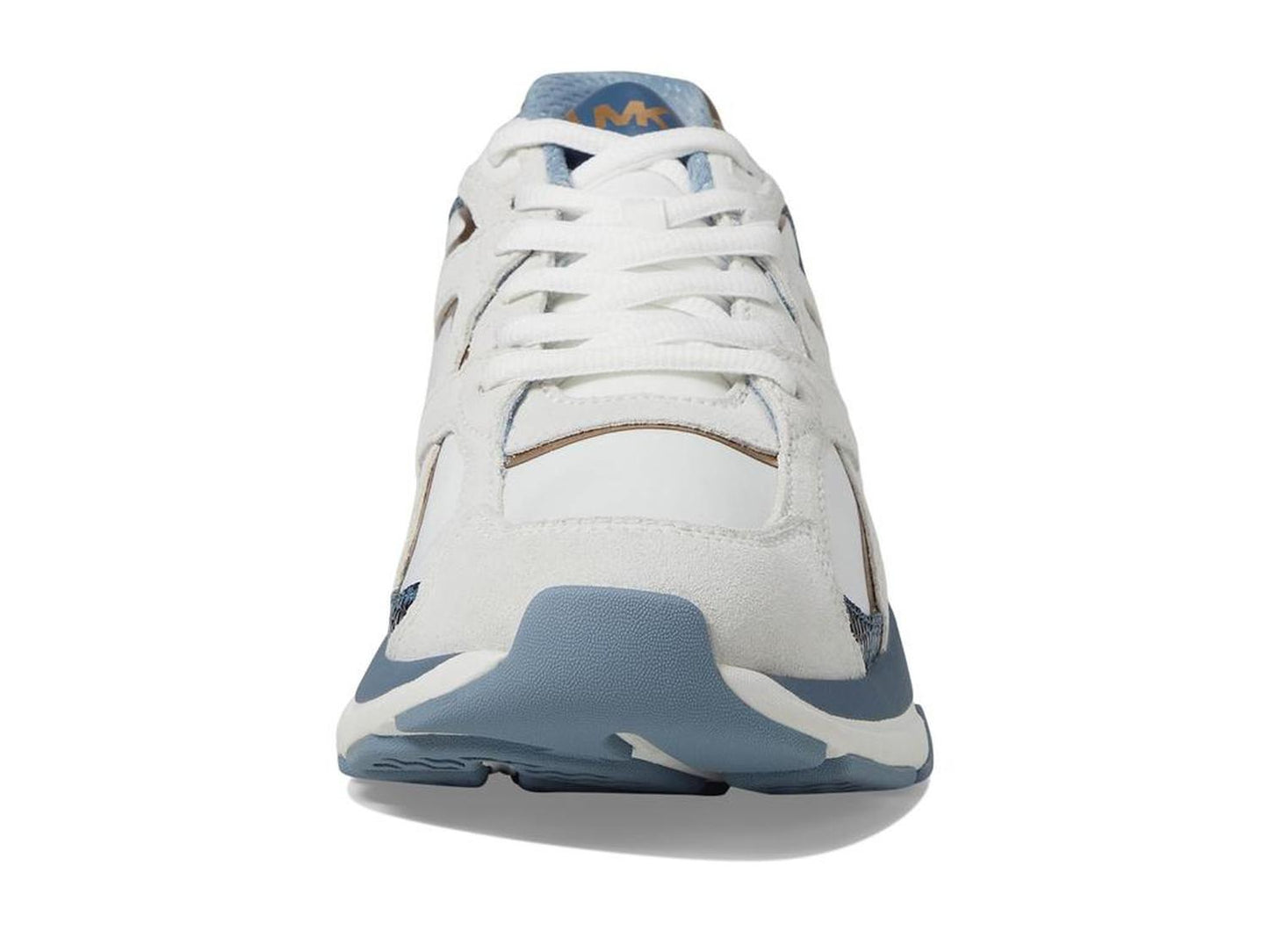 Take a quick walk into retro-chic vibes sporting the MICHAEL Michael Kors® Leo Trainer! Elevate your street style with this fashion-forward active trainer, blending retro influences with modern sophistication. Crafted from a sleek leather upper and lined with soft polyester, this sneaker ensures comfort and durability with every step. The EVA insole provides plush cushioning, while the durable rubber outsole offers superior traction. Lace up for a perfect fit and let the intricately designed upper turn heads wherever you go. Imported. Product measurements were taken using size 8.5, width M. Please note that measurements may vary by size. Measurements: Weight: 13 oz-