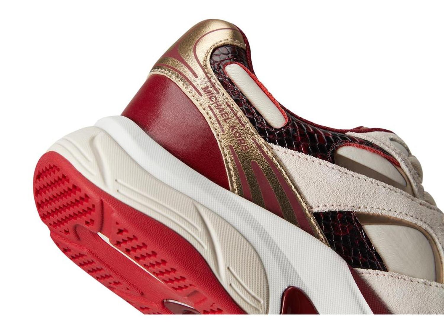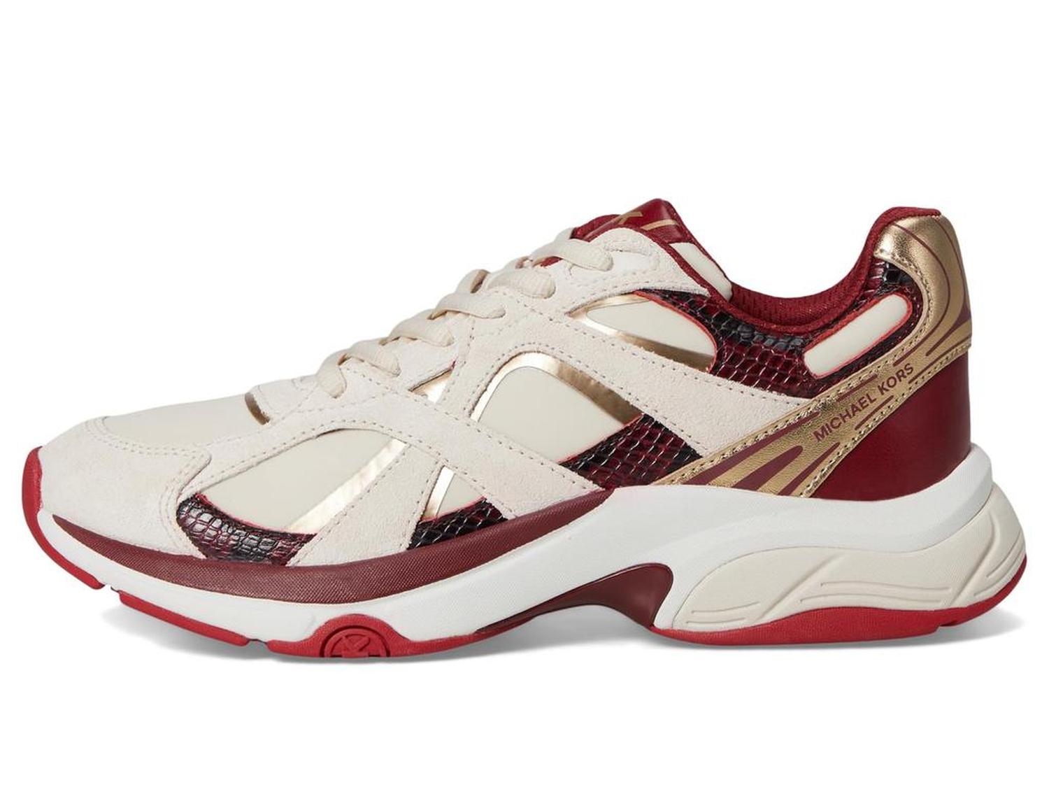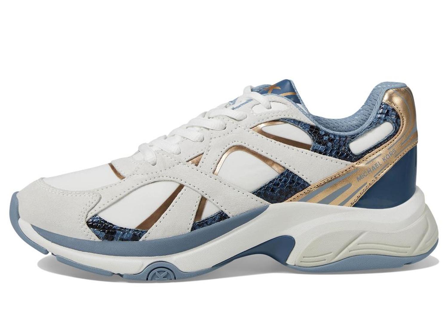 Take a quick walk into retro-chic vibes sporting the MICHAEL Michael Kors® Leo Trainer! Elevate your street style with this fashion-forward active trainer, blending retro influences with modern sophistication. Crafted from a sleek leather upper and lined with soft polyester, this sneaker ensures comfort and durability with every step. The EVA insole provides plush cushioning, while the durable rubber outsole offers superior traction. Lace up for a perfect fit and let the intricately designed upper turn heads wherever you go.
