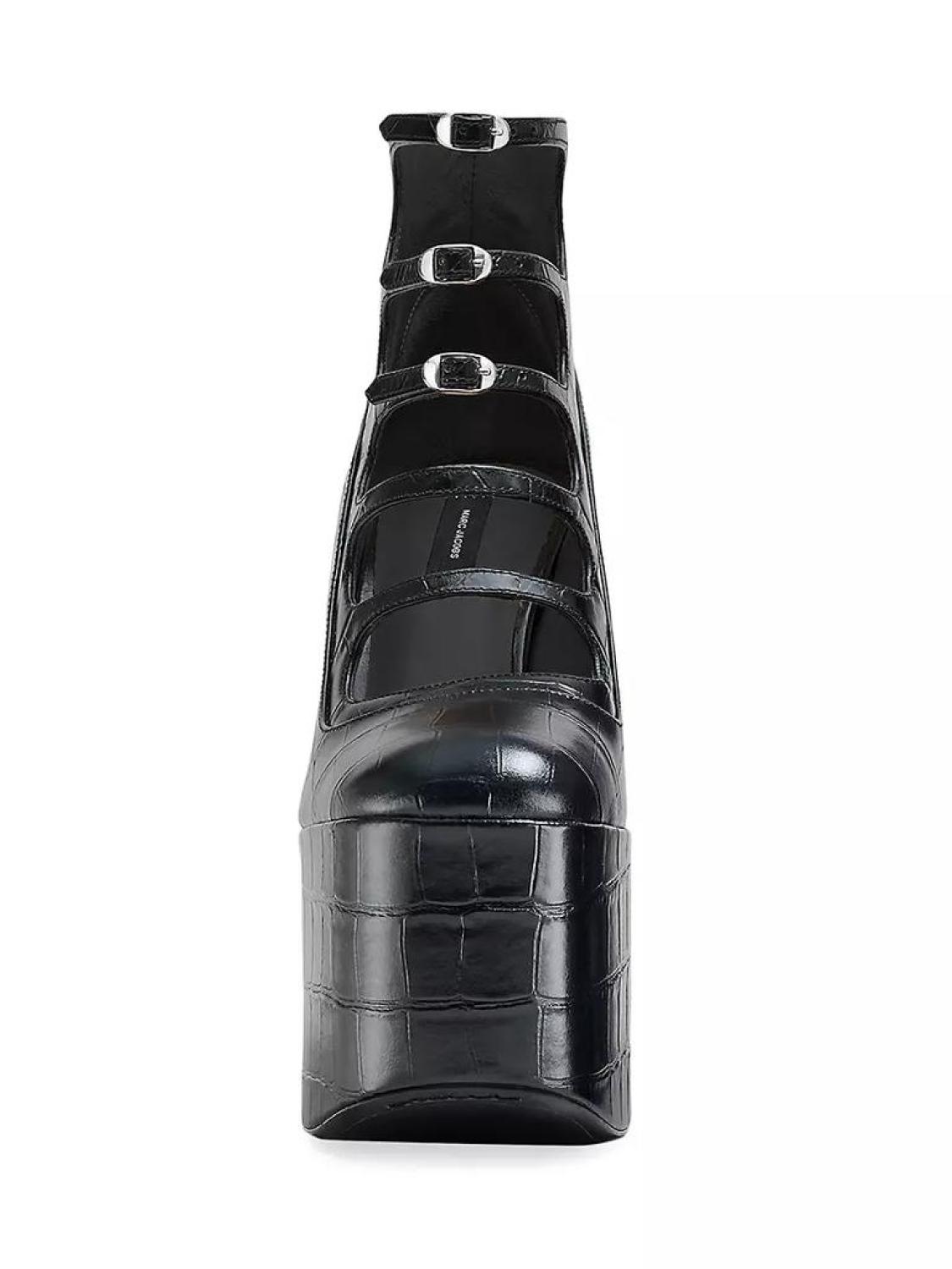 Set on a chunky block heel, Marc Jacobs' Lili pumps are crafted of crocodile-embossed leather. This platform style is styled with five straps and a square toe. Square toe Three adjustable buckles Leather upper Leather sole Imported SIZE Block heel: about 6.25" (160mm) Set on a chunky block heel, Marc Jacobs' Lili pumps are crafted of crocodile-embossed leather. This platform style is styled with five straps and a square toe.Square toeThree adjustable bucklesLeather upperLeather soleImportedSIZEBlock heel: about 6.25" (160mm)