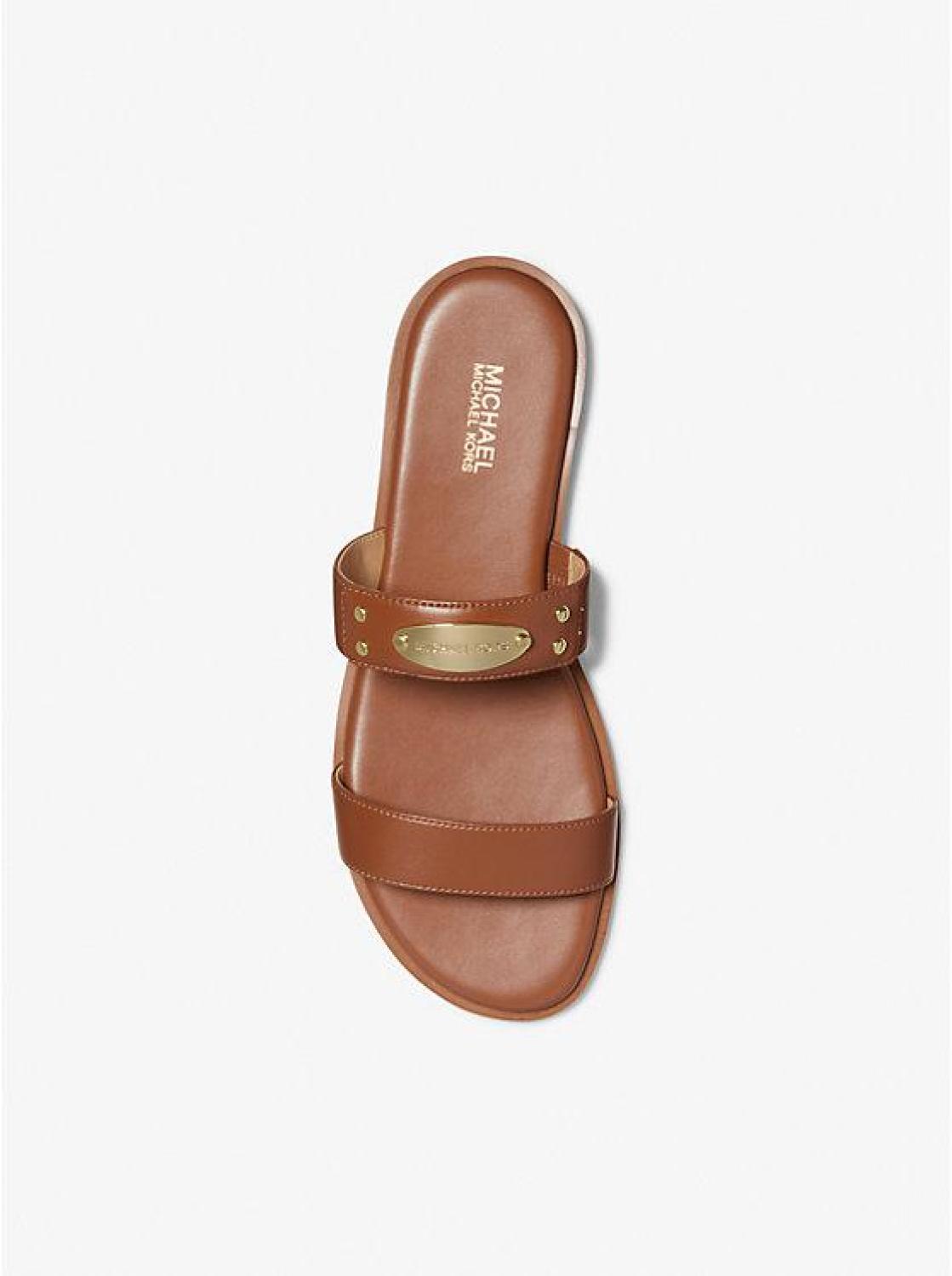 The search for your warm-weather shoe begins and ends with this slide sandal. The silhouette is clean and modern, consisting of only two smooth straps adorned with a logo plaque. Wear yours with a tucked-in T-shirt and midi skirt on a sunny day. • Sandal • Polyurethane • 100% polyurethane • Lining: polyurethane blend • Sole: rubber • Open toe • Slip on • Imported • Sandal • Polyurethane • 100% polyurethane • Lining: polyurethane blend • Sole: rubber • Open toe • Slip on • Imported
