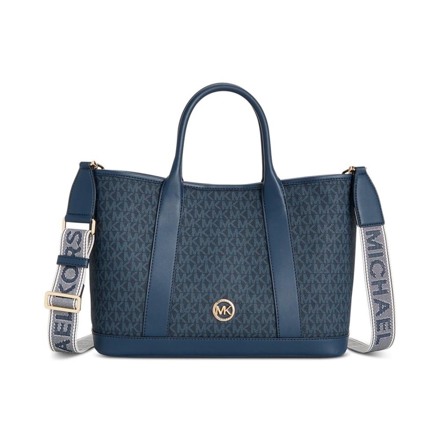 Classic monogram and a removable webbing strap give this satchel by MICHAEL Michael Kors a perfect everyday sophistication.