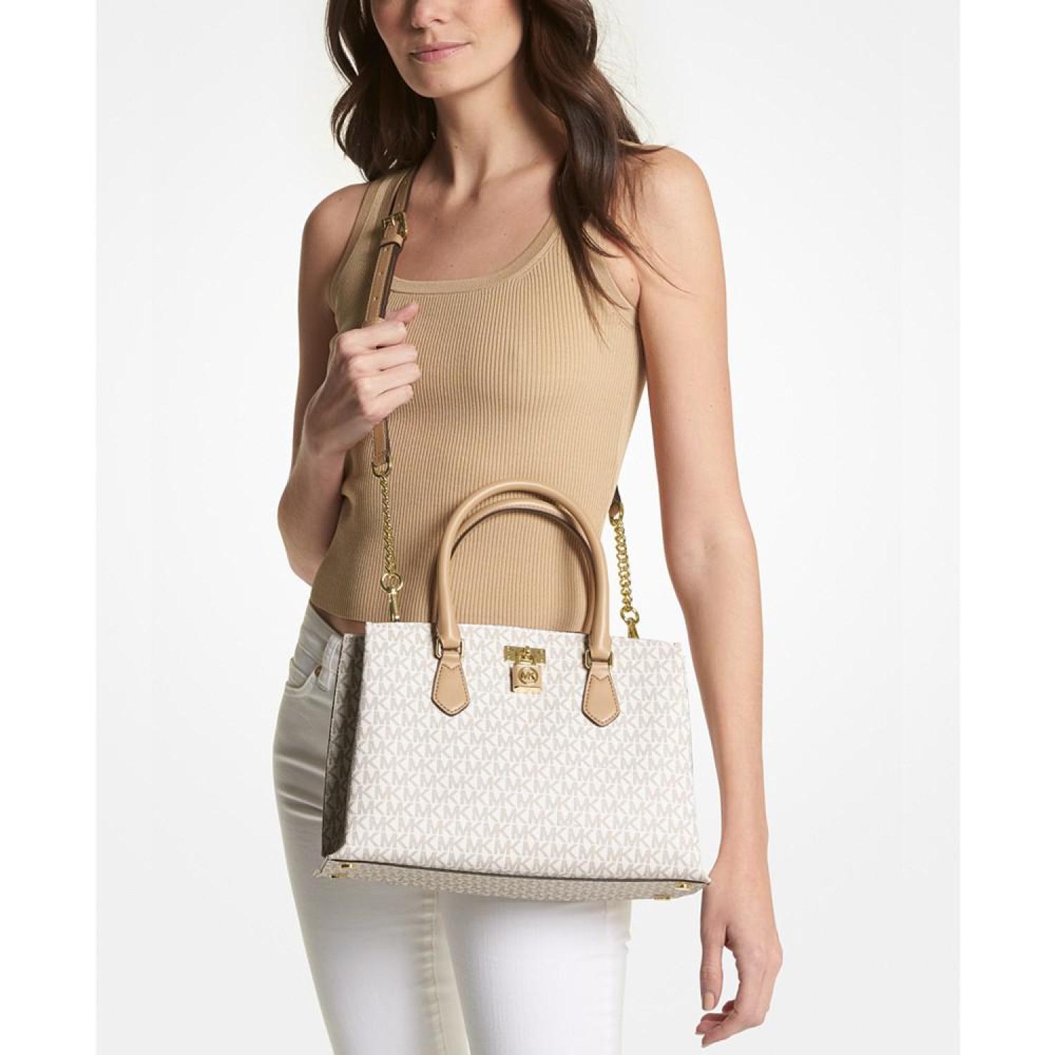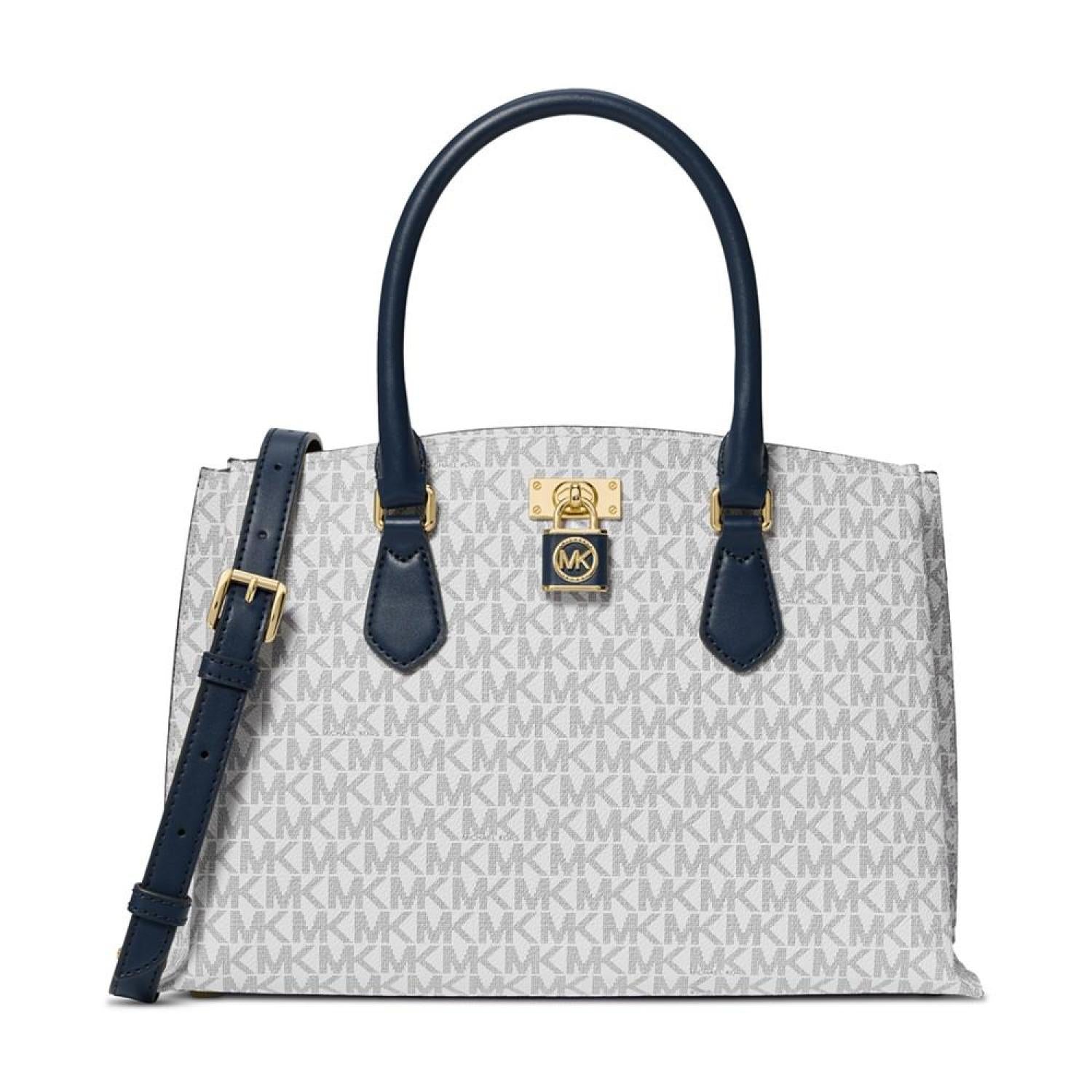 Classic monogram with a timeless silhouette, the Ruby Signature Logo Monogram Medium Satchel by MICHAEL Michael Kors elevates anything it's paired with.