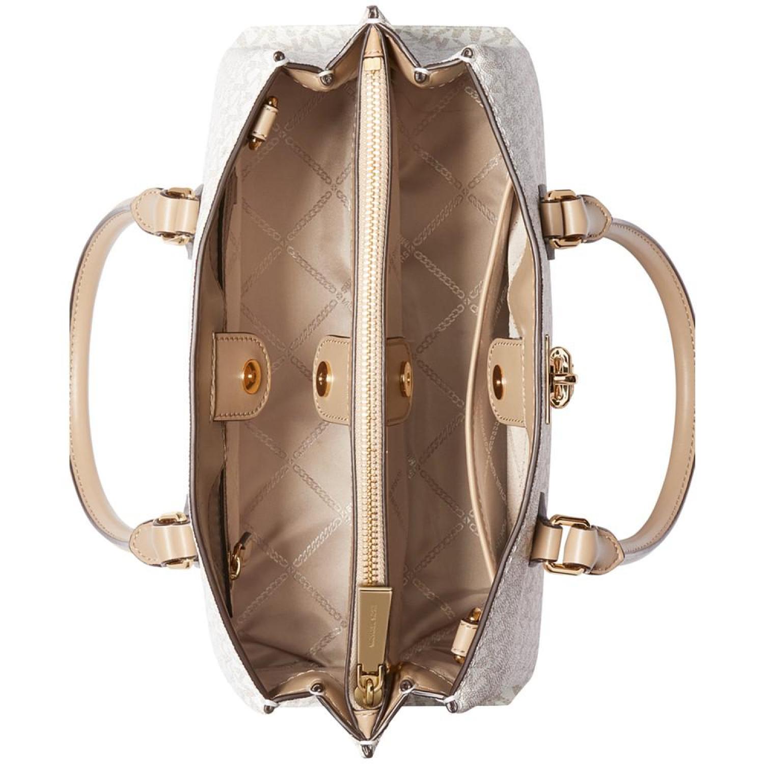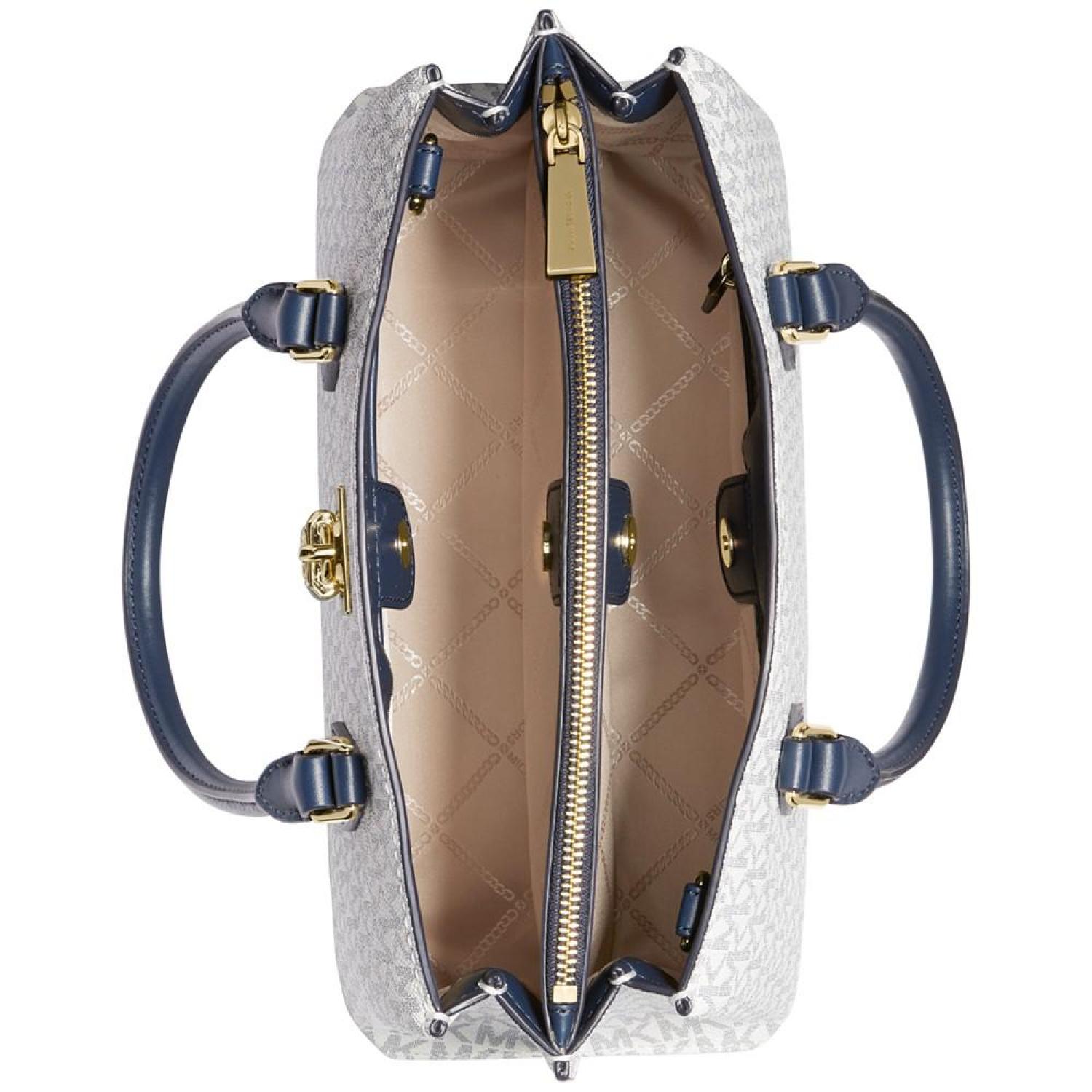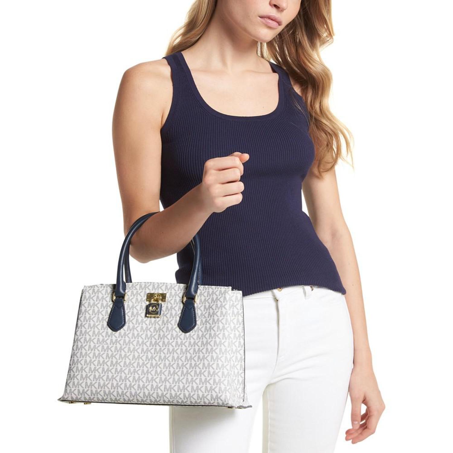 • Classic monogram with a timeless silhouette, the Ruby Signature Logo Monogram Medium Satchel by MICHAEL Michael Kors elevates anything it's paired with.