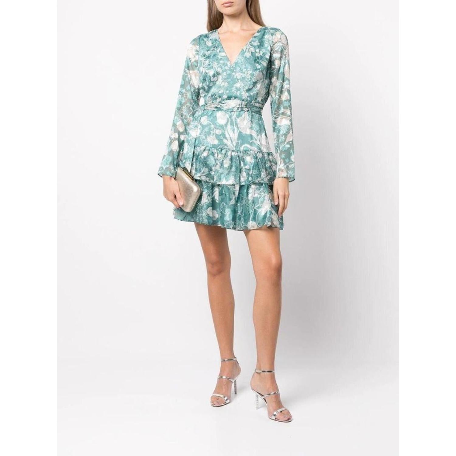 Long Sleeved V-neck Tiered Chiffon Mini Dress