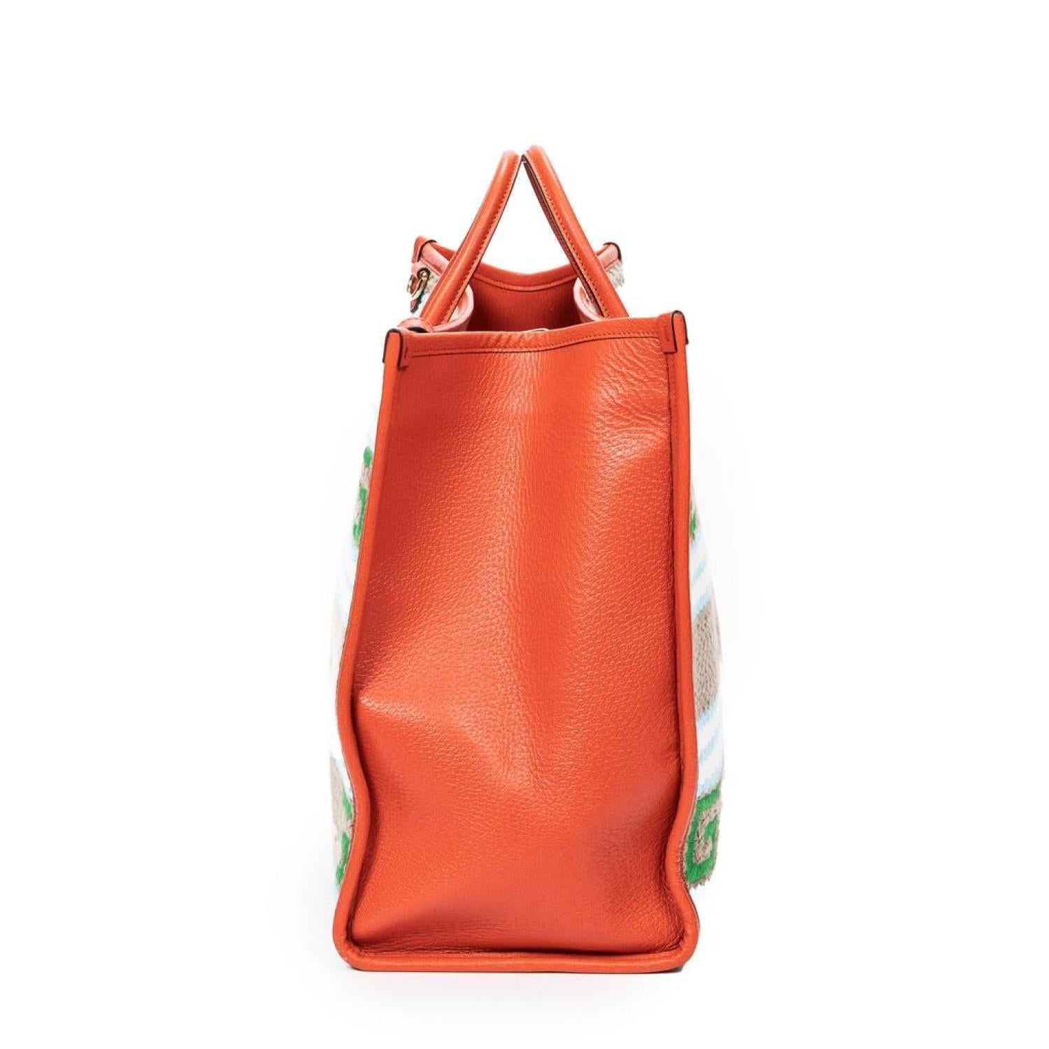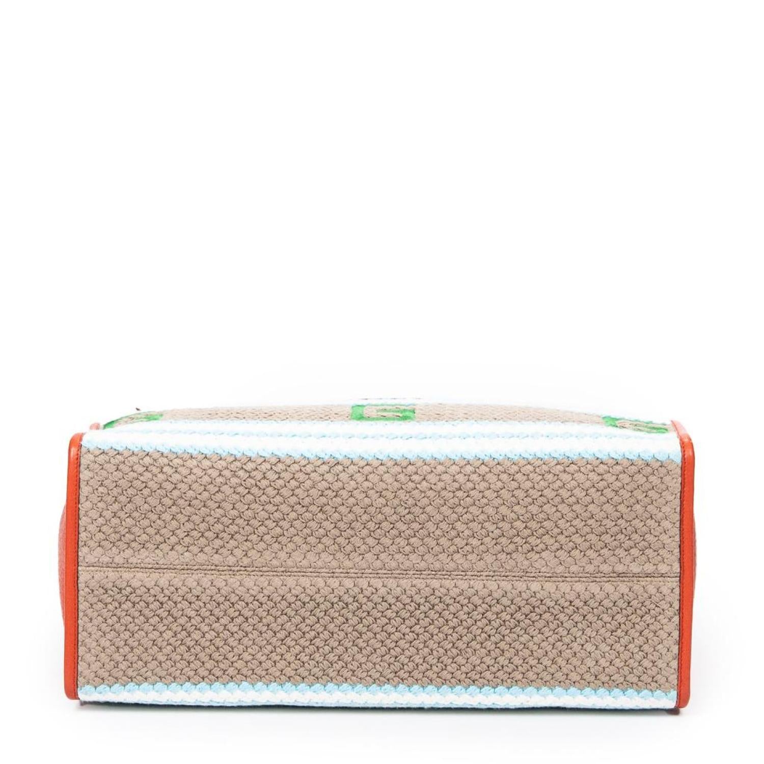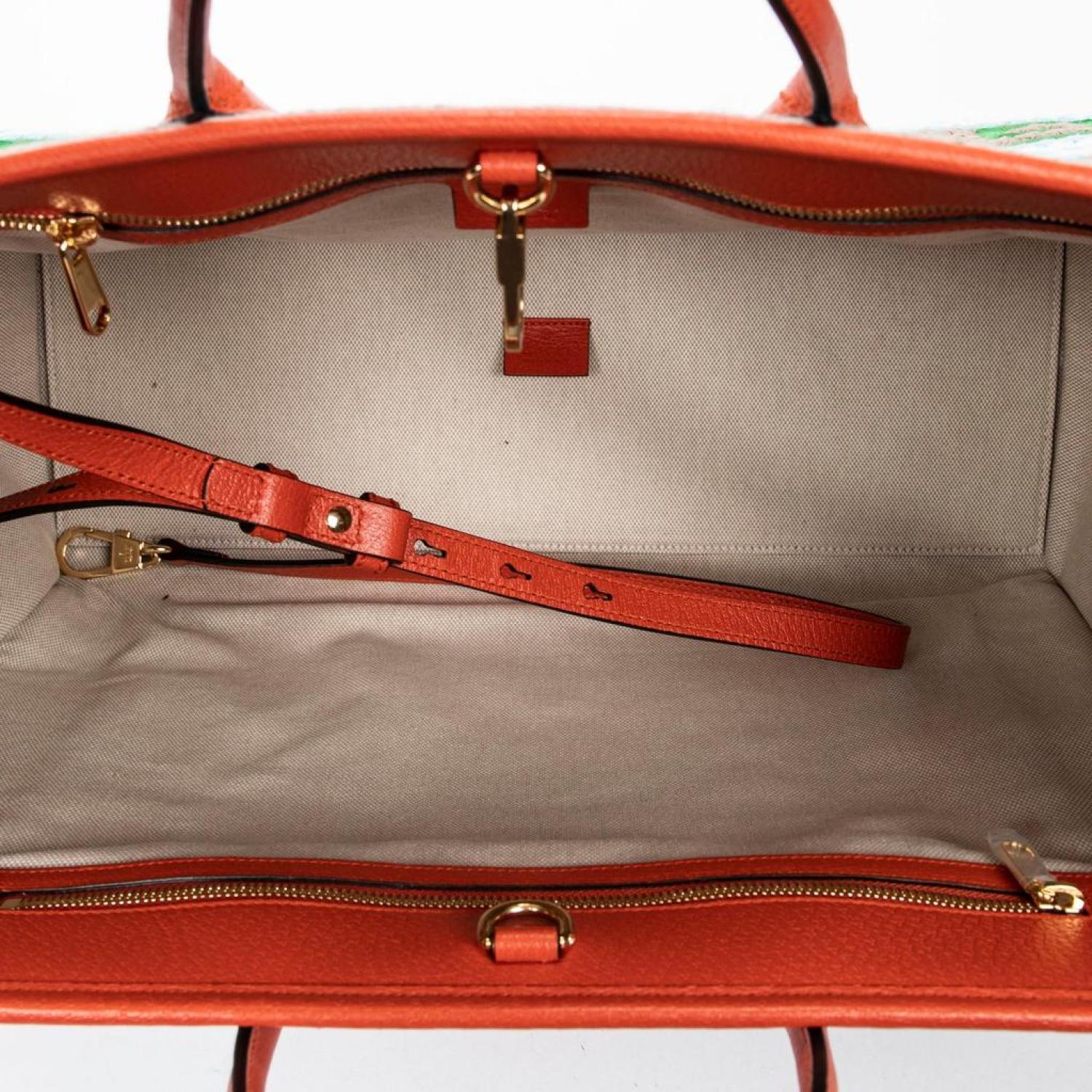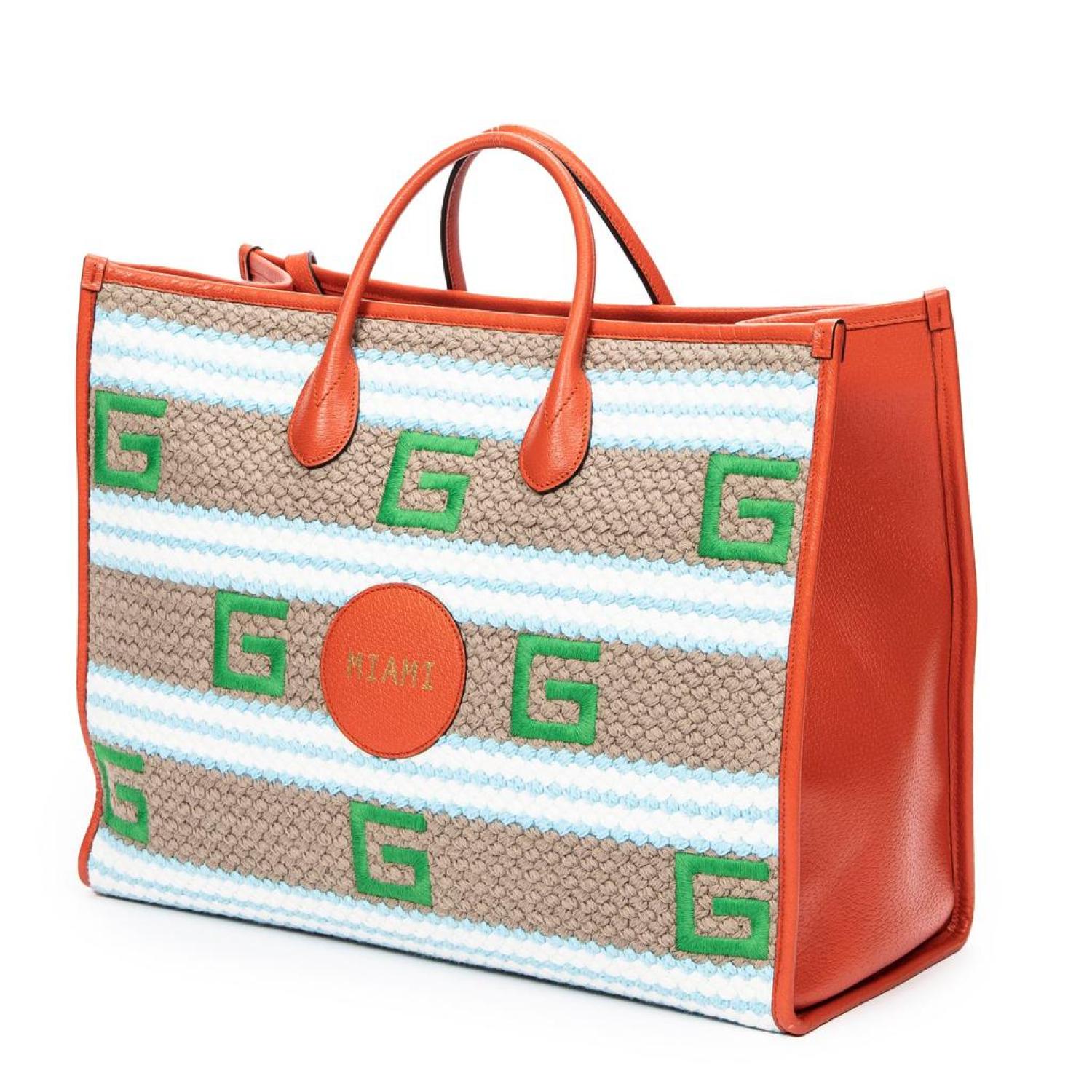 • Gucci Shoulder Bag in Light Brown/Orange/Green/White/Blue Embroidered Miami Striped Canvas and Gold hardware. Dimensions - 43*34*17cm. Serial number - 630380 001998. Inclusions - booklet.