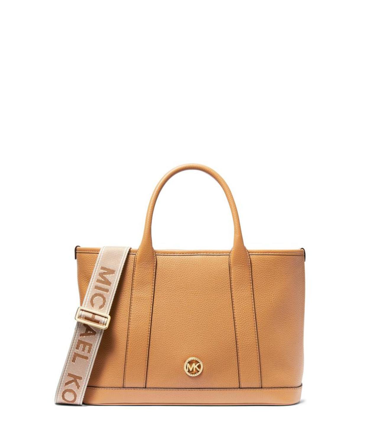 Get set for the festivities carrying the MICHAEL Michael Kors® Luisa Medium Satchel. Crafted from PVC leather, this bag features zippered closure, dual carry handles, one adjustable crossbody strap, and brand detailing on the front.