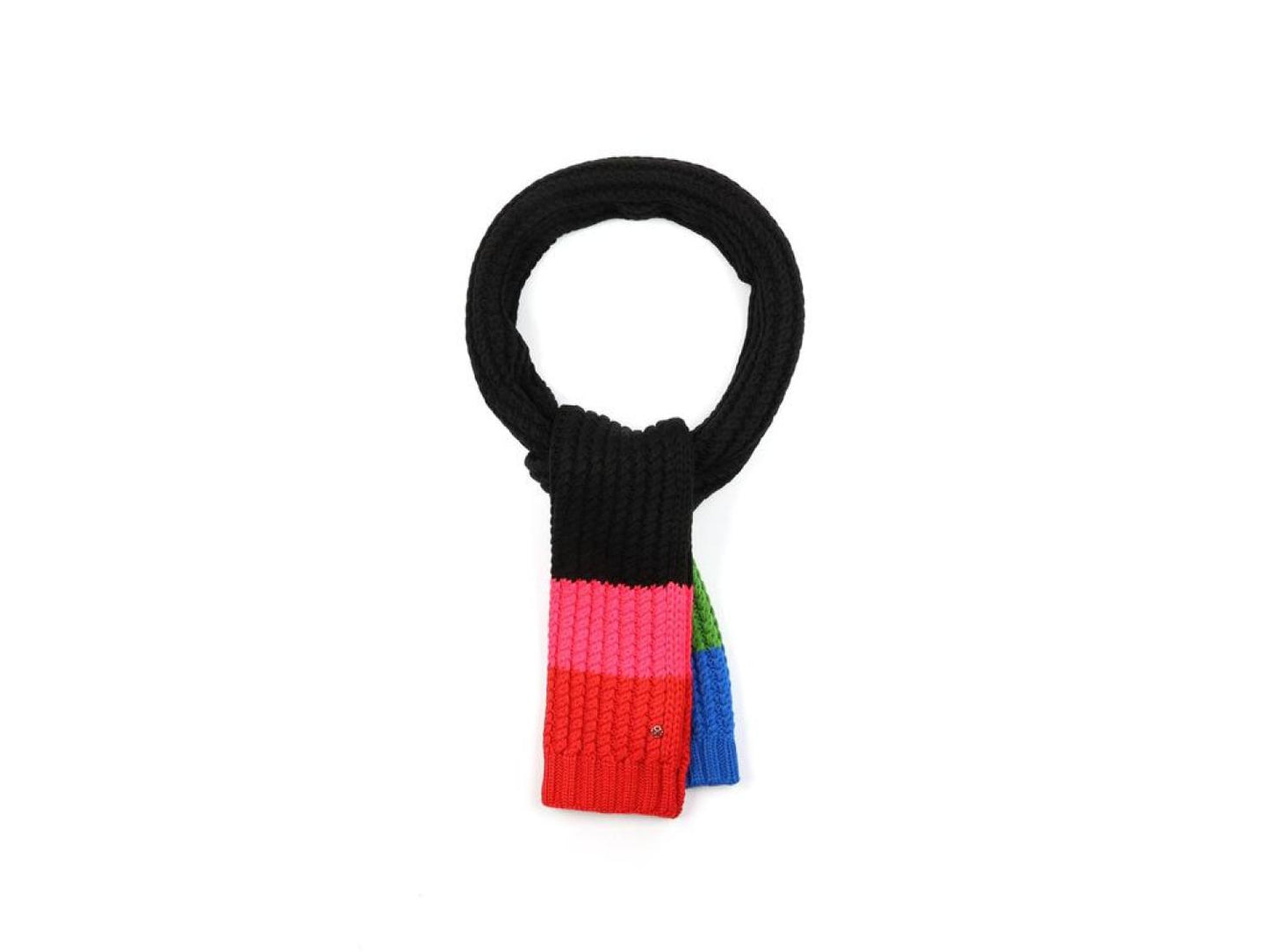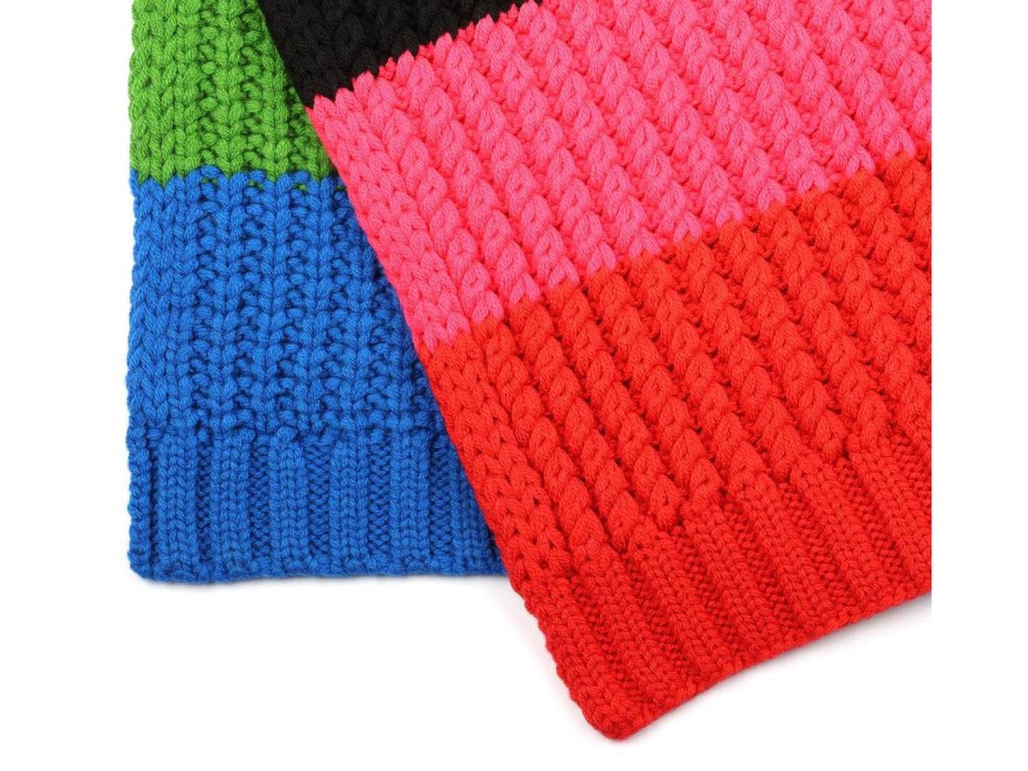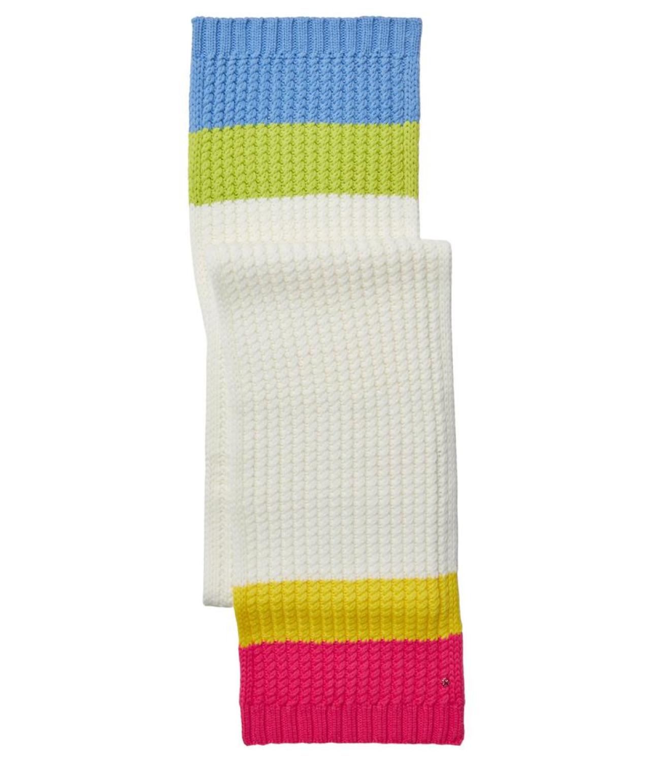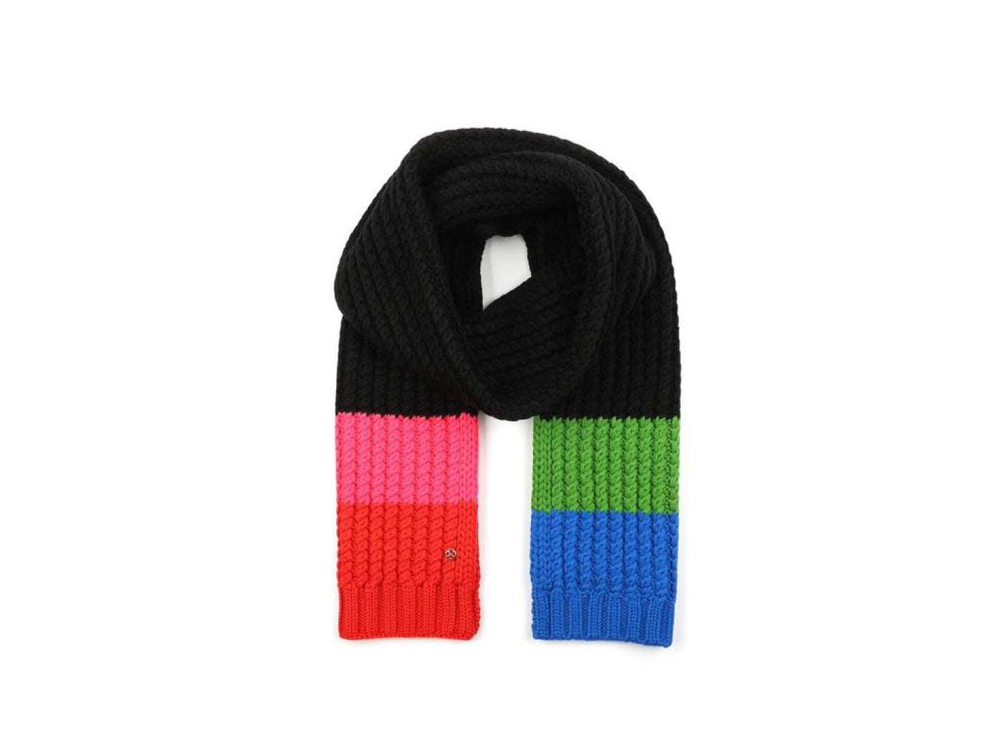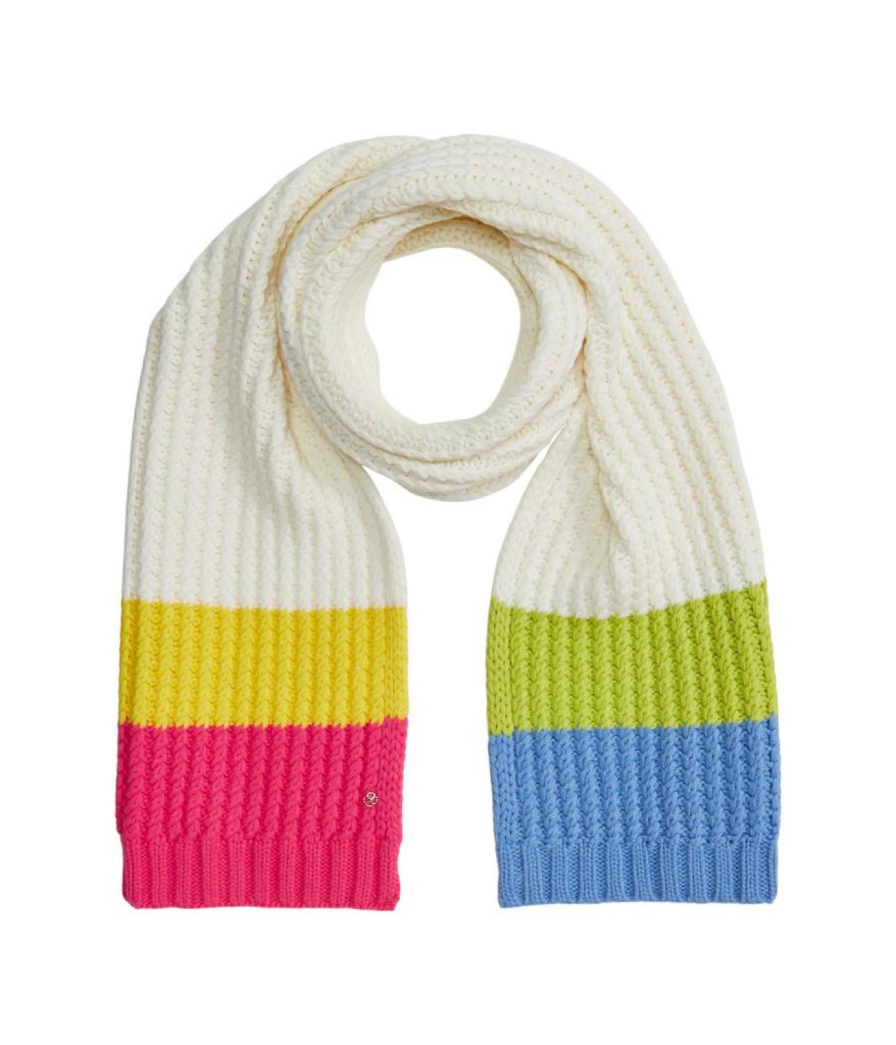 The primary materials that compose this product contain a minimum of 20 percent recycled content. Add a tinge shade to your outfits wearing the Kate Spade New York® Marble Cable Knit Scarf. It features a dense cable stitch construction with color-block pattern along the cuffs and ribbed hems. Iconic spade flower at the hem. 45% acrylic, 30% wool, 25% recycled acrylic. Machine washable. Imported. Measurements: Width: 12 in Length: 80 in