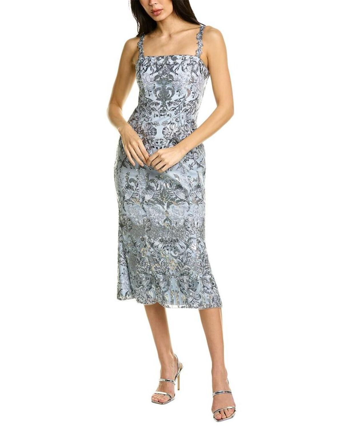 About The Brand - Gowns And Cocktails For That Special Night. Embroidered Midi Dress In Silver With Sequin And Embroidered Detailing And Center Back Slit At Hem Approximately 45In From Shoulder To Hem Model Is 5'9.5 And Is Wearing A Size 4. Measurements May Vary Slightly By Size. Center Back Zipper With Hook-And-Eye Closure Shell - 100% Nylon Lining - 100% Polyester Dry Clean Only Imported