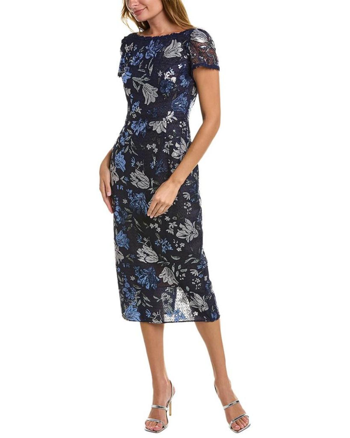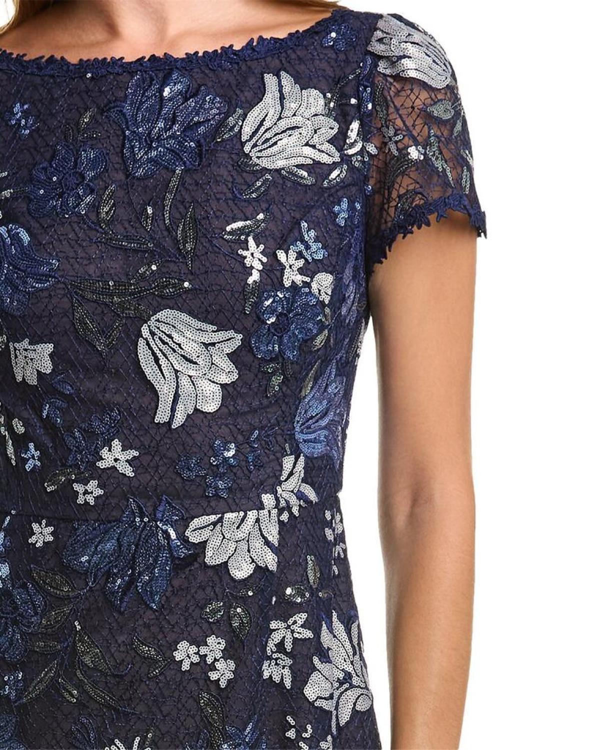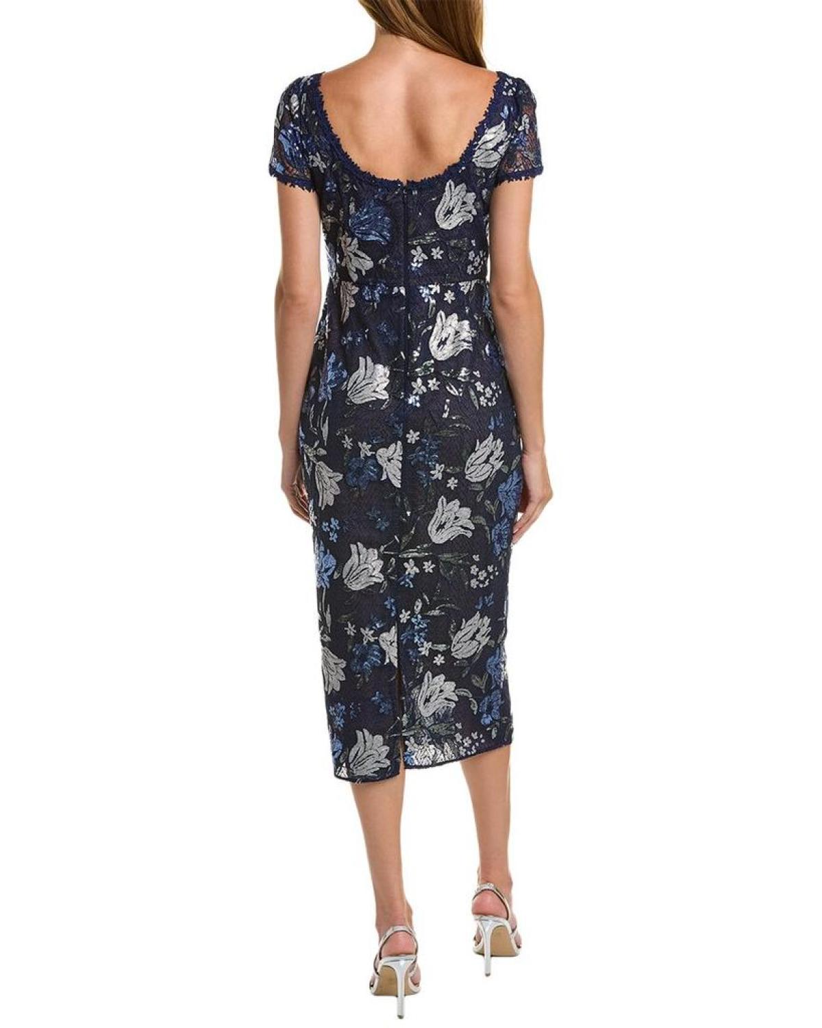Introducing the Marchesa Notte Embroidered Midi Dress, a stunning addition to your wardrobe for any special occasion. This exquisite dress showcases the brand's signature blend of elegance and sophistication. Crafted with meticulous attention to detail, it features intricate embroidery on a navy backdrop, adding a touch of glamour to your ensemble.The boat neck and low back design exude femininity, while the center back slit at the hem allows for ease of movement and adds a hint of allure. With a length of approximately 50 inches from shoulder to hem, this dress flatters your figure and creates a graceful silhouette.Designed to fit beautifully, this dress is available in various sizes. The model, standing at 5'9.5, wears a size 4 for reference. Please note that measurements may slightly vary by size.For ease of wear, the Marchesa Notte Embroidered Midi Dress is equipped with a center back zipper along with a reliable hook-and-eye closure. Made from 100% polyester, this dress requires dry cleaning to keep it looking its best. It is imported, ensuring the highest quality craftsmanship.Make a lasting impression at your next event with the Marchesa Notte Embroidered Midi Dress. Perfectly blending sophistication and style, it is the ultimate choice for gowns and cocktails on that special night. Elevate your fashion game and exude elegance with this enchanting piece from the renowned brand, Marchesa Notte.