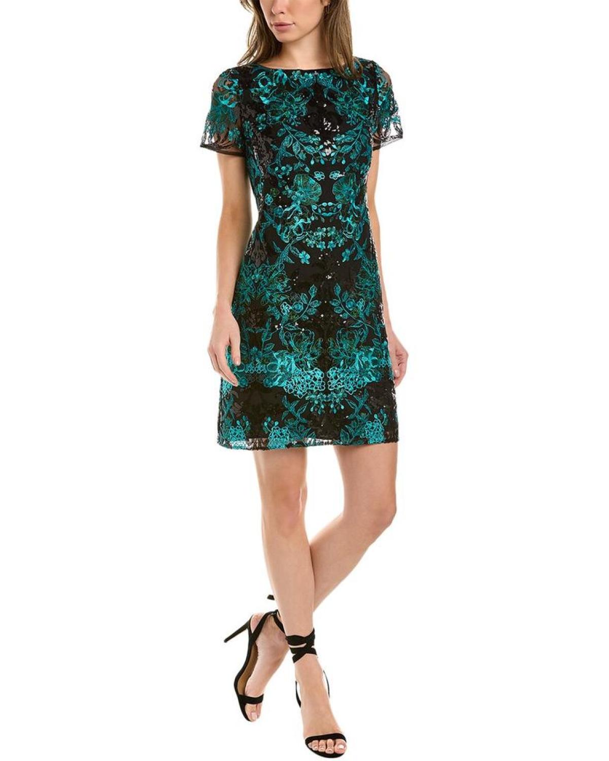 • About The Brand - Gowns And Cocktails For That Special Night. Embroidered Sheath Dress In Black With Sequin Accents Approximately 36In From Shoulder To Hem Model Is 5'9.5 And Is Wearing A Size 4. Measurements May Vary Slightly By Size. Center Back Zipper With Hook-And-Eye Closure Shell - 100% Nylon Lining - 100% Polyester Dry Clean Only Imported