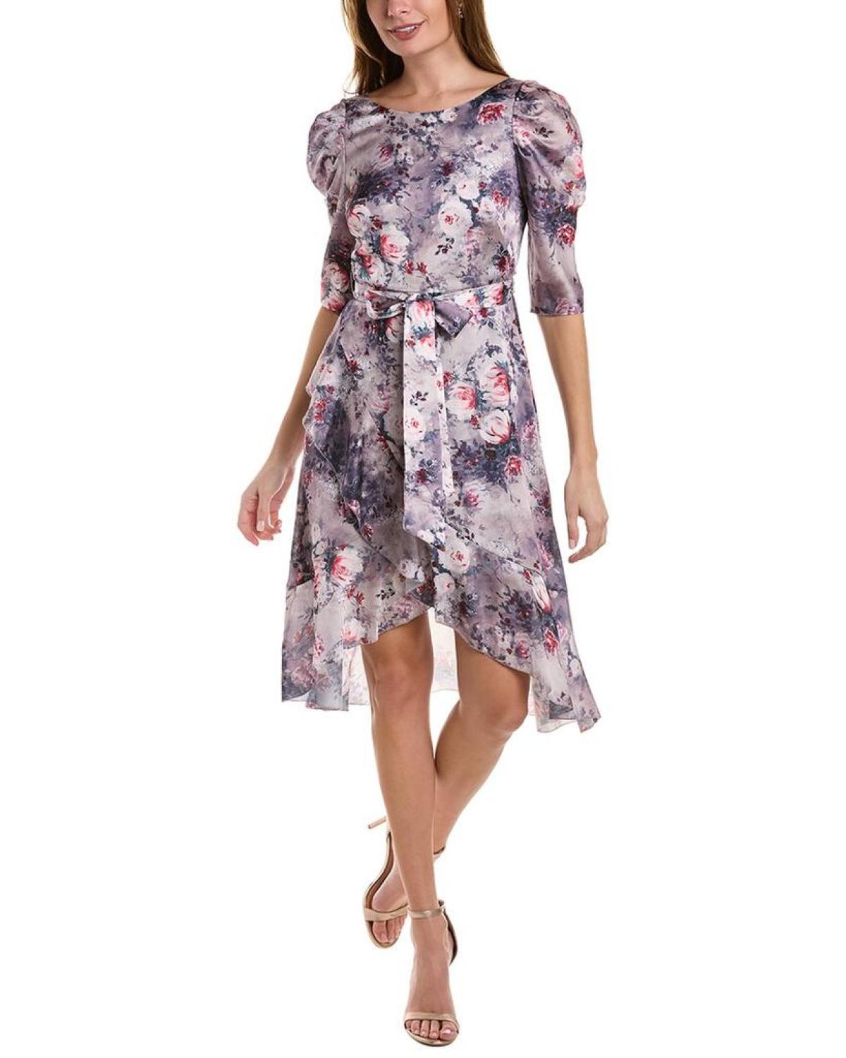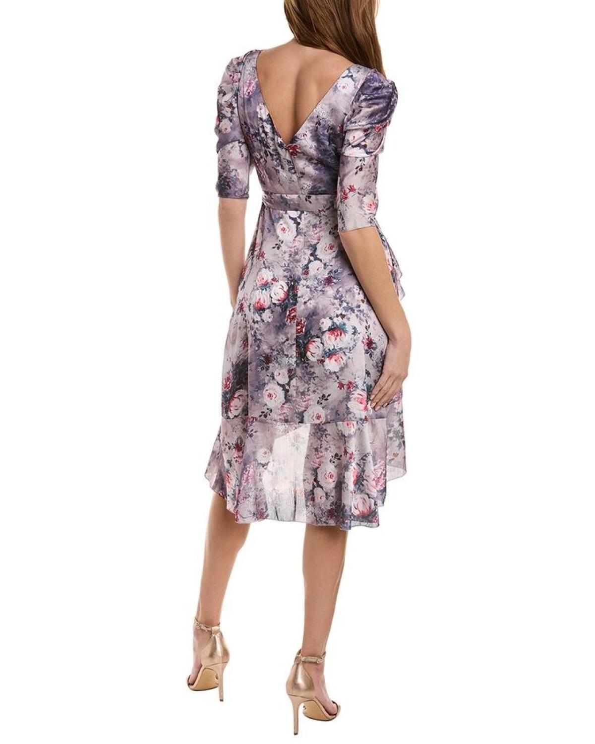 The Marchesa Notte Floral Textured Charmeuse Midi Dress is the perfect addition to your wardrobe for any special occasion. Featuring pleated 3/4-length sleeves, a self-tie belt at the waist, and dual side seam pockets, this dress combines style and functionality. The beautiful mauve color and crossover ruffled front hem add a touch of elegance to this stunning dress. Made with 100% polyester, it is perfect for a night out and can be easily cared for with dry cleaning only. Available in a range of sizes, this dress is sure to fit any body type. Whether attending a wedding or a cocktail party, this dress is sure to turn heads.