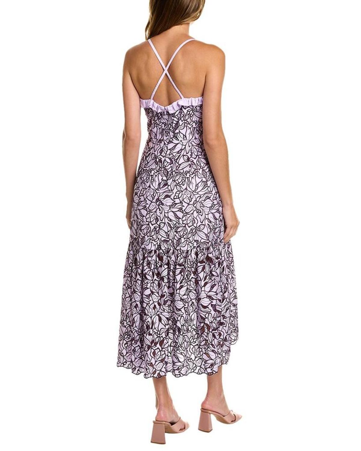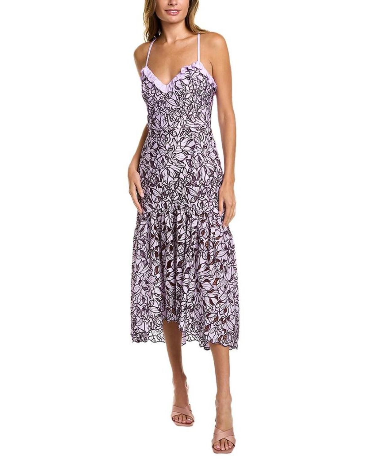Introducing the Marchesa Notte Peony Midi Dress - a stunning addition to your wardrobe that exudes elegance and sophistication. From the renowned brand Marchesa Notte, known for their exquisite gowns and cocktail attire, this dress is perfect for any special night.This lilac midi dress features a beautifully embroidered lace design, adding a touch of delicate charm. The halter neck and elasticized shoulder straps provide comfort and a flattering fit. A ruffle trim and flounce hem further enhance the dress, giving it a graceful and feminine silhouette.Measuring approximately 53 inches from shoulder to hem, this dress is designed to impress. The model showcased is 5'11 and wearing a size 4, but please note that measurements may vary slightly by size.For ease of wearing, the dress is equipped with a center back zipper and hook-and-eye closure, ensuring a secure and seamless fit. Crafted from 100% polyester, it boasts both style and durability.To maintain the pristine condition of this dress, we recommend dry cleaning only. It is imported, showcasing the brand's commitment to quality and luxury.Embrace elegance and turn heads with the Marchesa Notte Peony Midi Dress. Indulge in its beauty and enjoy a memorable night in this exquisite creation.