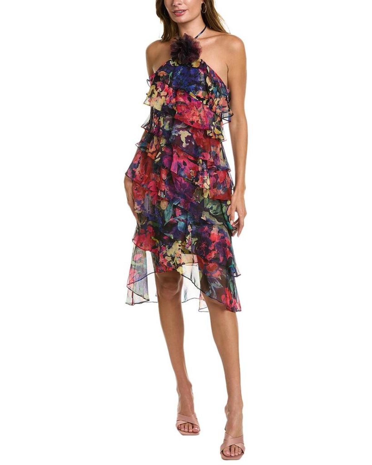 Introducing the stunning Marchesa Notte Printed Dress, a must-have addition to any stylish woman's wardrobe. This captivating dress embodies the essence of the Marchesa Notte brand, known for its exquisite gowns and cocktails perfect for those special nights.Crafted with meticulous attention to detail, this printed dress features a timeless black multicolor design that is sure to turn heads. The self-tie halter neck provides a touch of elegance, while the 3D floral pom at the neckline adds a unique and feminine touch. Designed for a flattering fit, this dress measures approximately 44 inches from shoulder to hem. The model in the images stands at an impressive 5'11' and is wearing a size 4, showcasing the versatility and adaptability of this stunning piece. Please note that exact measurements may slightly vary by size.With a convenient center back zipper featuring a hook-and-eye closure, this dress ensures easy wear and a seamless silhouette. The fabric is crafted from 100% polyester, offering a luxurious feel and drape. To maintain its pristine appearance, we recommend dry cleaning only.Elevate your style game with this Marchesa Notte Printed Dress, an imported creation that exudes sophistication and charm. Look effortlessly chic at your next special occasion or event with this extraordinary dress. Order now and experience the impeccable craftsmanship and attention to detail that Marchesa Notte is known for.