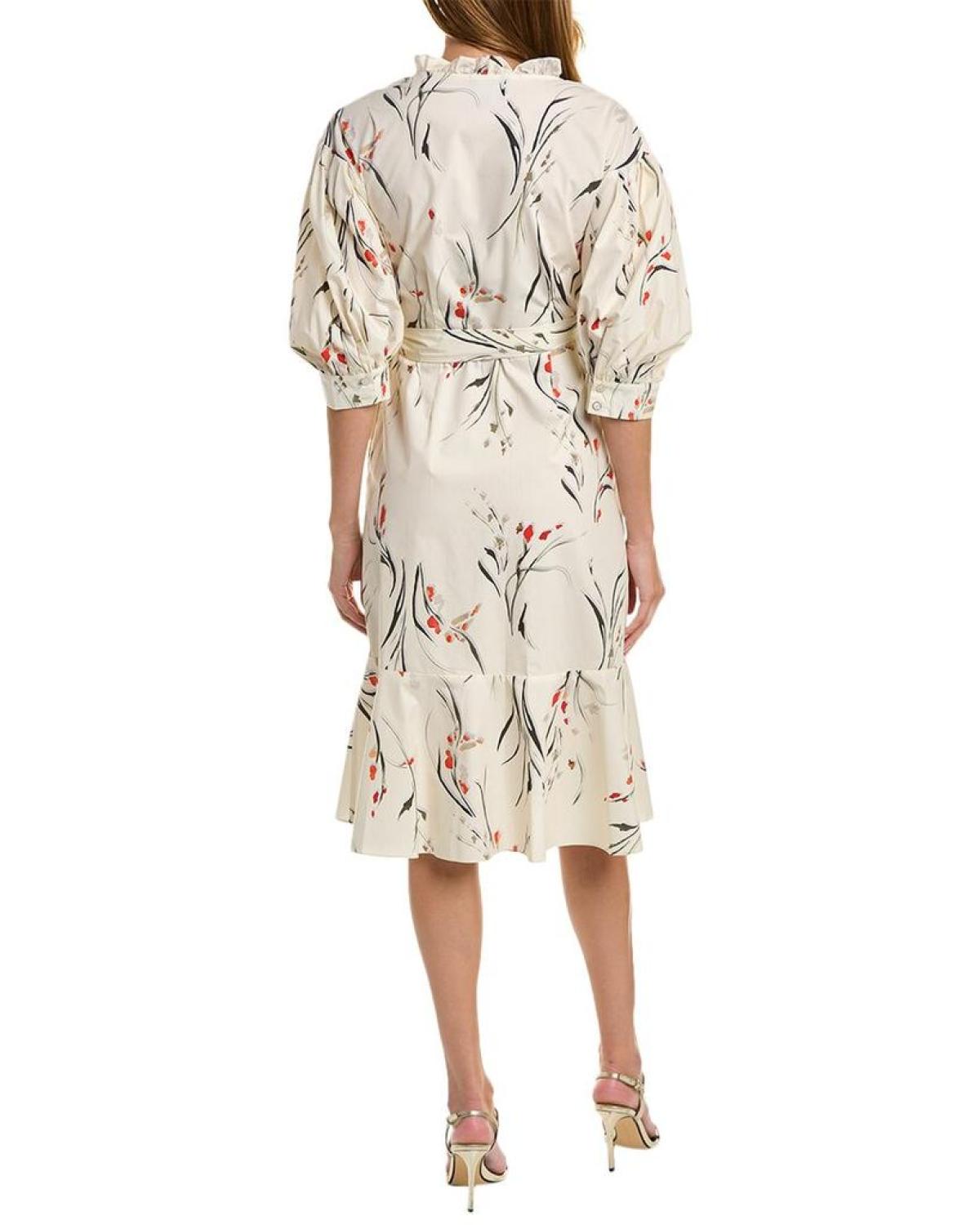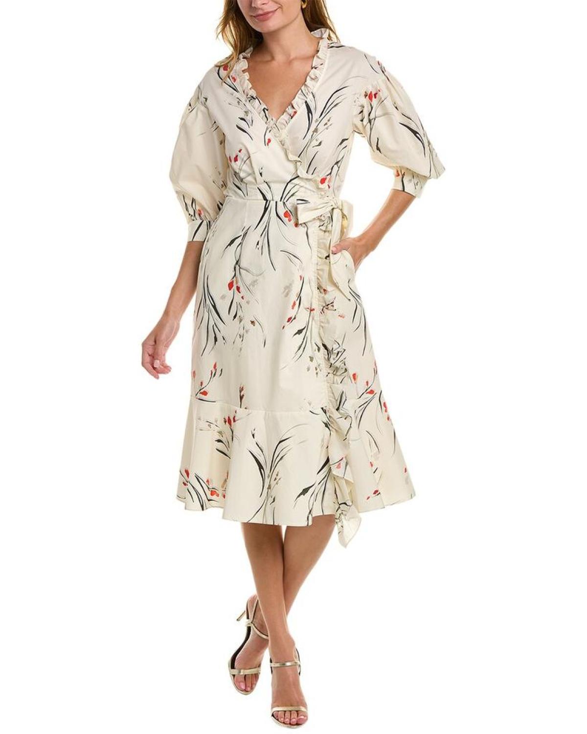 Introducing the Marchesa Notte Printed Wrap Dress, a stunning addition to your wardrobe that beautifully combines style and elegance. Crafted by the renowned brand Marchesa Notte, known for their exquisite gowns and elegant cocktail dresses that are perfect for those special nights.Made with attention to detail, this printed wrap dress in ivory multicolor is truly a masterpiece. Featuring a delicate ruffle trim and elbow-length puff sleeves, it accentuates your femininity and adds a touch of sophistication to your look. The side seam pockets add convenience without compromising the dress's sleek silhouette.Measuring approximately 42 inches from shoulder to hem, this dress is designed to flatter different body types. The model, standing at 5'9.5, is wearing a size 4, but please note that measurements may vary slightly by size. With a self-tie wrap closure, you have the freedom to adjust the fit to your liking, ensuring both comfort and style. Crafted from 100% cotton, this dress offers breathability and a soft, luxurious feel against your skin.To maintain its pristine condition, we recommend dry cleaning this dress. It is an imported piece, representing the brand's dedication to quality and attention to detail.Embrace elegance and grace with the Marchesa Notte Printed Wrap Dress. Whether for a special occasion or a casual gathering, this dress will make you stand out in a crowd. Elevate your style and leave a lasting impression with this stunning dress from Marchesa Notte.