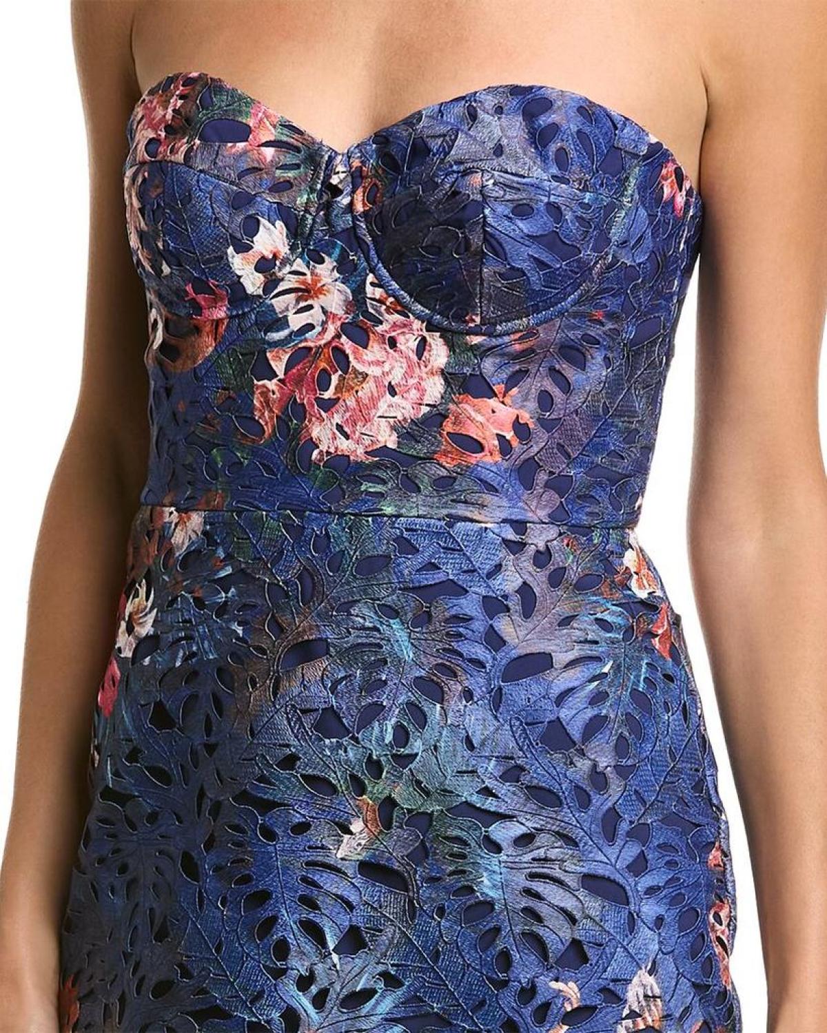 Introducing the Marchesa Notte Sleeveless Floral Dress, a stunning piece that combines elegance and style for any special occasion. This exquisite dress is designed by the renowned brand, Marchesa Notte, known for their expertise in creating glamorous gowns and cocktails dresses.The Sleeveless Floral Dress showcases a captivating royal blue hue with an eyelet design, making it a true standout in any crowd. The bustier-style bodice accentuates your figure flawlessly, while the sweetheart neckline adds a touch of femininity. With a length of approximately 30 inches from shoulder to hem, this dress hits just the right spot for a sophisticated and chic look.Our model stands at 5'9.5' and is wearing a size 4, providing a reference for you to select the perfect fit. Please note that measurements may vary slightly by size, ensuring a tailored and flattering silhouette. The dress features a convenient center back zipper with a hook-and-eye closure, allowing for easy on and off.Crafted from 100% polyester, this dress offers a luxurious feel and ensures durability for repeated wear. To keep it looking its best, we recommend dry clean only. The Marchesa Notte Sleeveless Floral Dress is imported, guaranteeing exceptional quality and craftsmanship.Step into the spotlight and make a lasting impression with this enchanting Marchesa Notte Sleeveless Floral Dress. Perfect for formal events, weddings, or any special night, this dress combines sophistication and a touch of whimsy, making it a must-have addition to your wardrobe. Embrace the allure of this stunning piece and turn heads wherever you go.