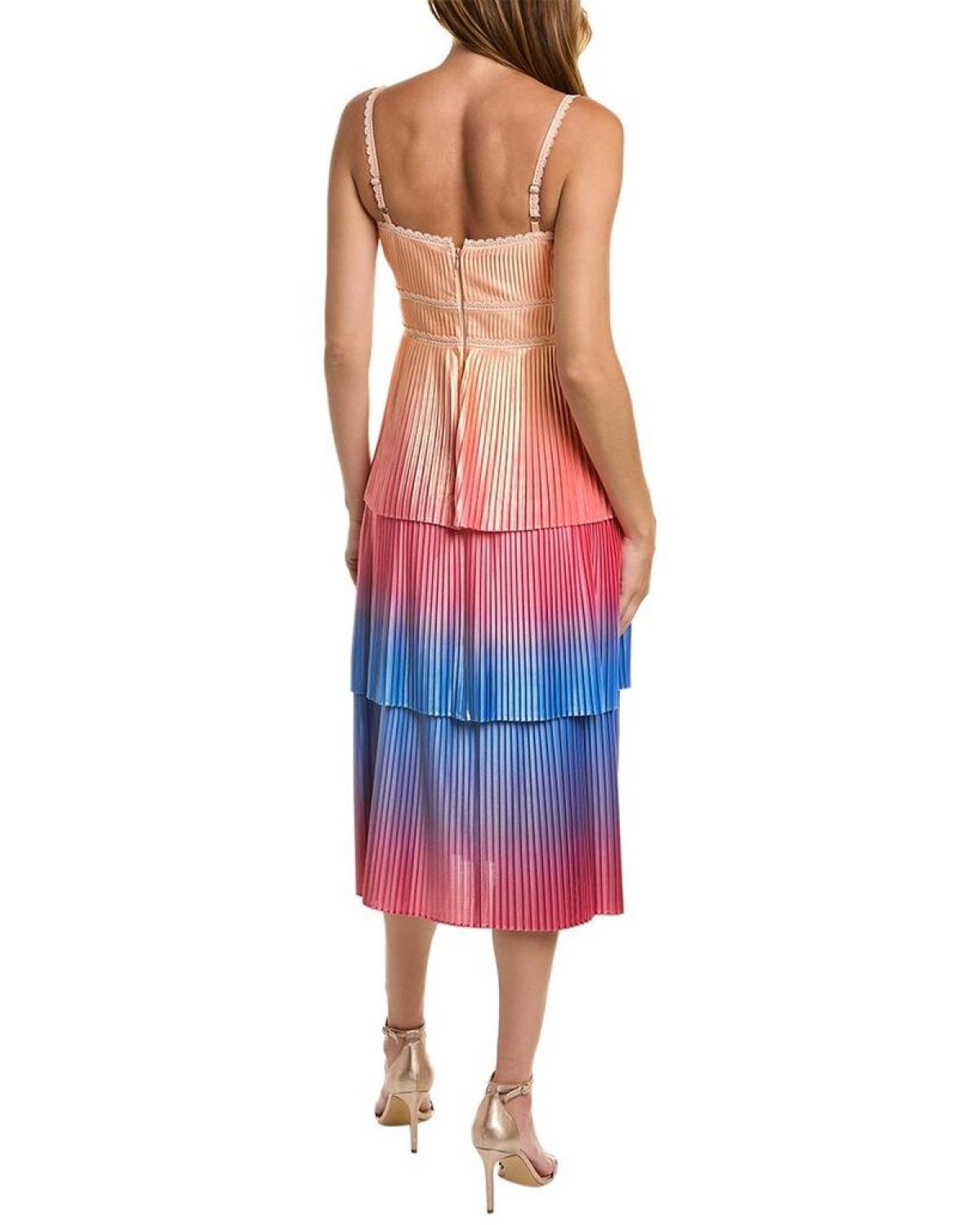 Introducing the Marchesa Notte Sleeveless Printed Dress, a stunning addition to your wardrobe that effortlessly combines elegance and contemporary style. From the renowned brand Marchesa Notte, known for their exceptional gowns and glamorous cocktail attire, this dress is sure to make a statement at any special occasion.Crafted with utmost precision, this sleeveless printed dress features a chic champagne hue adorned with a pleated and tiered design, exuding sophistication and grace. The sweetheart neckline and open square back add a touch of allure, while the adjustable shoulder straps ensure a perfect fit for every wearer. With a length of approximately 43 inches from shoulder to hem, this dress offers a modest yet trendy look. The model, standing at 5'9.5, is wearing a size 4, but please note that measurements may vary slightly by size. For practicality and convenience, the Marchesa Notte Sleeveless Printed Dress is equipped with a center back zipper and hook-and-eye closure, allowing for easy wearing and removal. Crafted from a blend of 95% polyester and 5% spandex, this dress not only provides a comfortable and flattering fit but also ensures durability for long-lasting wear. To maintain its pristine condition, it is recommended to have this dress dry cleaned only.Exemplifying the highest standard of craftsmanship, this dress is proudly imported, reflecting the brand's commitment to quality and attention to detail. Embrace the elegance of Marchesa Notte with this Sleeveless Printed Dress and be the center of attention at your next event. Update your wardrobe now with this exquisite piece that seamlessly blends timeless sophistication and contemporary style.