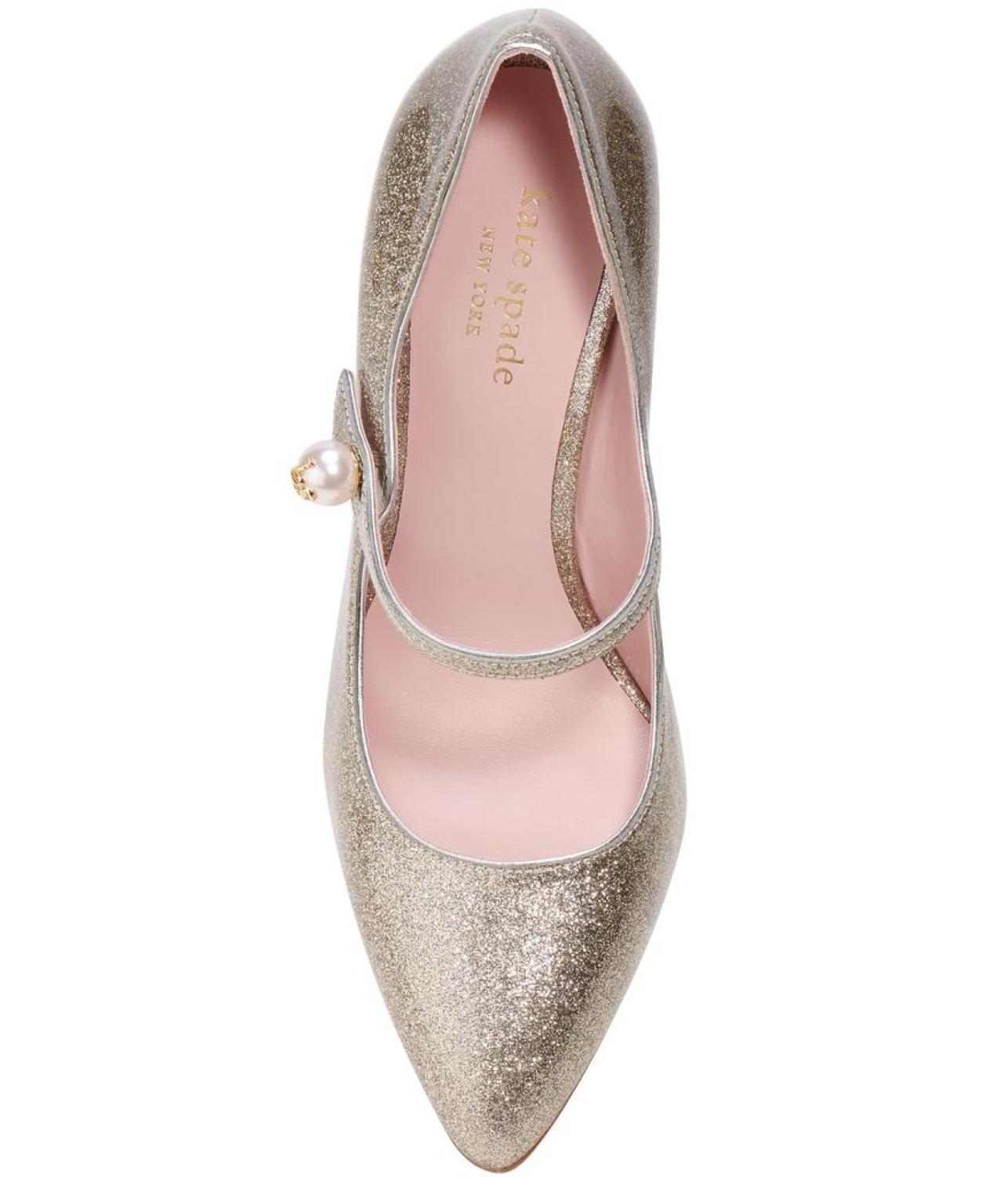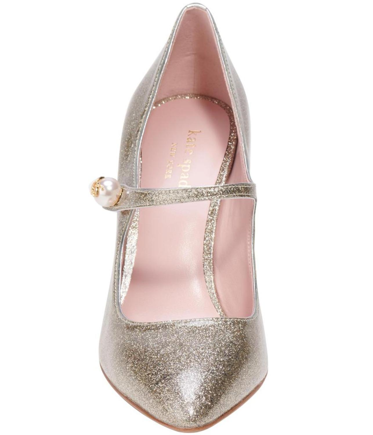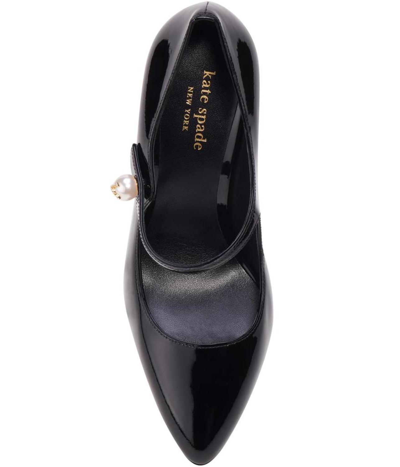 • Turn heads wearing the Kate Spade New York® Maren Pearl. Crafted from leather upper, this pair of heels features pointed toe design, flare heel, and pearl detailing.