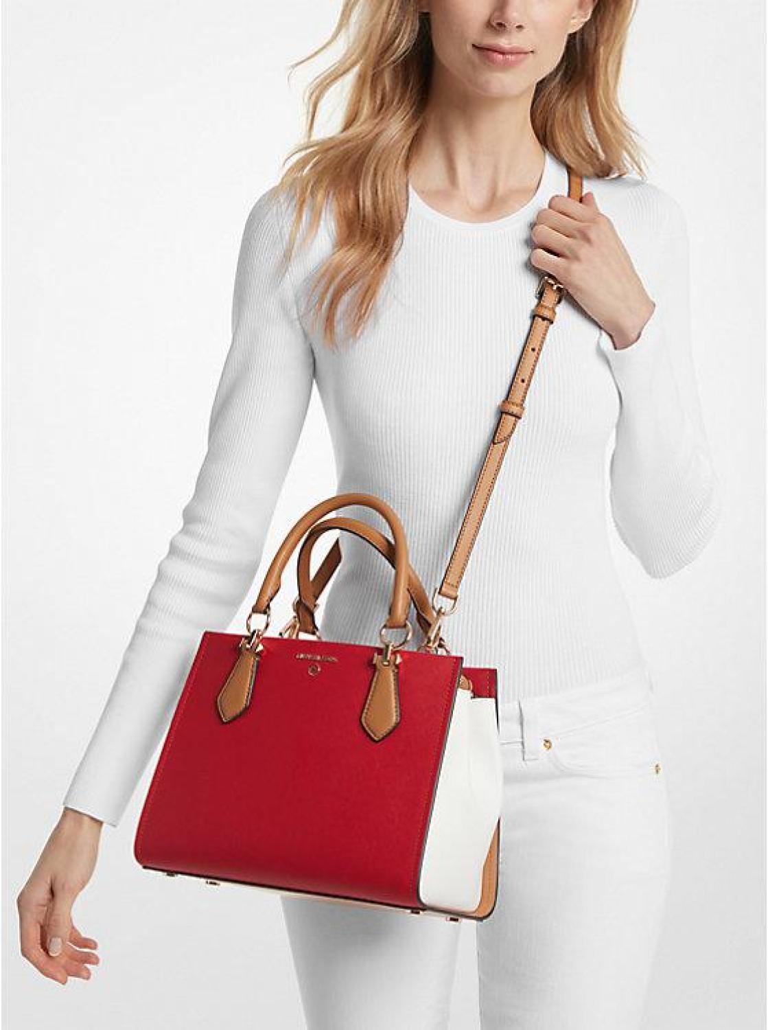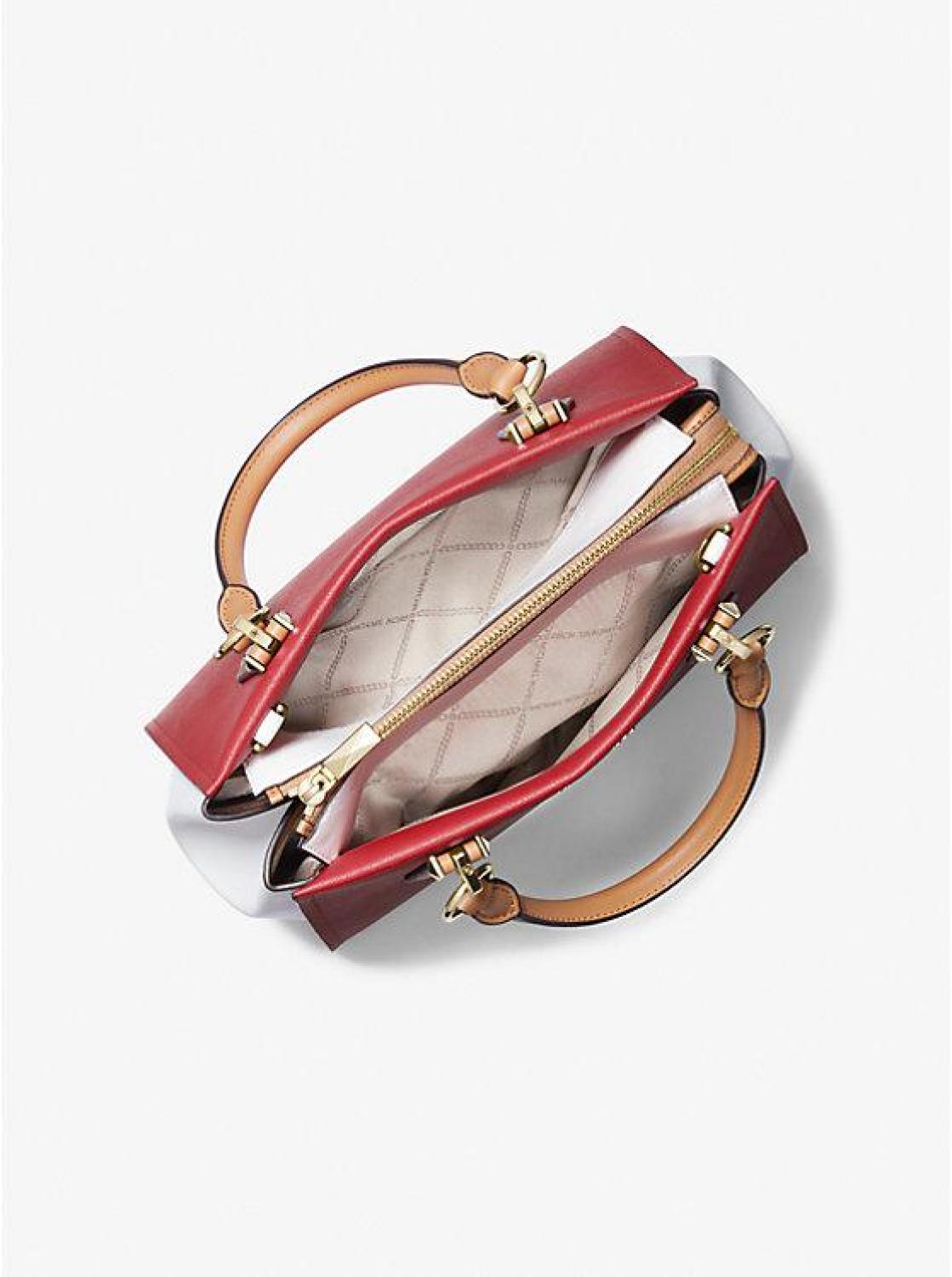 Marilyn Medium Color-Block Saffiano Leather Satchel