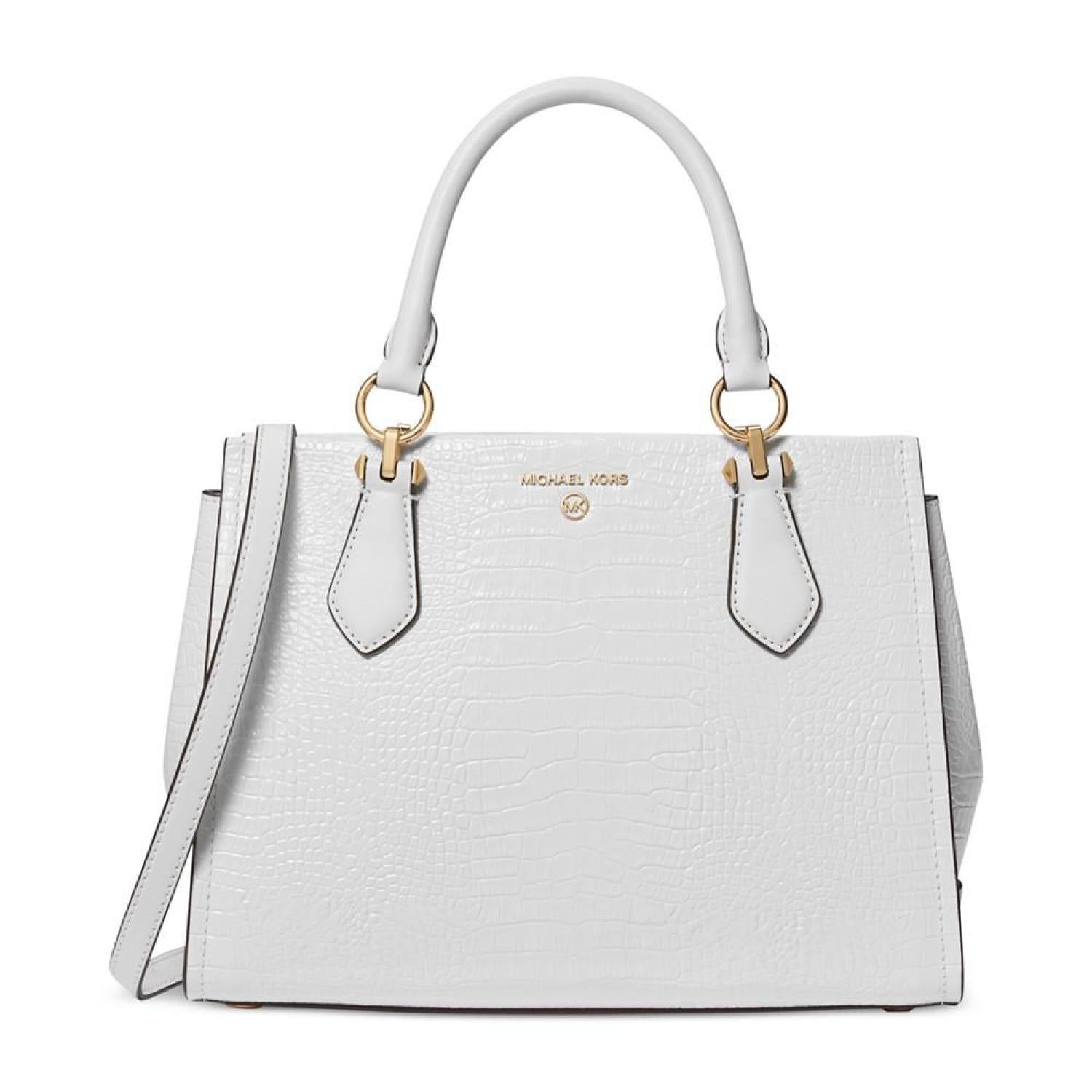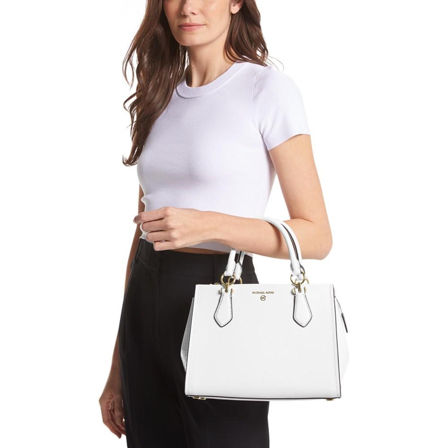 • Classically structured with functional interior details, the Marilyn Medium Leather Satchel by MICHAEL Michael Kors adds sophistication to everyday attire.