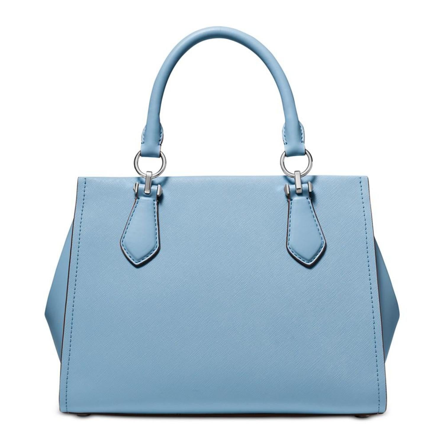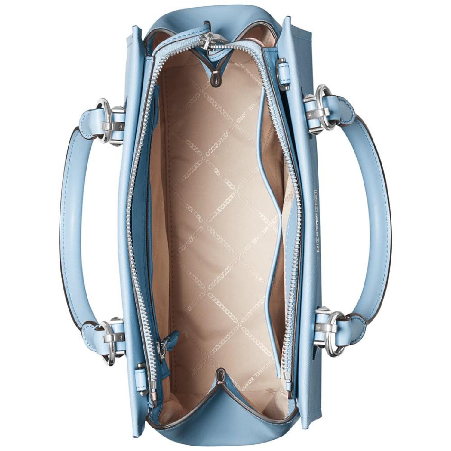 Versatile in a classic silhouette, this leather Marilyn satchel from MICHAEL Michael Kors features delicate handles and a long strap for multiple carry and wear options. 11-1/4"W x 8-1/4"H x 5-1/2"D (width is measured across the bottom of handbag); 0.68 lbs. approx. weight Silhouette is based off 5'9" model 4-1/2"L handles; 21-1/2"L removable strap Zip closure Pale gold-tone exterior hardware, logo & 2 slip pockets 1 interior zip pocket & 2 slip pockets Saffiano leather Wipe clean Imported