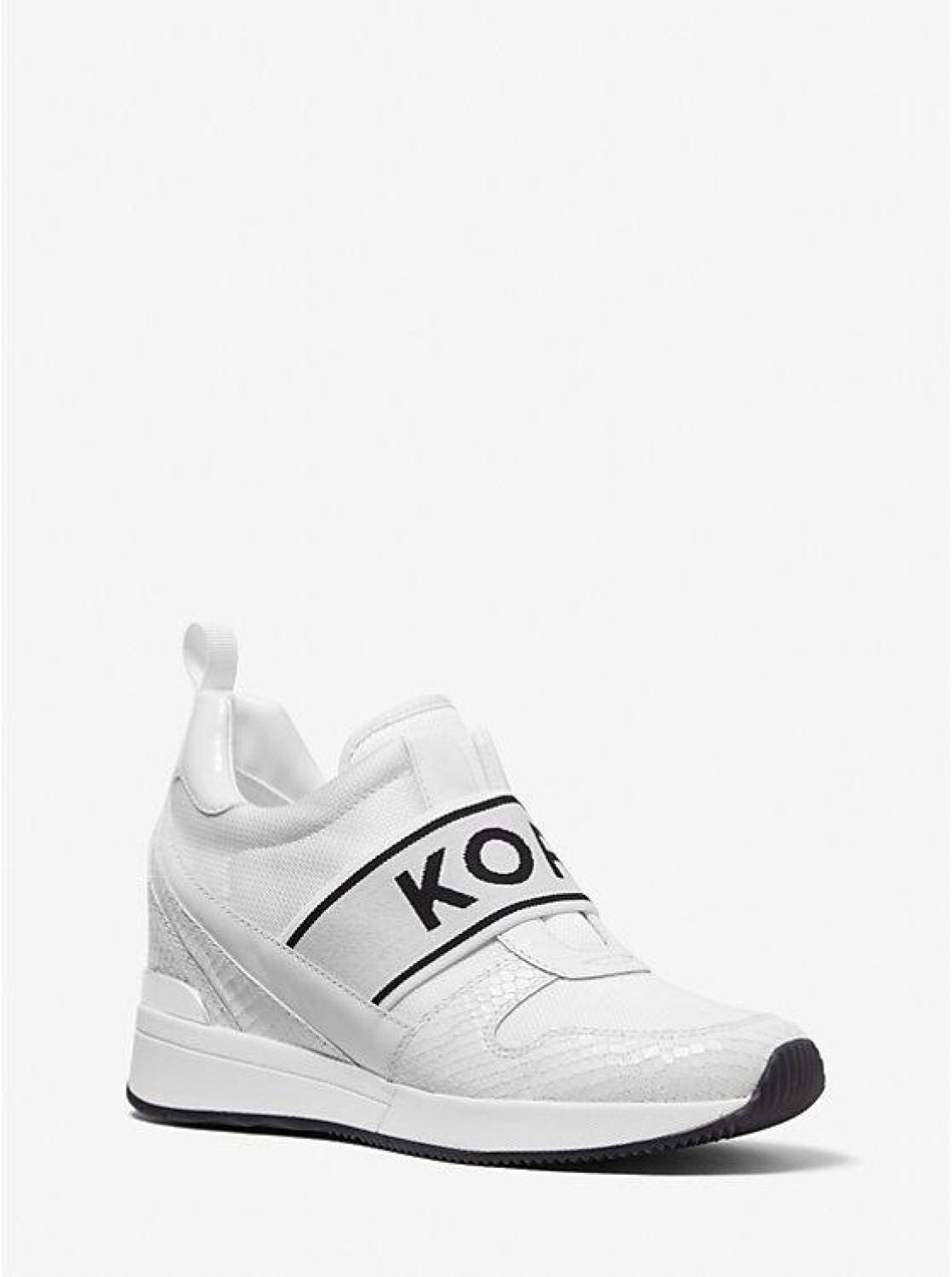 • The Maven trainer will instantly kick looks up a notch. Crafted from a sporty mix of smooth and embossed leather with mesh panels, this slip-on sneaker is set on a slightly elevated sole for subtle height. Keep the logo tape accents in focus with cropped hemlines.