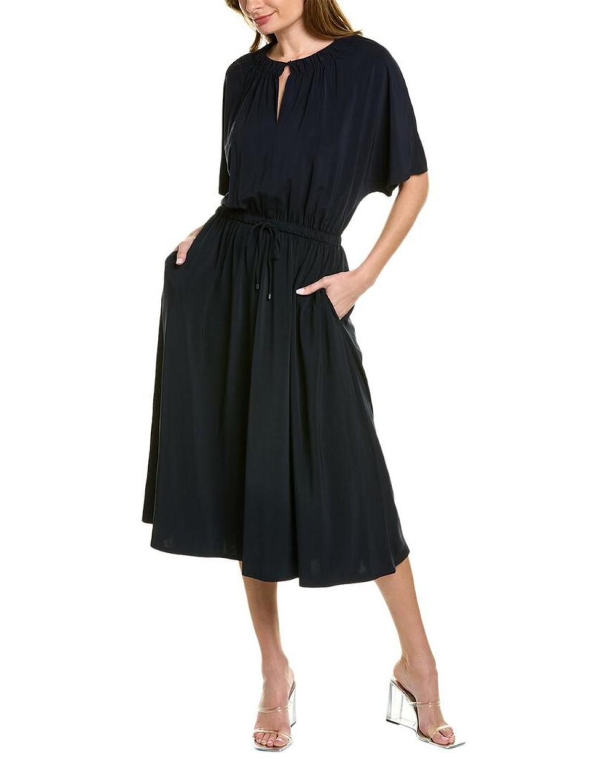 • Introducing the Max Mara Leisure Onorata Jersey Dress, an essential piece for any modern woman's wardrobe. Crafted by the renowned Italian brand, Max Mara, this dress boasts the perfect blend of feminine and sophisticated design for a timeless addition to your collection. The navy colorway is a nod to classic style, while the keyhole neck and short dolman sleeves add a touch of contemporary flair. A drawstring waist offers a customizable fit, and dual side seam pockets provide a practical touch. Measuring approximately 47 inches from shoulder to hem, the dress is thoughtfully designed to flatter a variety of body shapes. The slip-on styling allows you to effortlessly slip into the dress for an easy yet polished ensemble. The fabric is made of 90% viscose and 10% elastane, providing both comfort and flexibility. For easy care, simply hand wash the dress when needed. Elevate your wardrobe with this stunning Max Mara Leisure Onorata Jersey Dress, imported and ready to make a statement in your wardrobe today. Order yours today and discover the unparalleled sophistication and style that only Max Mara can offer.