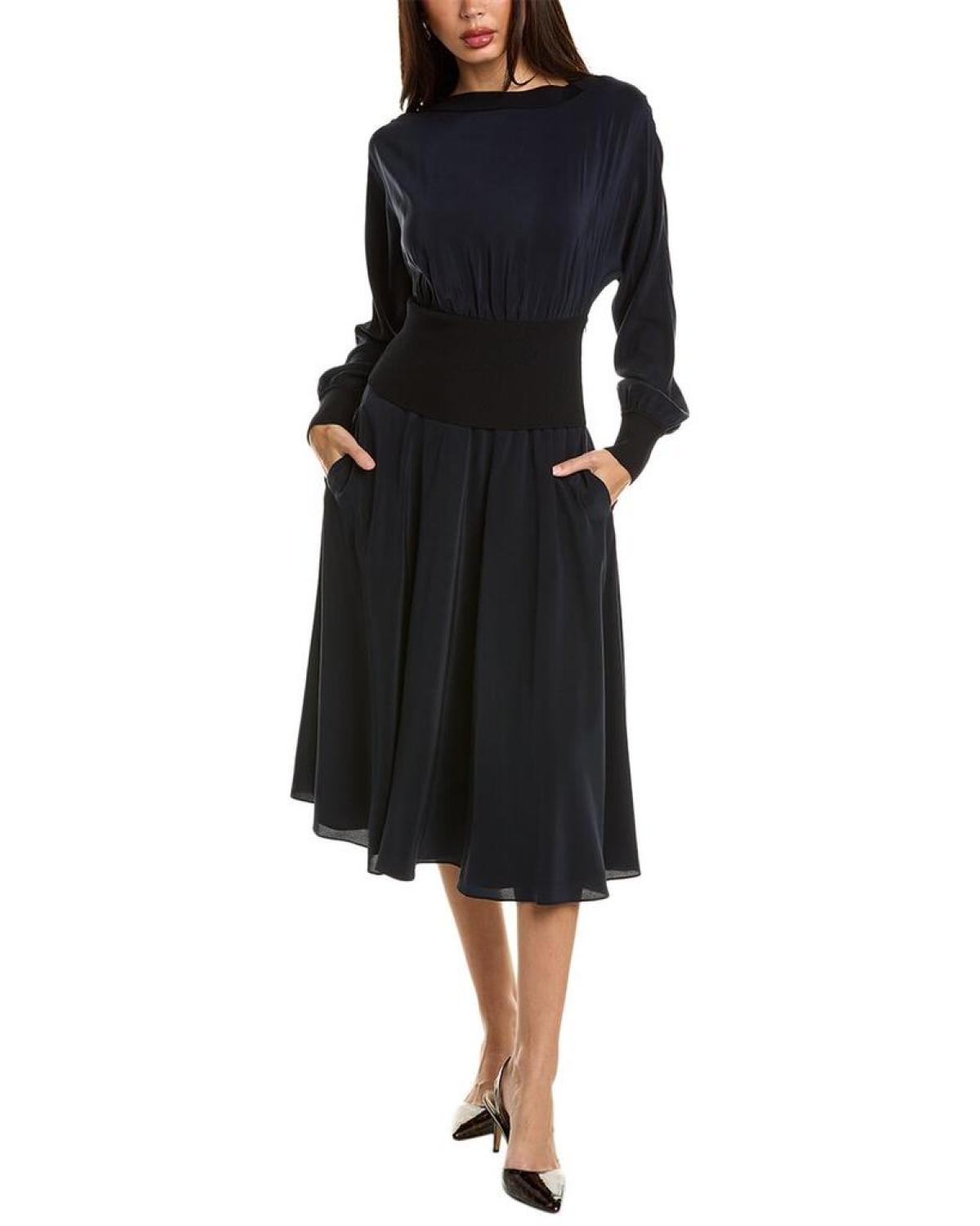 • Introducing the elegant and sophisticated Max Mara Studio Amadeus Silk Dress. Designed with meticulous attention to detail, this dress is a testament to the brand's commitment to timeless elegance and superior craftsmanship.Crafted from luxurious 100% silk, this dress exudes a sense of luxury and comfort. Its navy color adds a touch of sophistication, while the envelope neck, dolman sleeves, and ribbed trim create a chic and stylish look. The dress is approximately 46 inches from shoulder to hem, offering a flattering and versatile length.With a left side on-seam zipper, this dress ensures a seamless and easy fit. The model is 5'10 and is wearing a size 2, though measurements may vary slightly by size. Whether for a special occasion or a daytime event, this dress is sure to turn heads and make a lasting impression.To keep this exquisite piece in pristine condition, we recommend dry cleaning only. Max Mara is a renowned brand known for their attention to detail and superior quality, and this dress is no exception. Imported and designed to perfection, this Max Mara Studio Amadeus Silk Dress is the ultimate choice for the modern, sophisticated woman.Elevate your wardrobe with this stunning Max Mara dress and experience the perfect blend of style, comfort, and elegance. Shop now and add a touch of luxury to your life with Max Mara Studio.