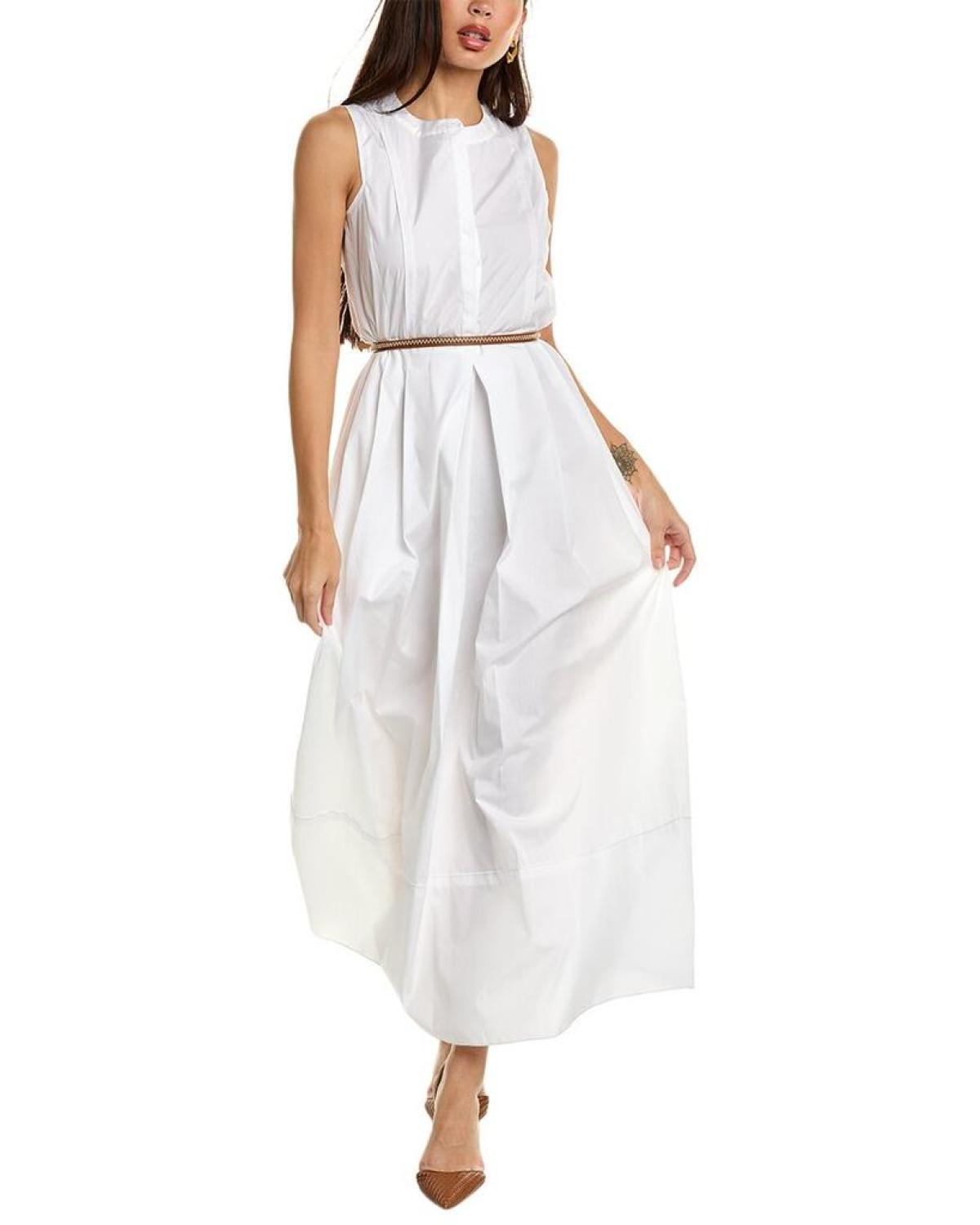• Introducing the Max Mara Studio Medina Dress, a timeless addition to your wardrobe. This elegant dress, from the renowned brand Max Mara, is designed to showcase your sophisticated style. Crafted with precision, the Max Mara Studio Medina Dress features a pleated skirt and a belted waist, accentuating your feminine silhouette. The dual side on-seam pockets add a functional touch, perfect for keeping your essentials close at hand.The button front design lends a classic and sophisticated look, while the 100% cotton fabric ensures maximum comfort throughout the day. The dress comes in a refreshing and versatile white color, making it a perfect choice for any occasion.With an approximate length of 56 inches from shoulder to hem, this dress offers a graceful and flattering fit. The model is 5'10' tall and is wearing a size 6, and please note that measurements may vary slightly by size.Easily cared for, the Max Mara Studio Medina Dress is machine washable for your convenience. This dress is imported, embodying the brand's commitment to quality and craftsmanship.Make a statement with the Max Mara Studio Medina Dress and elevate your style effortlessly. Whether it's a formal gathering or a casual outing, this dress is sure to leave a lasting impression. Express your individuality and embrace the timeless elegance with this stunning garment.