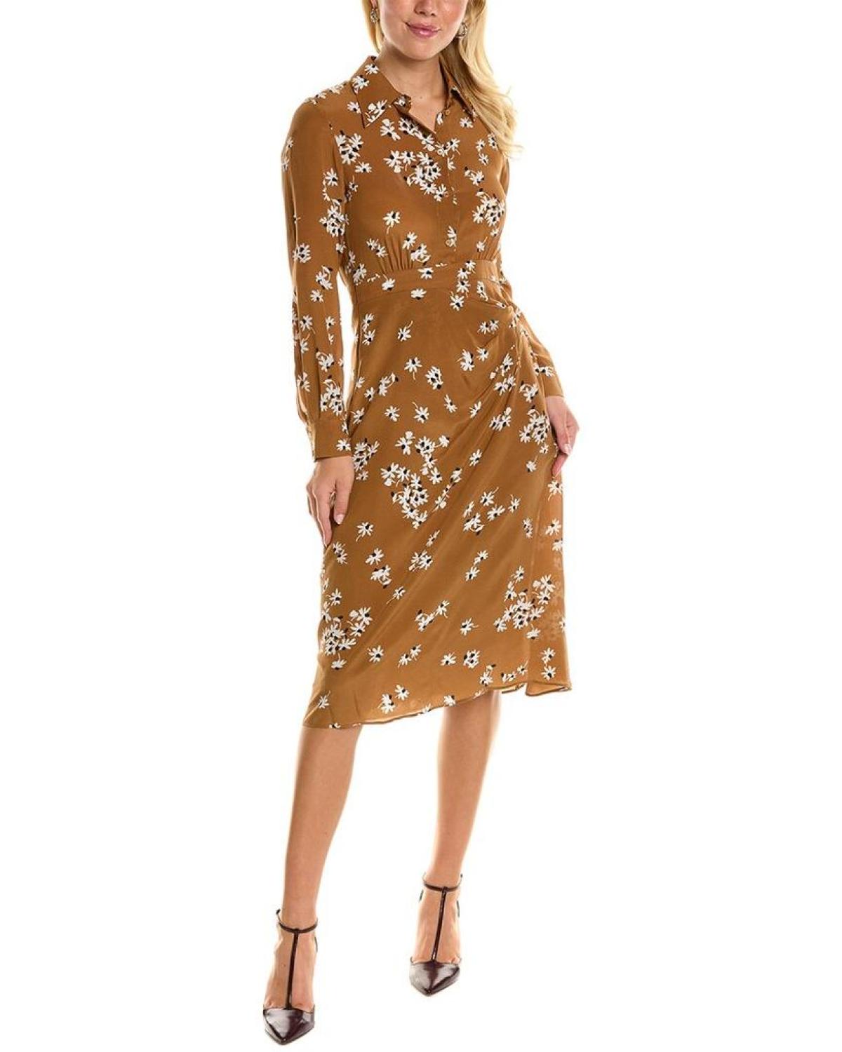 Introducing the Max Mara Studio Rita Silk Dress, a stunning addition to any woman's wardrobe. This exquisite dress showcases the renowned Max Mara brand, known for its feminine and sophisticated pieces with an undeniable Italian influence.The Max Mara Studio Rita Silk Dress is crafted in a luxurious brown silk fabric, exuding elegance and grace. It features a spread collar and button cuffs, adding a touch of tailored detail. The draped pleated waist creates a flattering silhouette, making this dress perfect for any occasion.Measuring approximately 45 inches from shoulder to hem, this dress falls gracefully on the body. The model, standing at 5'11, is wearing a size 2, and please note that measurements may slightly vary by size. For easy wearing, the dress is equipped with a side seam zipper.Made of 100% silk, this dress offers not only a luxurious look but also utmost comfort. To maintain its pristine condition, the Max Mara Studio Rita Silk Dress should be dry cleaned only. Imported with meticulous craftsmanship, you can trust the quality and attention to detail that comes with every Max Mara creation.Indulge in the sophistication and timeless beauty of the Max Mara Studio Rita Silk Dress. Whether you are attending a formal event or simply want to elevate your everyday style, this dress will undoubtedly leave a lasting impression.