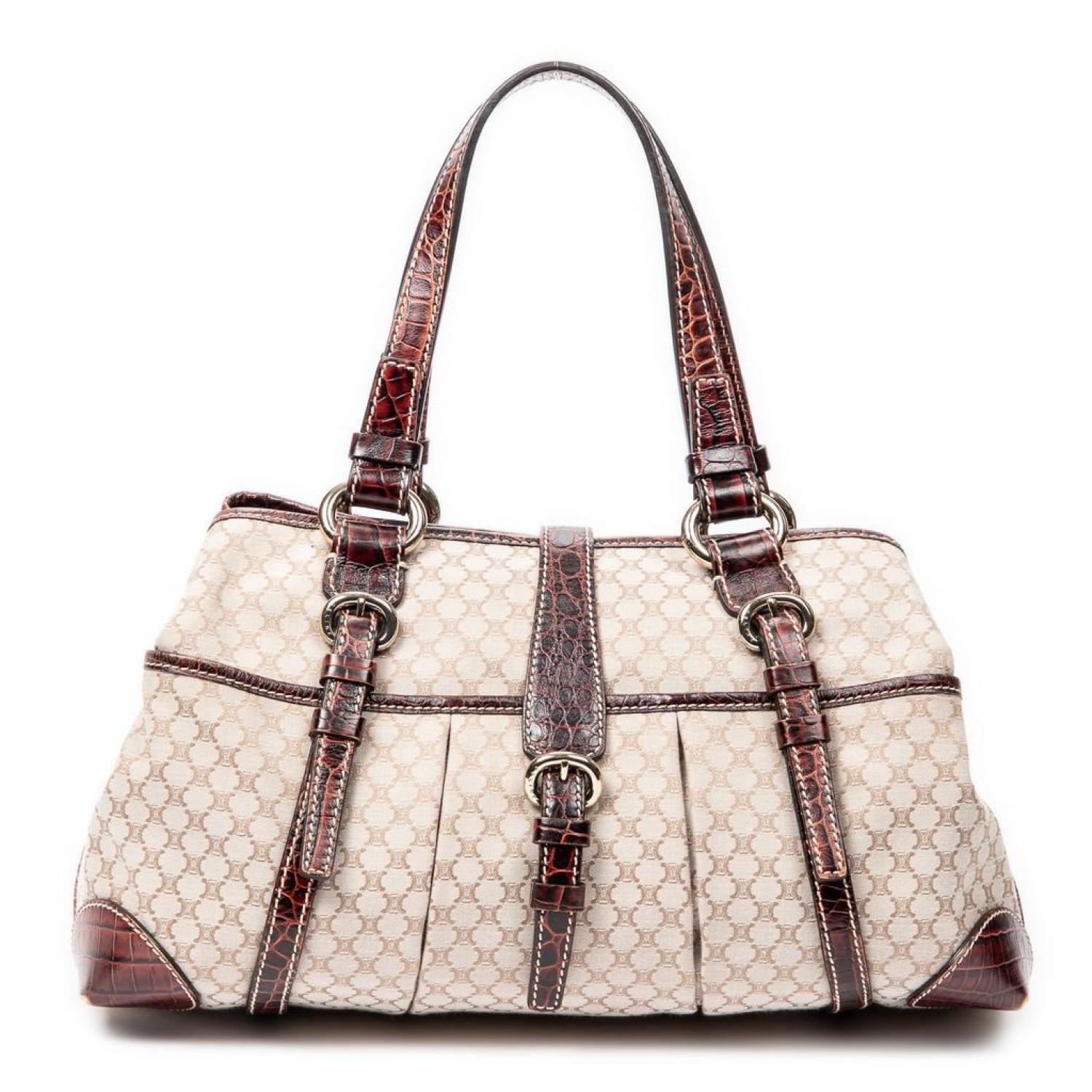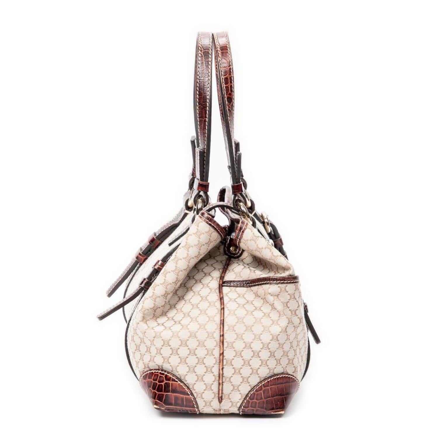 • Celine Shoulder Bag in Beige/Brown Macadam Canvas and Gold hardware. Dimensions - 37*21*14cm. Serial number - WC-ST-0047. Inclusions - Card.
