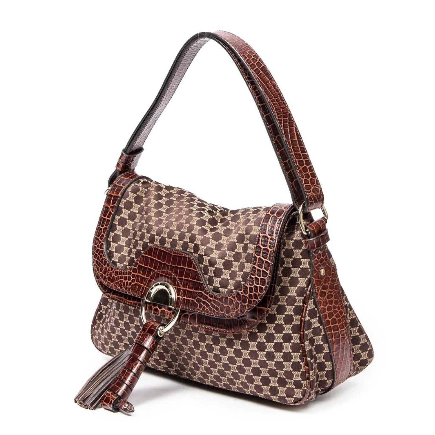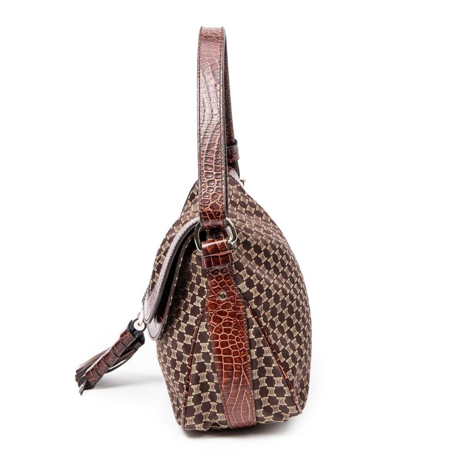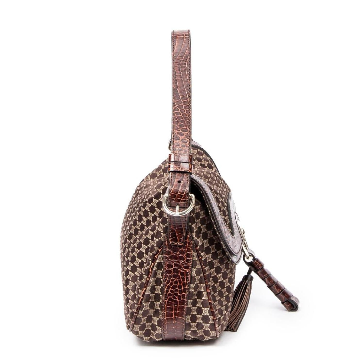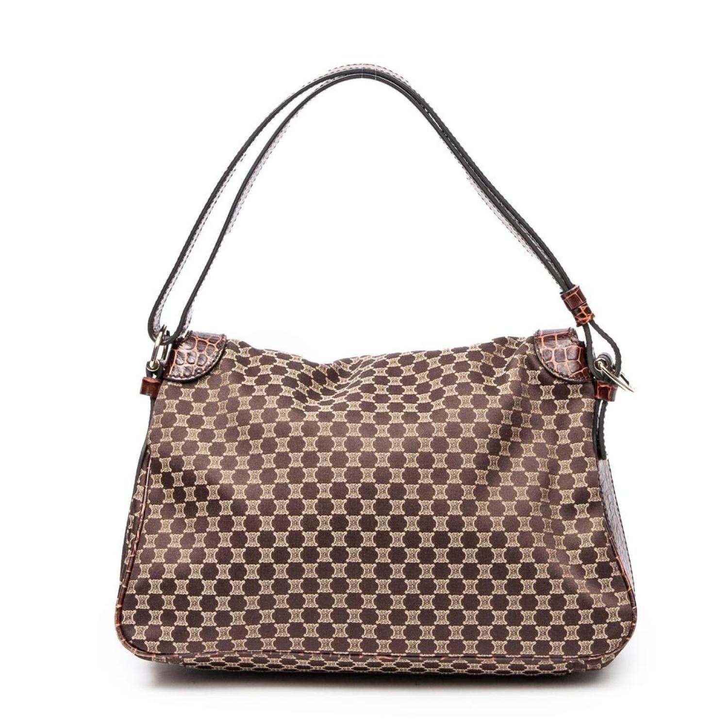 Celine Shoulder Bag in Dark Brown Macadam Canvas and Gold hardware. Dimensions - 32*20*12cm. Serial number - WC-ST-0068. Inclusions - None. Pre-Owned