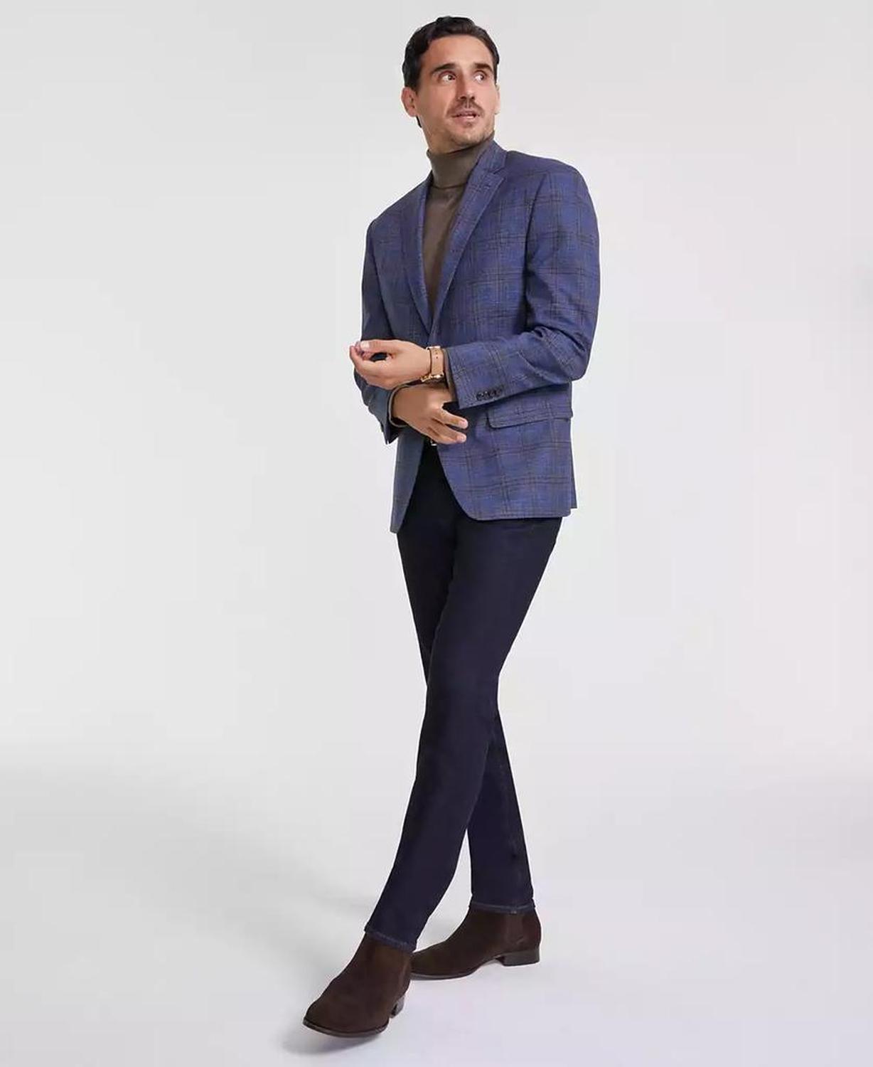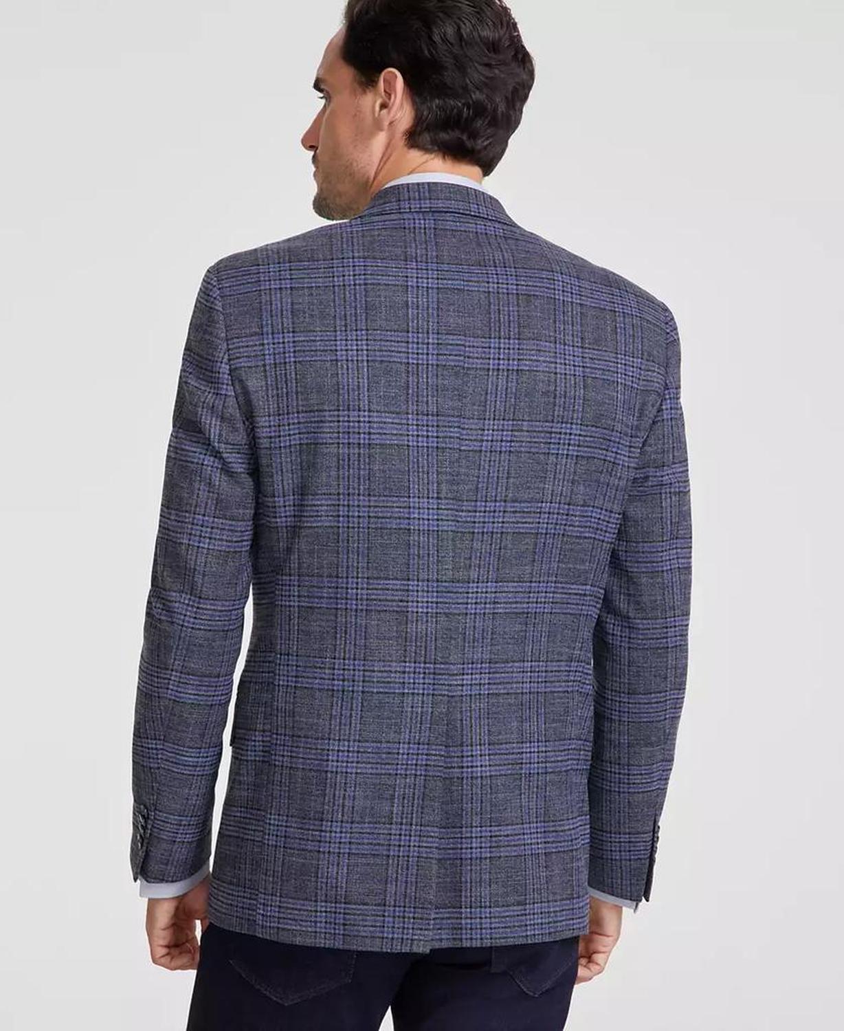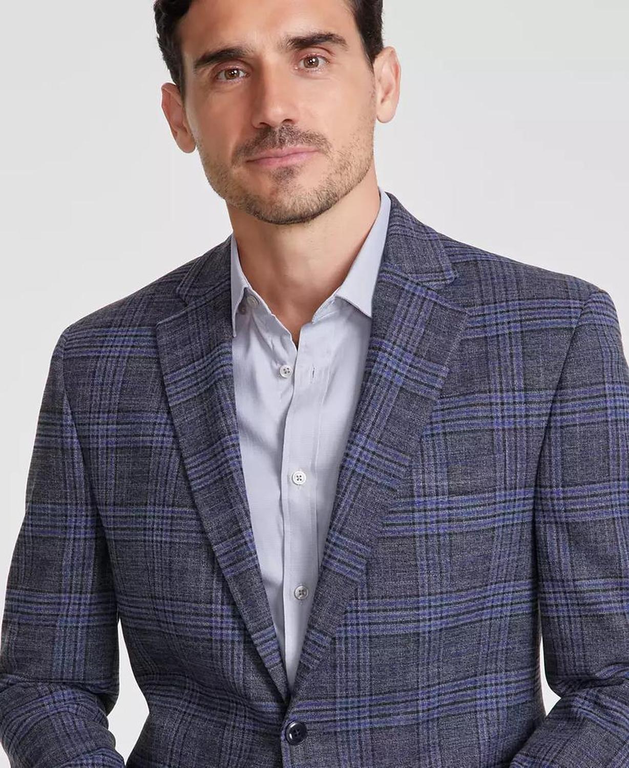 • A classic plaid pattern makes for a subtly bold and timeless look on this versatile Michael Kors sport coat.