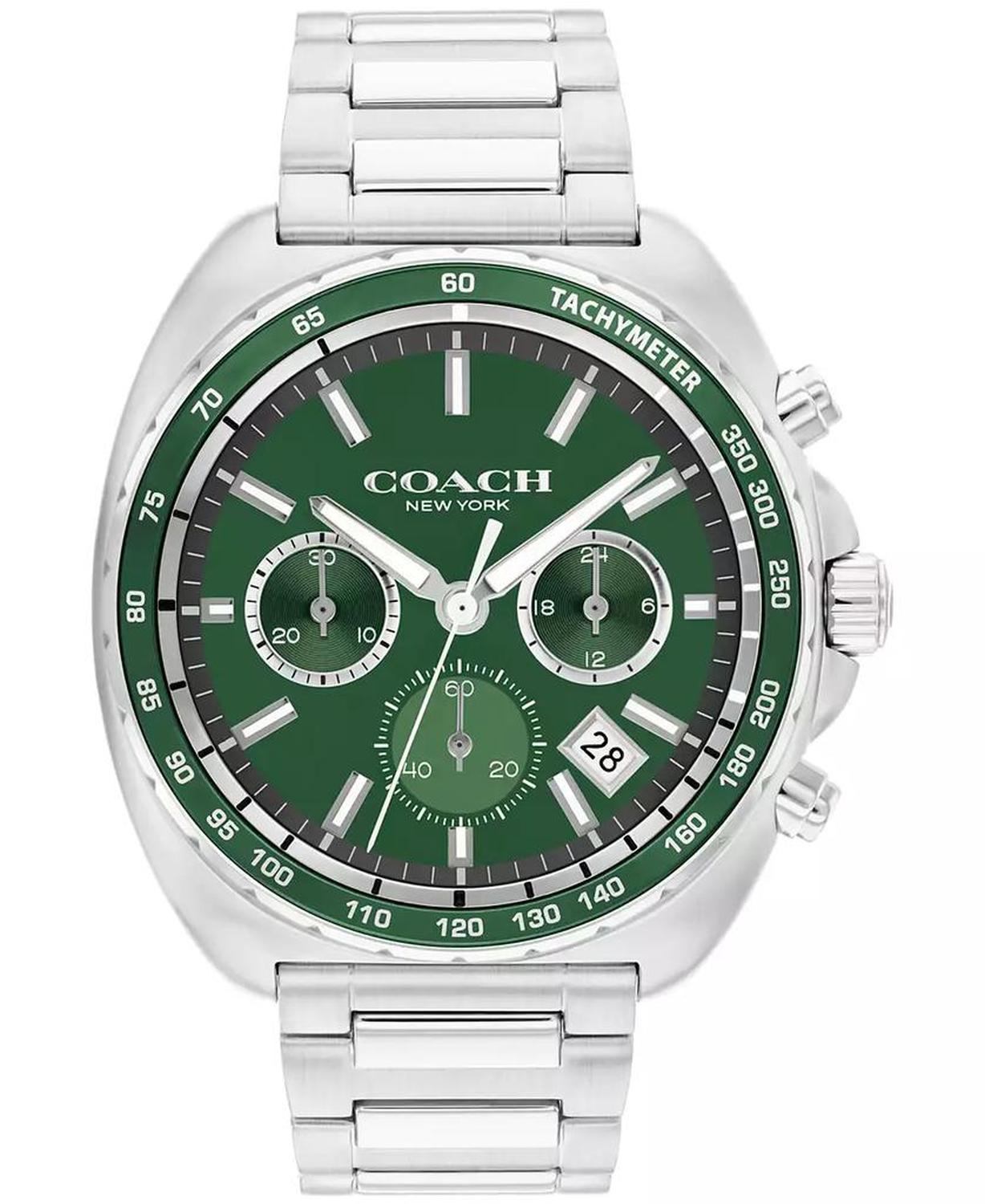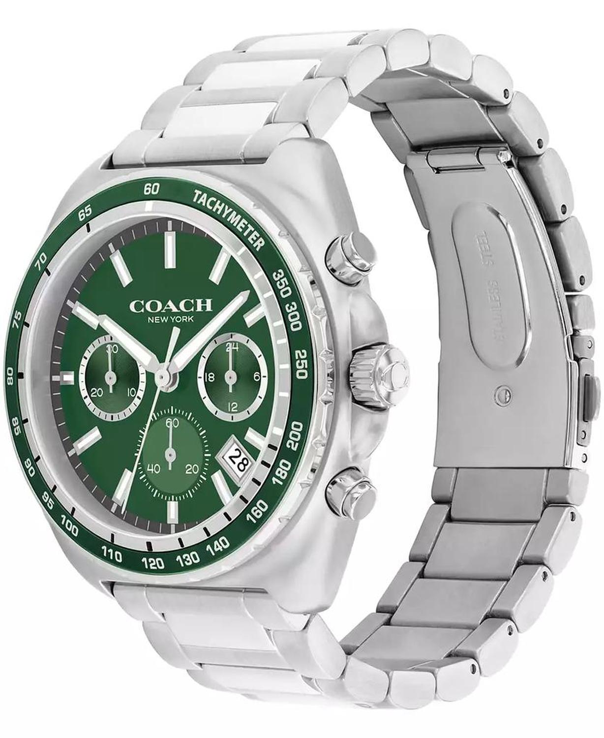 • Made for adventures near and far, the Charter is a sporty multi-function style designed for life on the move. Finished with stately stick markers and an olive tachymetric bezel, this stainless-steel chronograph features an olive lacquer dial with a date window and three sub dials marking seconds, minutes and hours. SKU 14602701