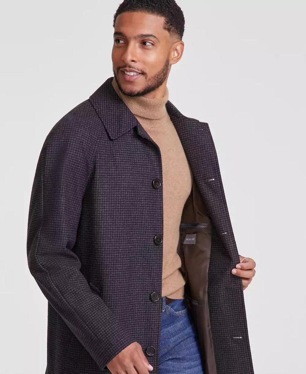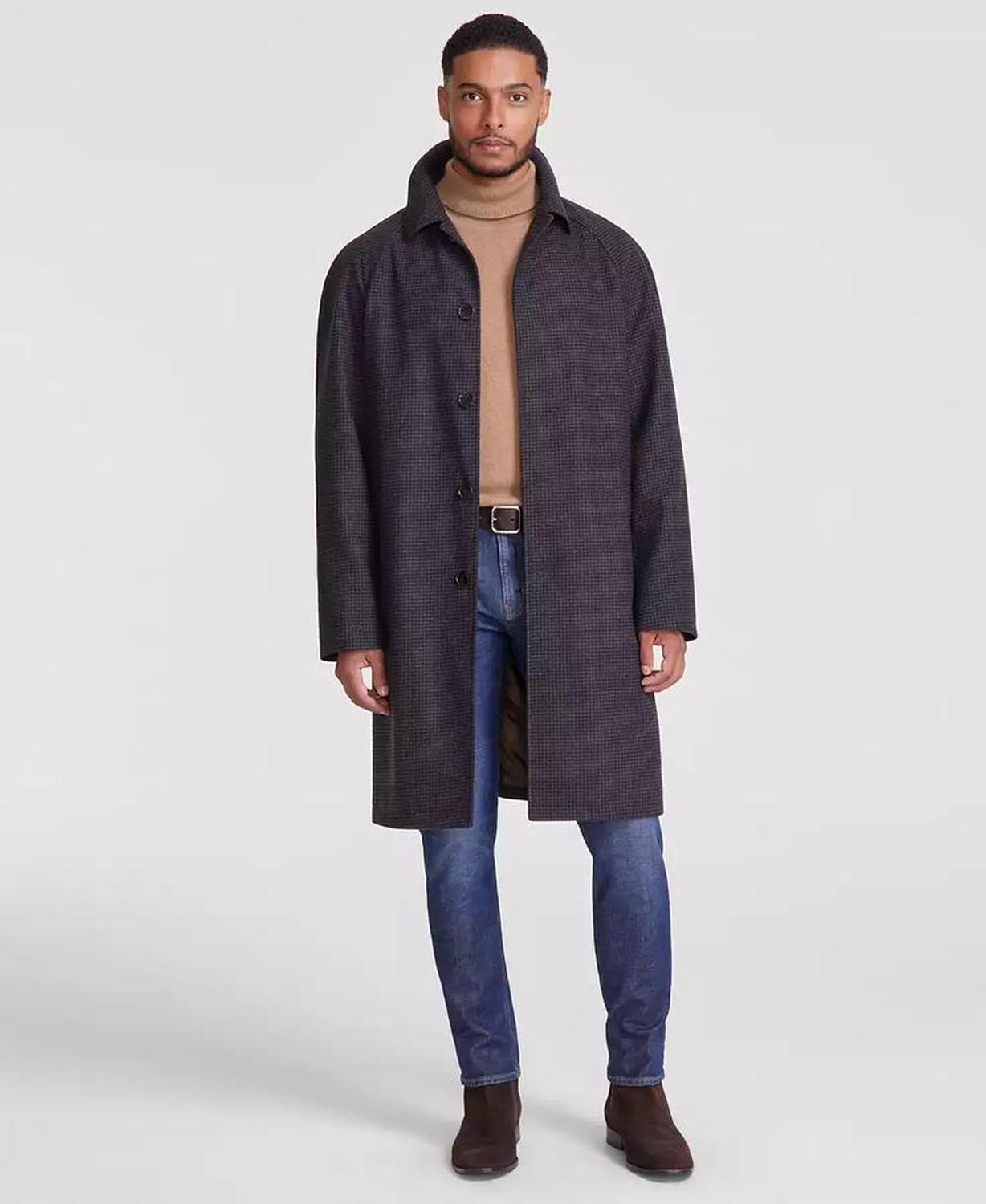 • Greet chilly-weather days with timeless style and a stride in your step when you leave the house in this classic-fit check overcoat from Michael Kors.
