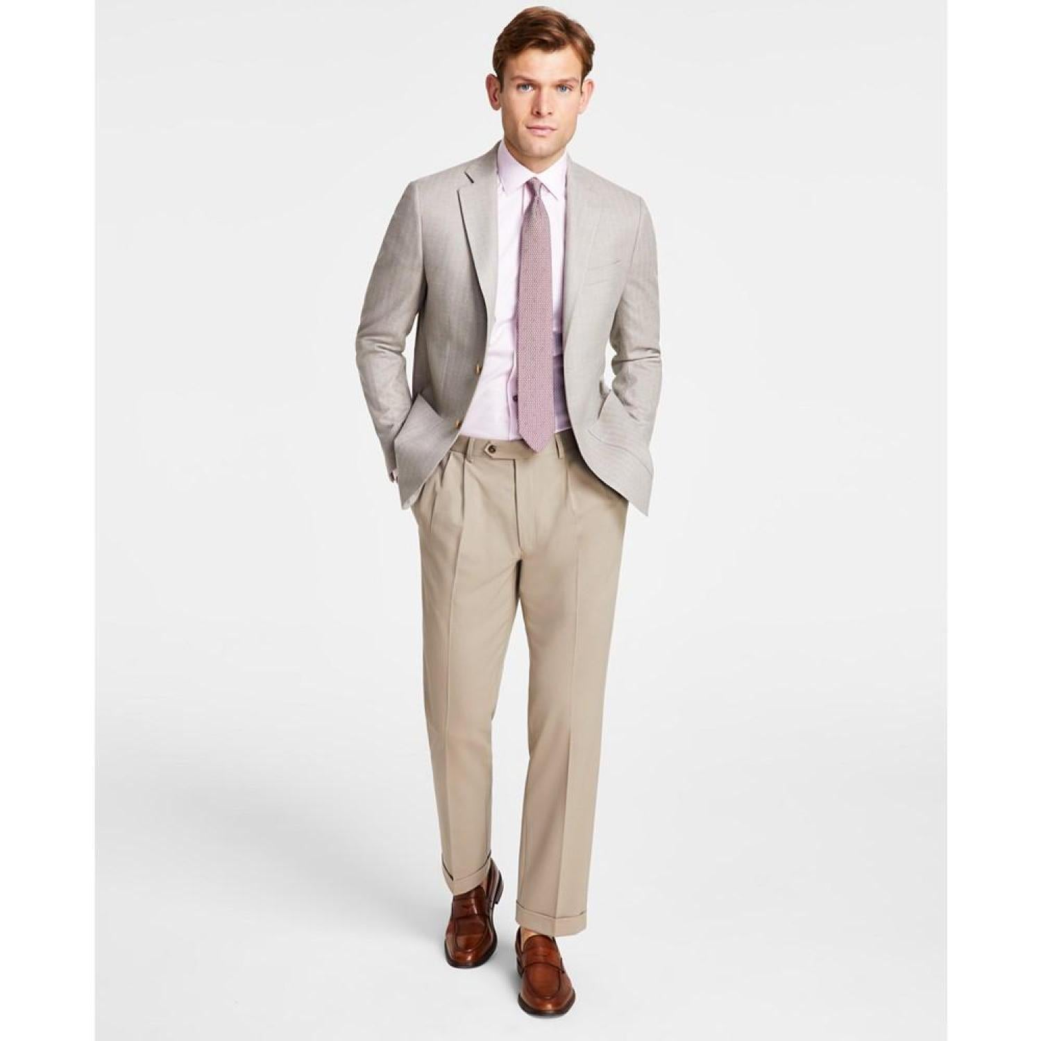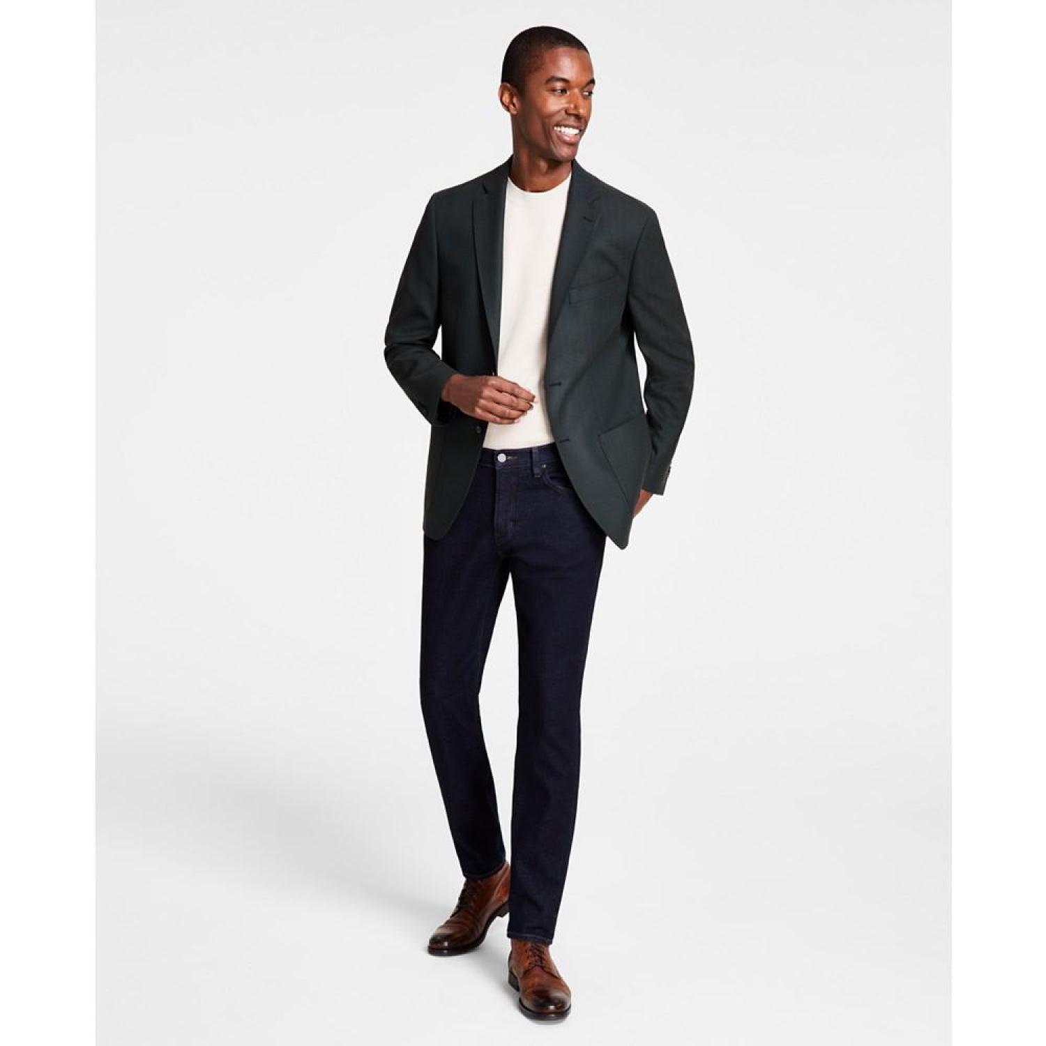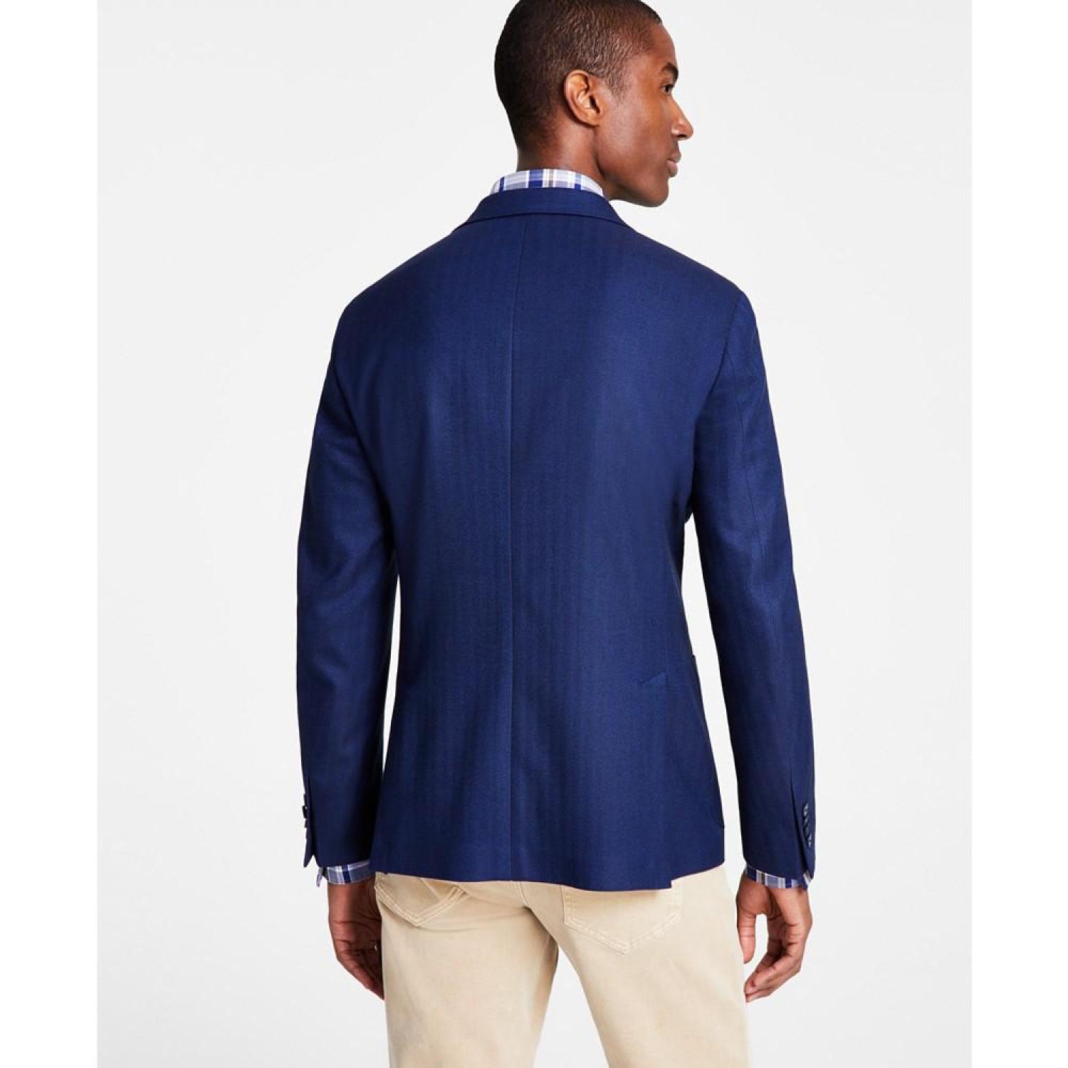 It's never too late to give your professional look a boost of modern style. This herringbone sport coat from Michael Kors will make it easy. Classic fit through the shoulders, chest and waist with standard armholes and sleeves Notch lapel Two-button closure Two front patch pockets; left chest welt pocket Side vents Partially lined Shell: polyester, viscose, spandex; lining: polyester/viscose Dry clean Imported