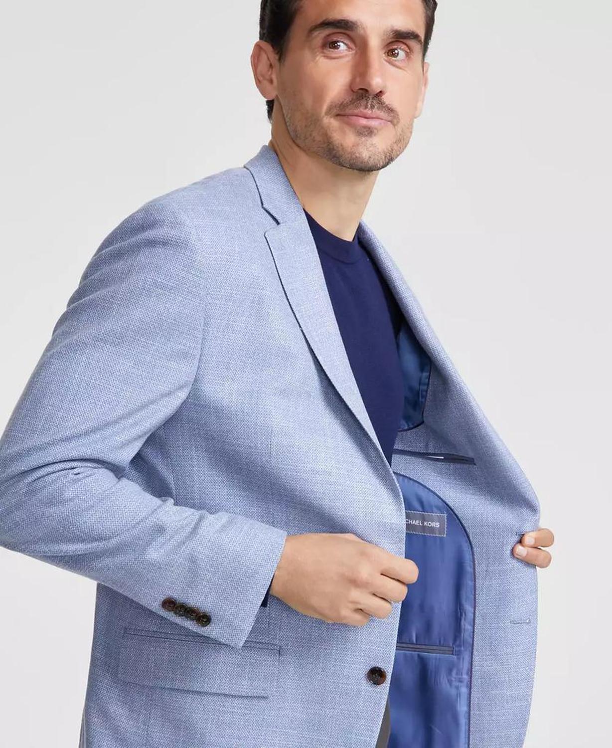 • Give your upcoming formal look a stroke of laid-back elegance in this classic-fit solid sport coat from Michael Kors.