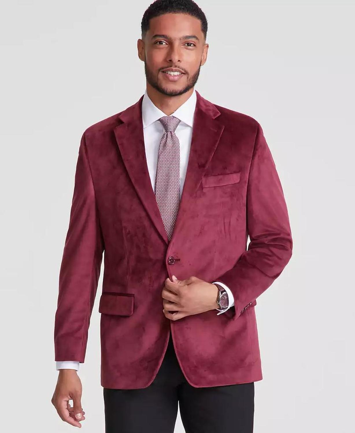 Go for a suave, elegant look with the smooth velvet body of this solid Tommy Hilfiger sport coat.