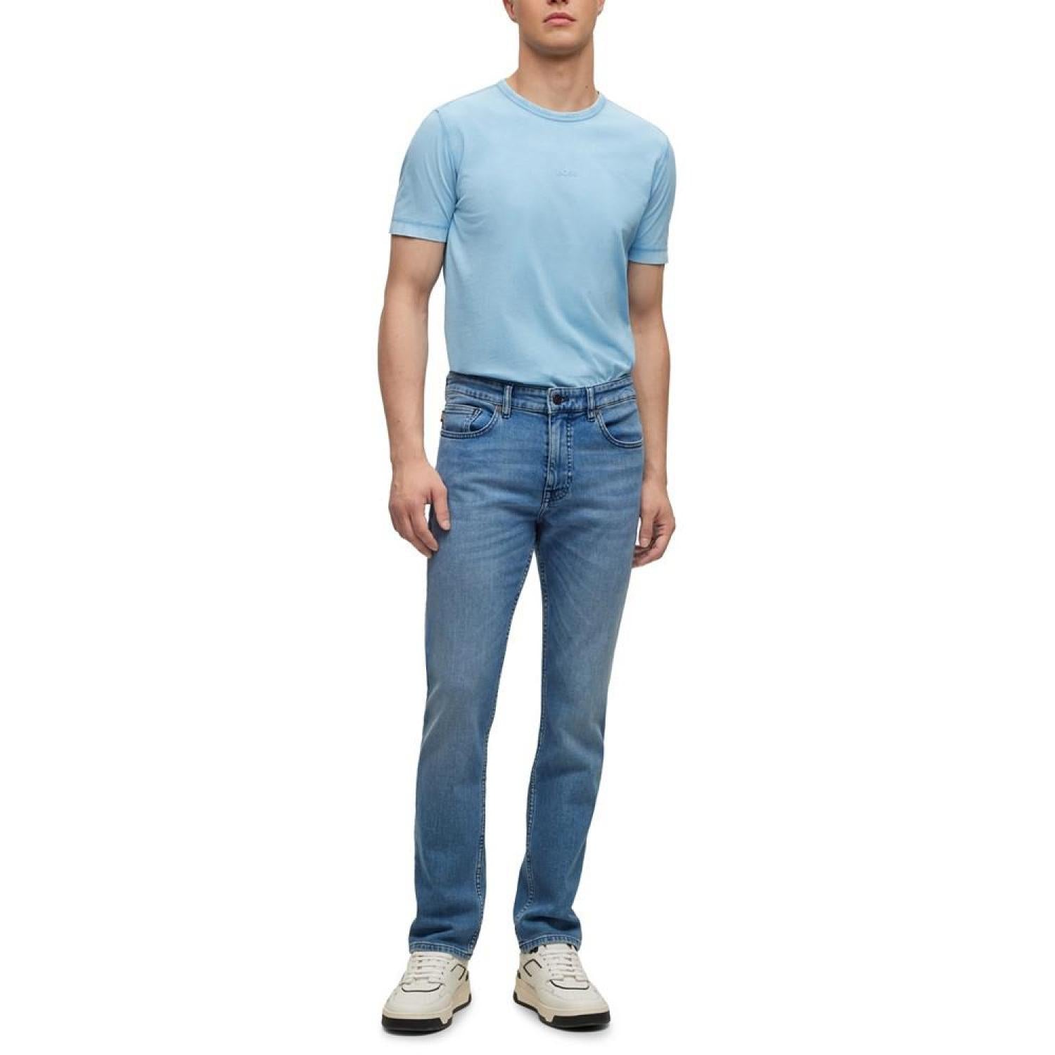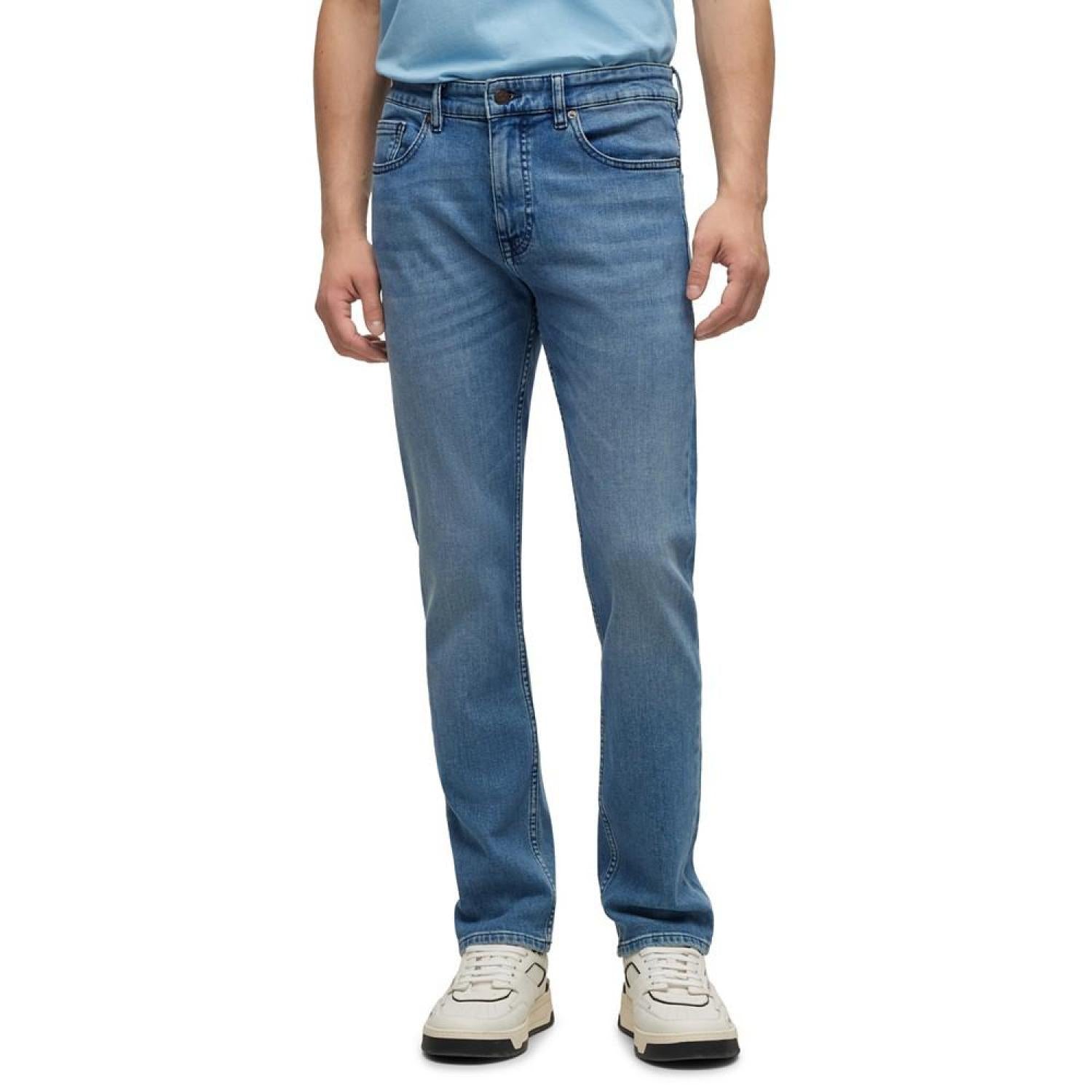 • Casual jeans by BOSS menswear, cut to a slim fit in pure-blue comfort-stretch denim with a subtle wash treatment.
