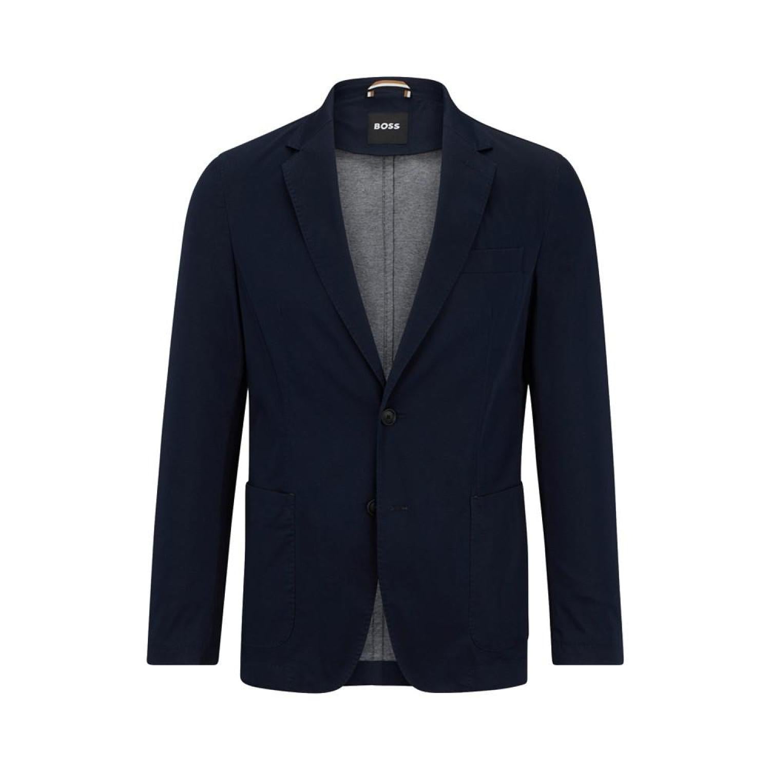 A slim-fitting jacket in a stretch-cotton blend with crease resistance by BOSS menswear.