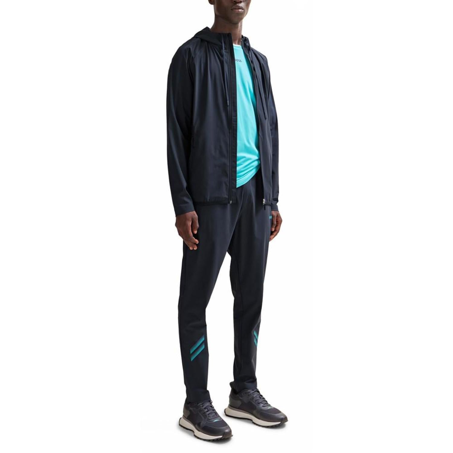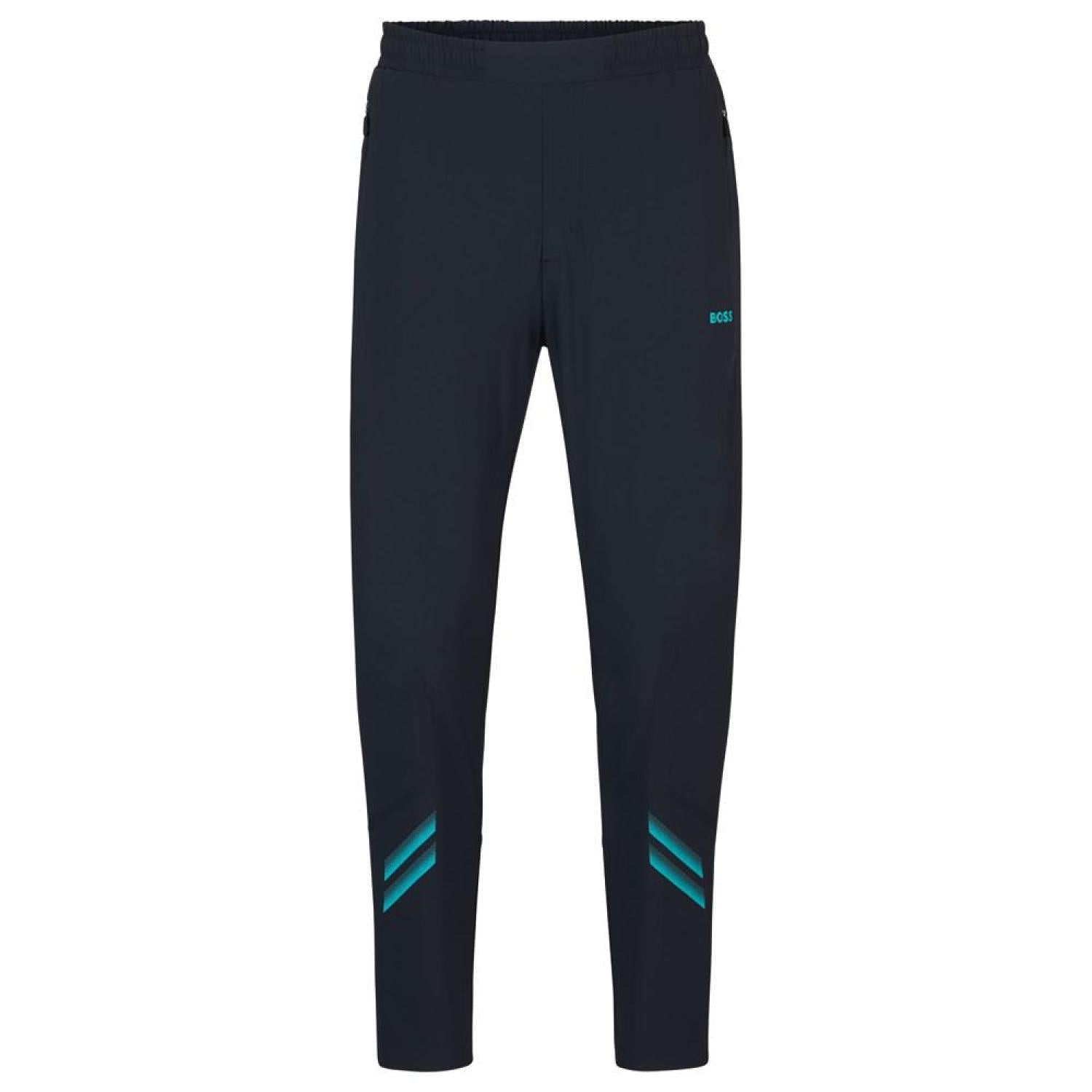 • High-performance tracksuit bottoms by BOSS Menswear, cut to a straight fit in stretch fabric with decorative reflective elements. For our BETTER BOSS products, we always use at least 60% better raw materials.